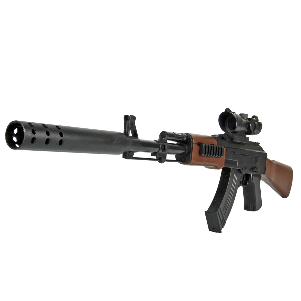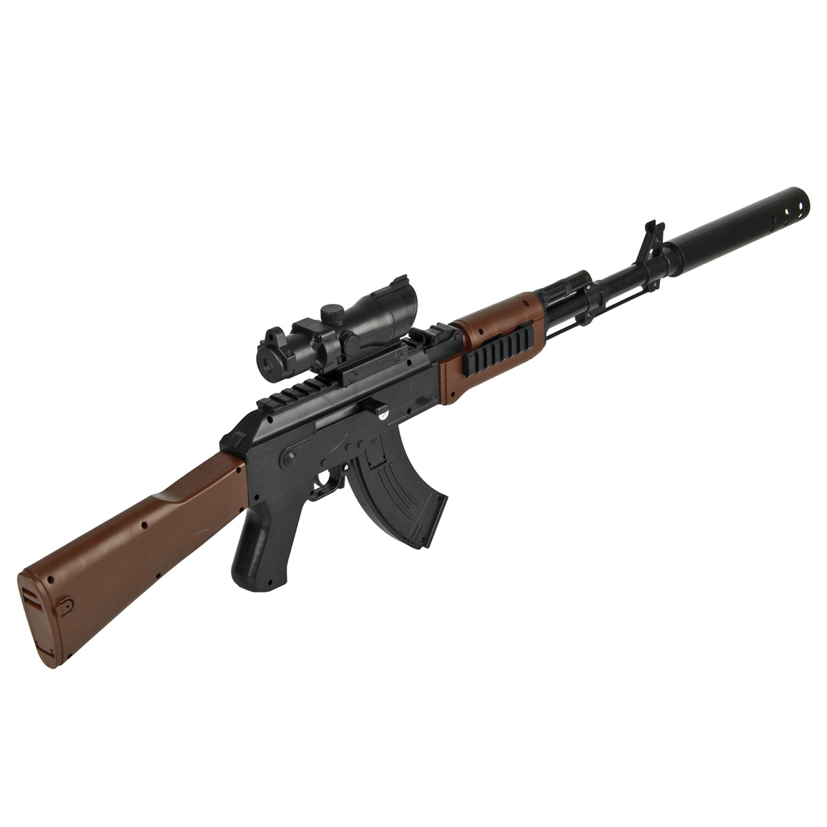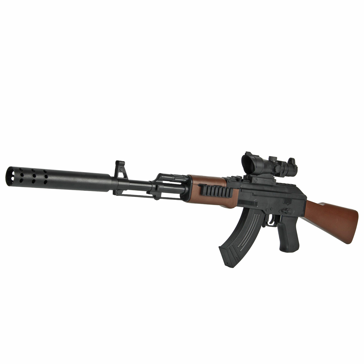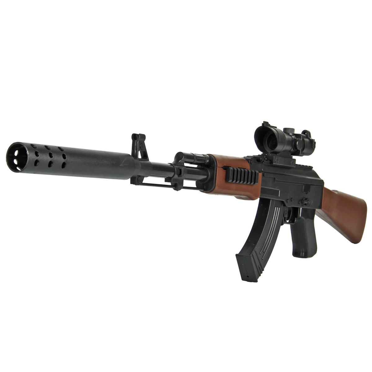 Размер автомата с прикладом, прицелом, магазином 67х5х23 см.