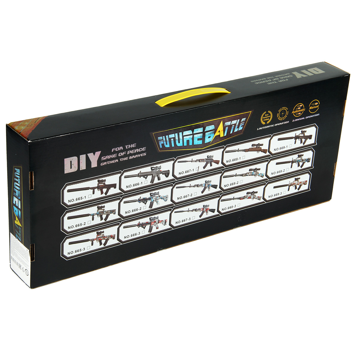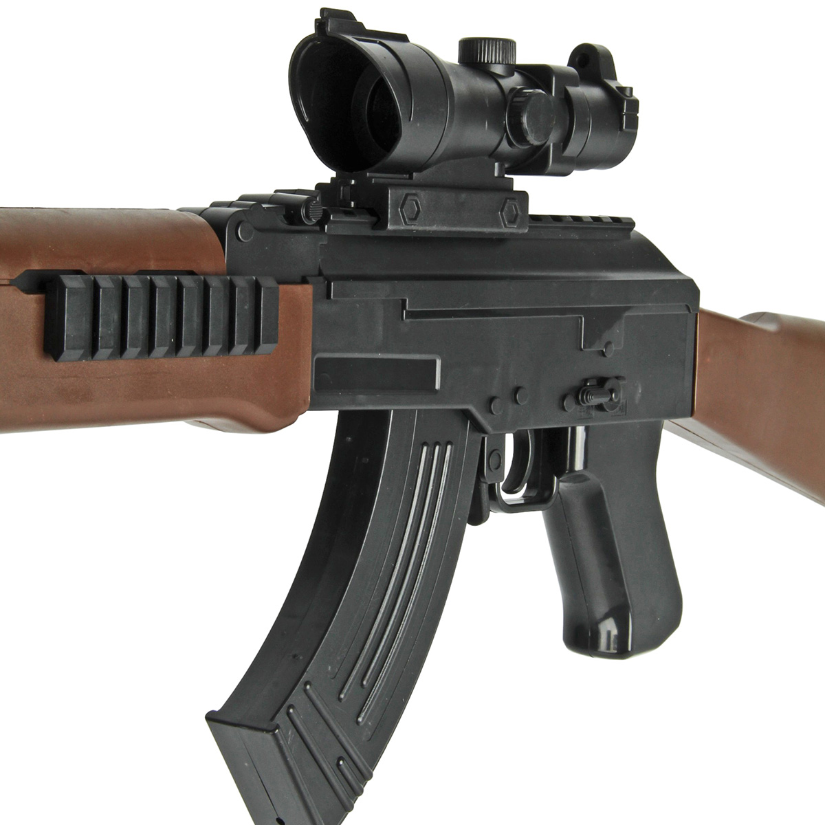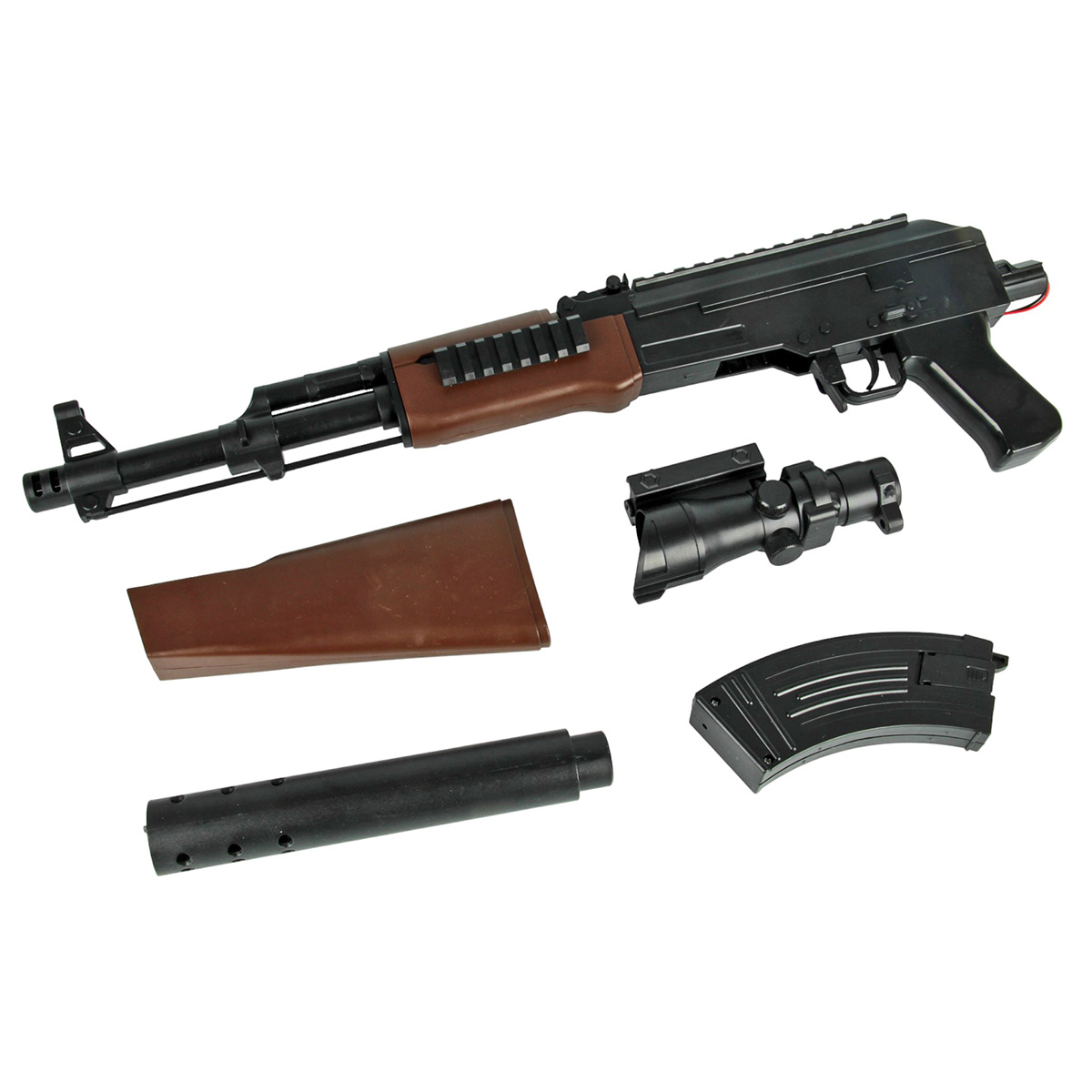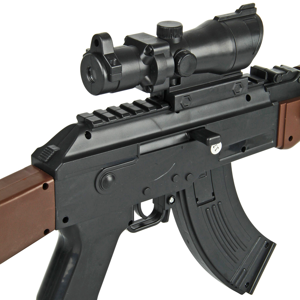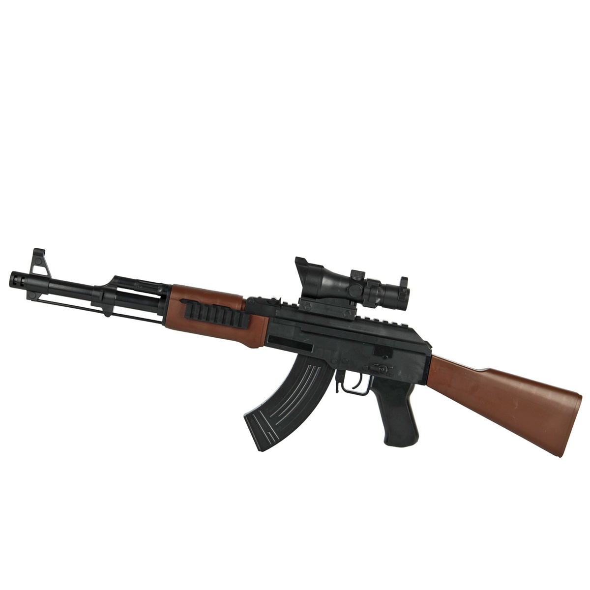 Размер автомата с прикладом, прицелом, магазином 67х5х23 см.
