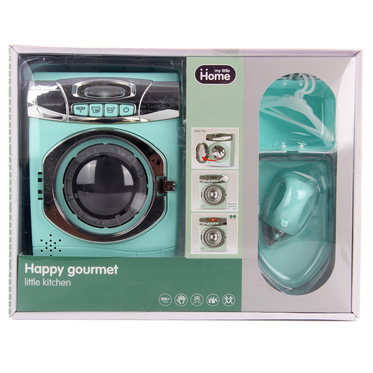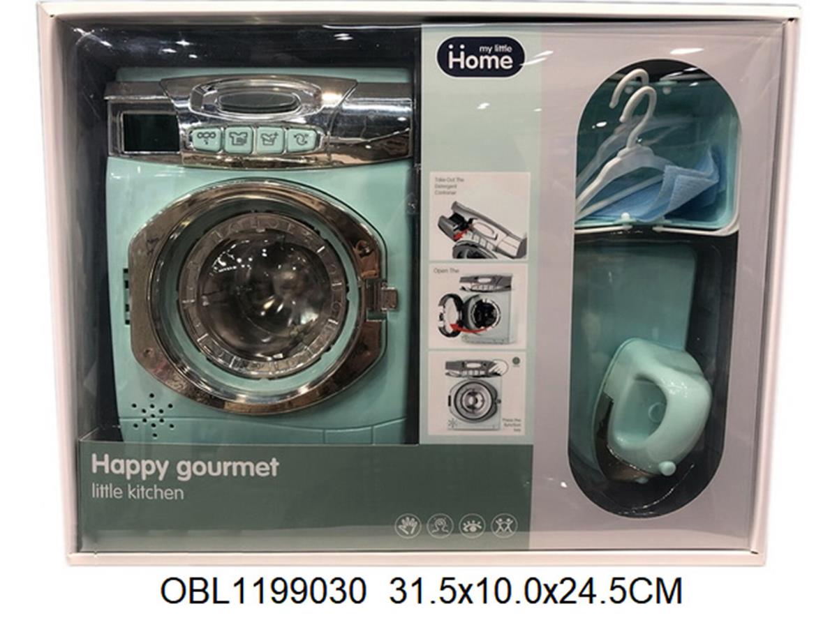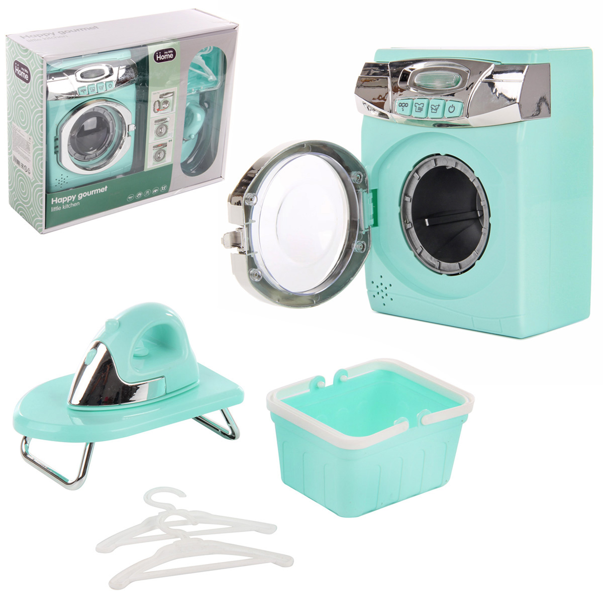 Маленькая хозяюшка придет в восторг от такого игрового набора. Игрушка отличается реалистичным дизайном, нежной расцветкой, наличием звуковых и световых эффектов. В комплект входят стиральная машинка, корзина для белья, утюг с гладильной доской и 2 вешалки.