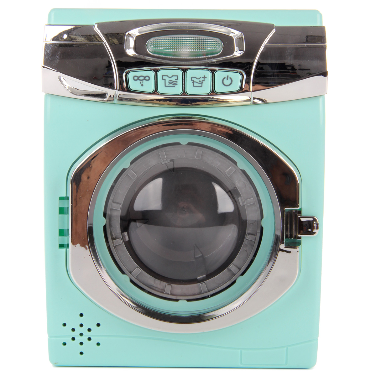 - вторая кнопка с изображением рубашки. Барабан станет крутиться, машинка будет издавать звуки работы настоящей техники, верхняя прозрачная вставка станет подсвечиваться;