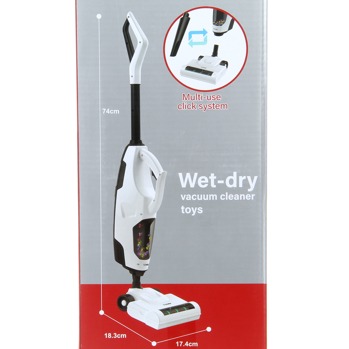 Размер пылесоса в собранном виде с насадкой для пола 17х18х74 см.