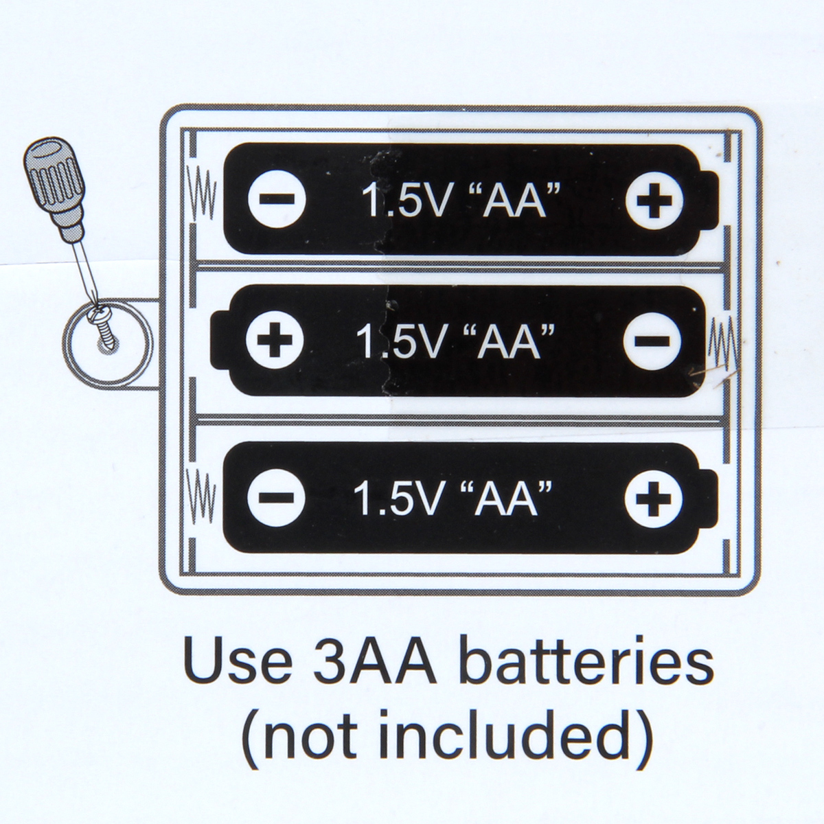 Работает от 3 батареек АА, не входят в комплект.