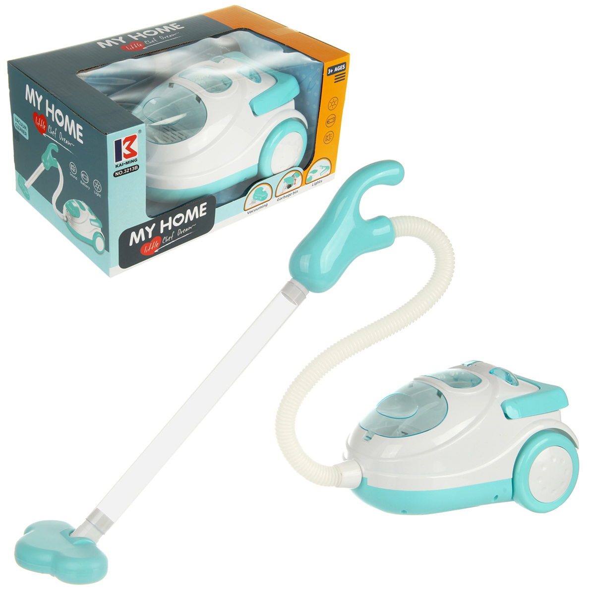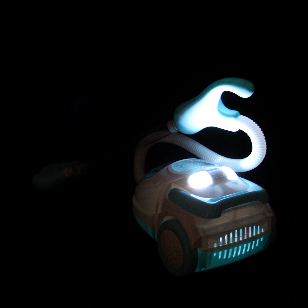 Компактный пылесос на батарейках, умеющий собирать мусор, станет хорошим дополнением коллекции бытовой техники. Игрушечный пылесос с эффектной подсветкой, благодаря наличию колесиков можно катать за собой.