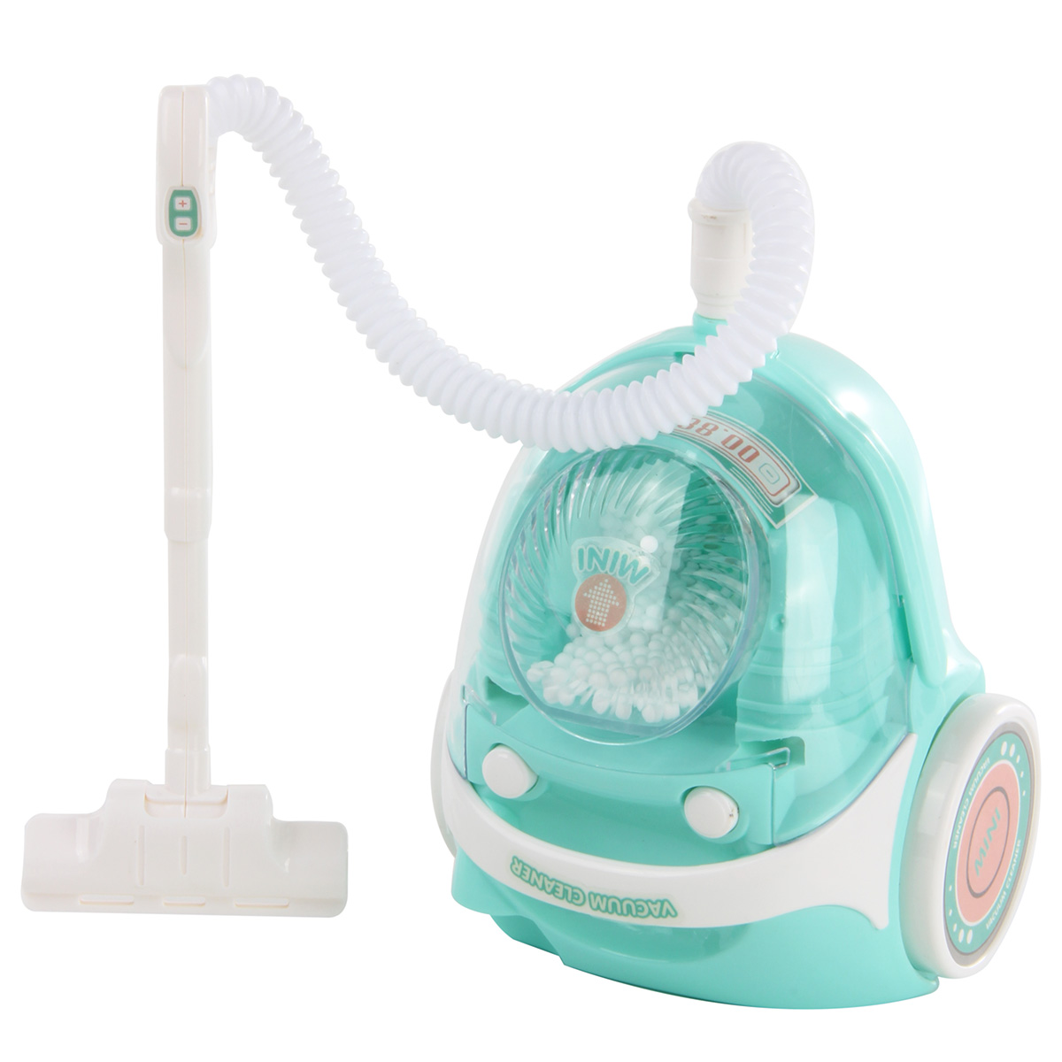 Пылесос катается вперед-назад, если нажать на кнопку на лицевой панели, шарики в прозрачном отсеке будут перемещаться под воздействием воздуха, отсек подсветится, пылесос будет издавать звук работы настоящей техники. Вторая кнопка не нажимается. Есть ручка, удобно перевозить пылесос за собой. Трубка пылесоса вынимается, пылесборная насадка поднимается и опускается.
