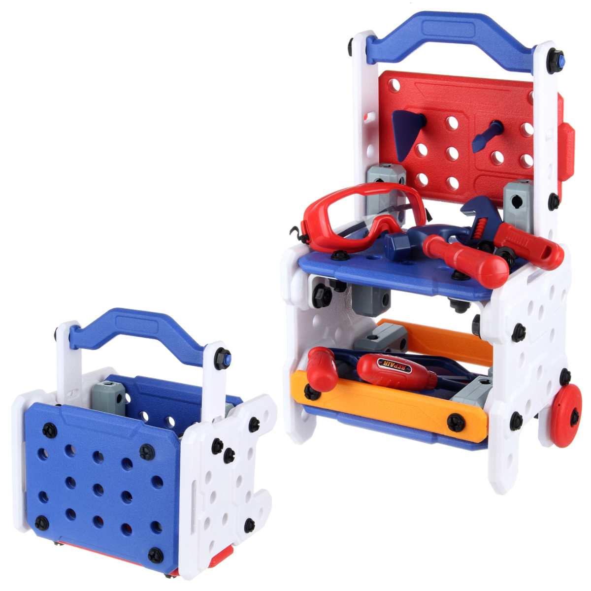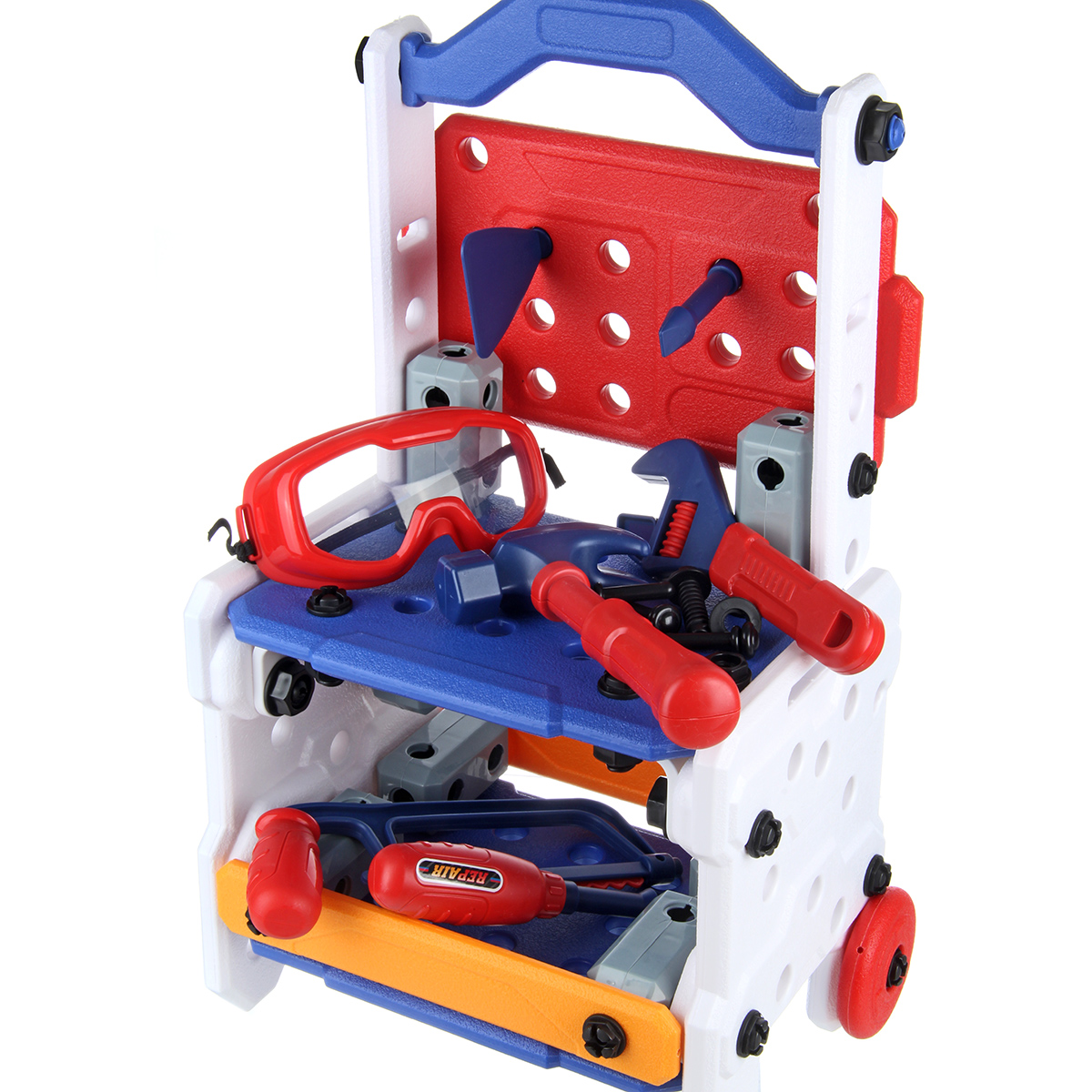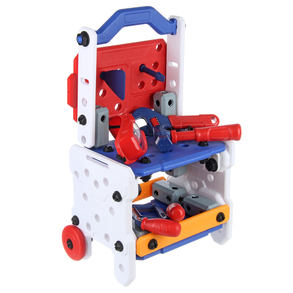 Отличный игровой набор 3 в 1, в котором можно собрать верстак, тележку, ящик для инструментов. Игрушечная мастерская с большим количеством предметов и продуманной конструкцией. Игрушечные инструменты с подвижными элементами, защитные очки на резинке с прозрачной линзой. Детский набор инструментов изготовлен из прочных и долговечных материалов, отличается высоким качеством исполнения и вниманием к деталям. Детская игрушка станет замечательным подарком мальчику на Новый год, День рождения, 23 февраля. Благодаря такому набору ребенок научится обращаться с домашними инструментами, получит широкие возможности для развития важных навыков.