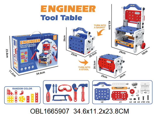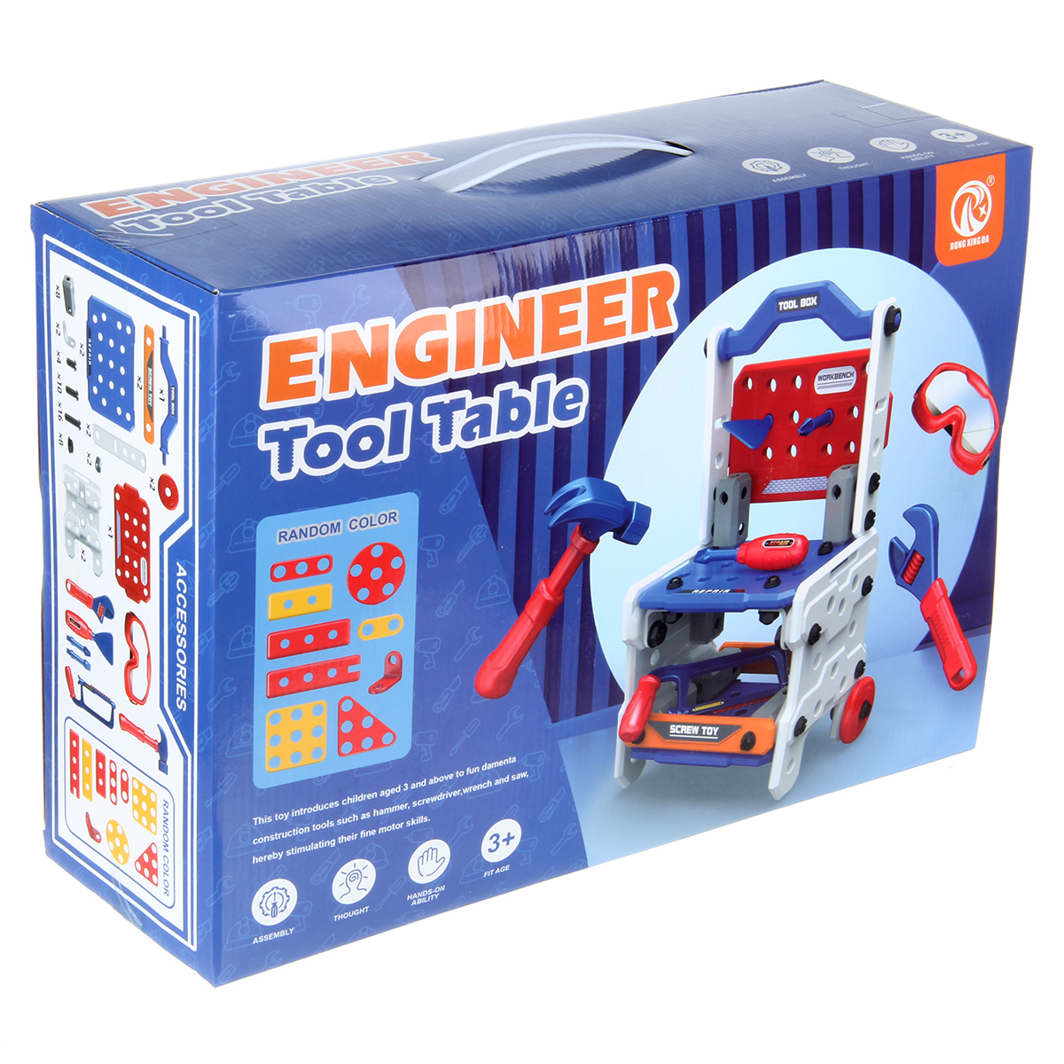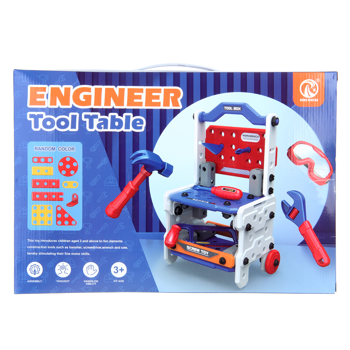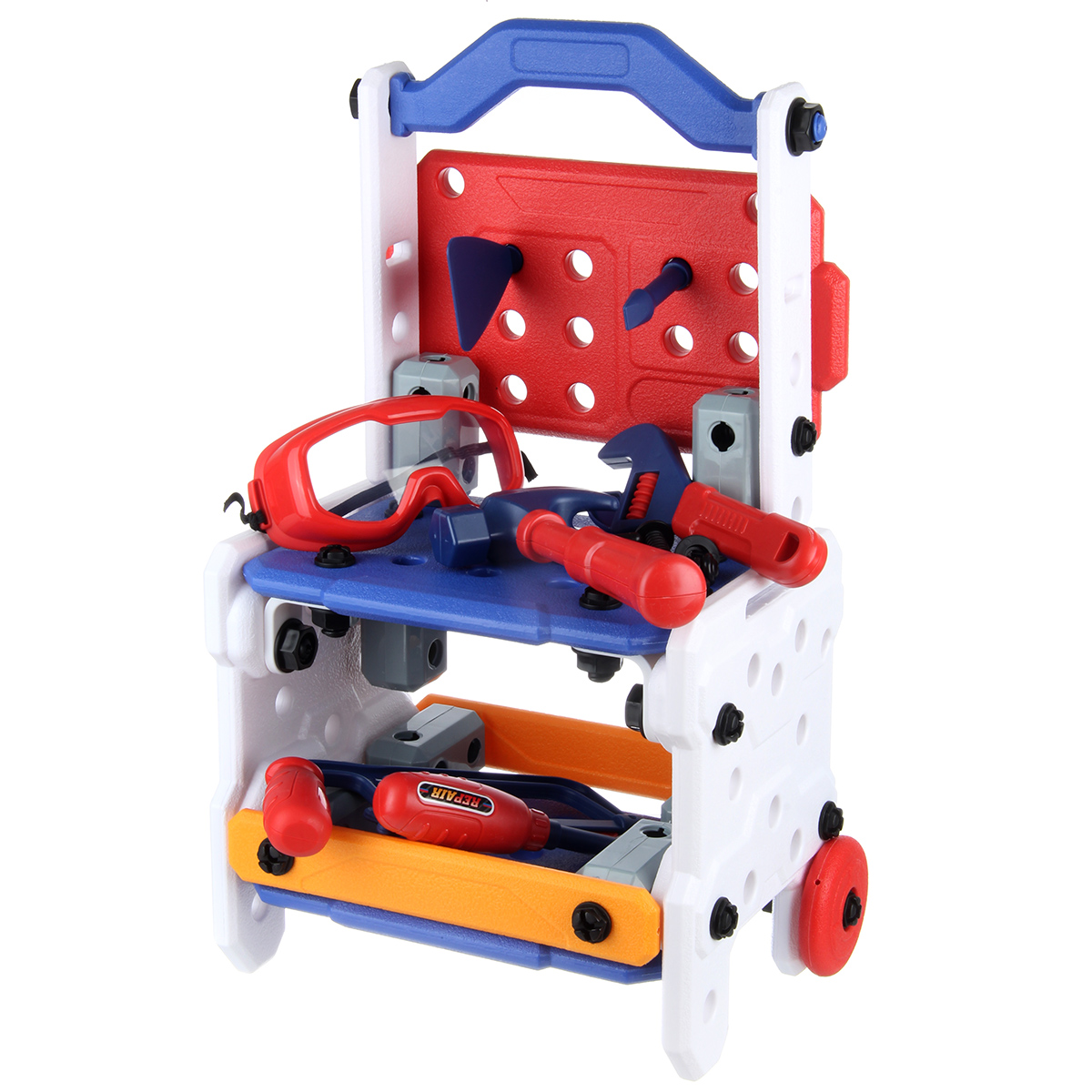 Отличный игровой набор 3 в 1, в котором можно собрать верстак, тележку, ящик для инструментов. Игрушечная мастерская с большим количеством предметов и продуманной конструкцией. Игрушечные инструменты с подвижными элементами, защитные очки на резинке с прозрачной линзой. Детский набор инструментов изготовлен из прочных и долговечных материалов, отличается высоким качеством исполнения и вниманием к деталям. Детская игрушка станет замечательным подарком мальчику на Новый год, День рождения, 23 февраля. Благодаря такому набору ребенок научится обращаться с домашними инструментами, получит широкие возможности для развития важных навыков.