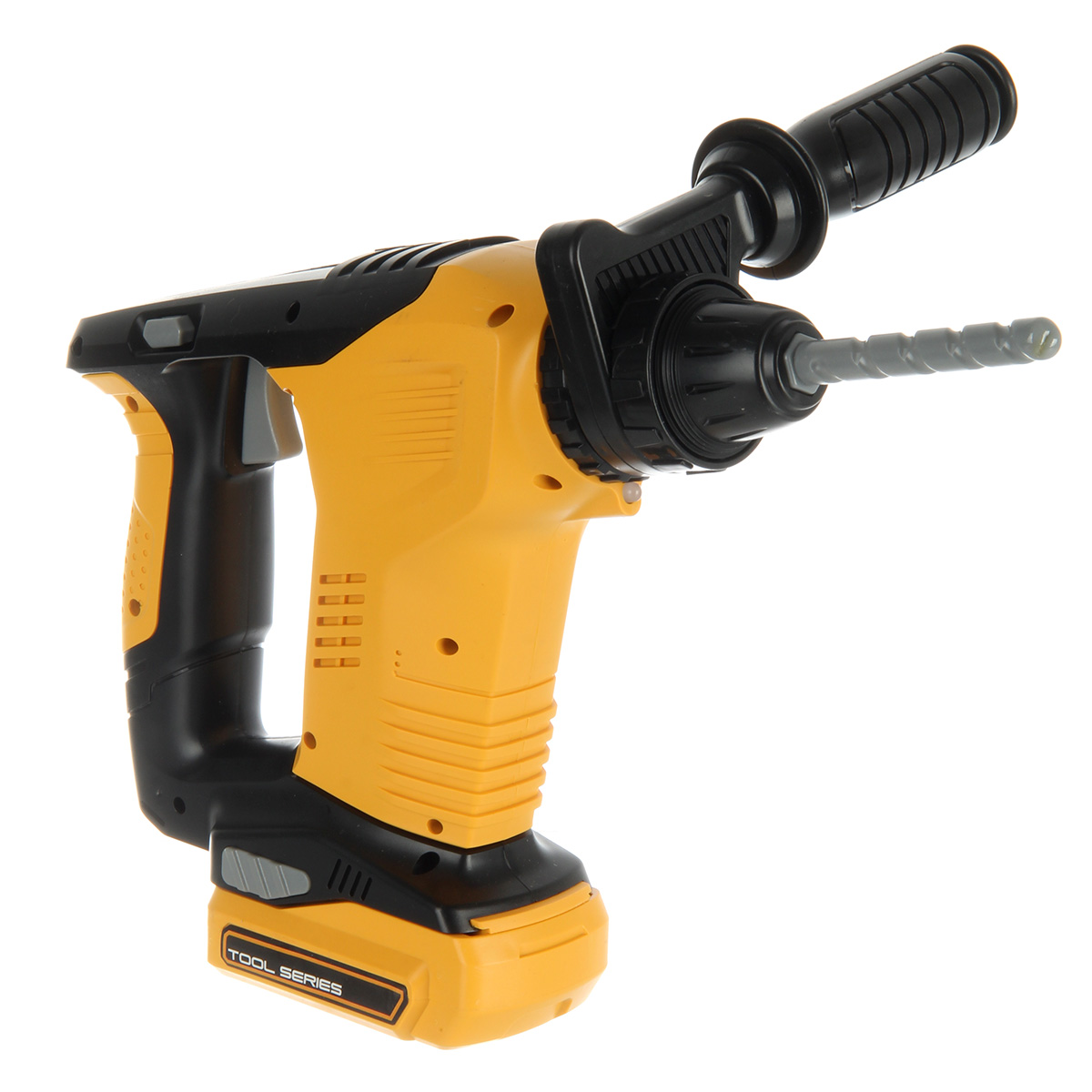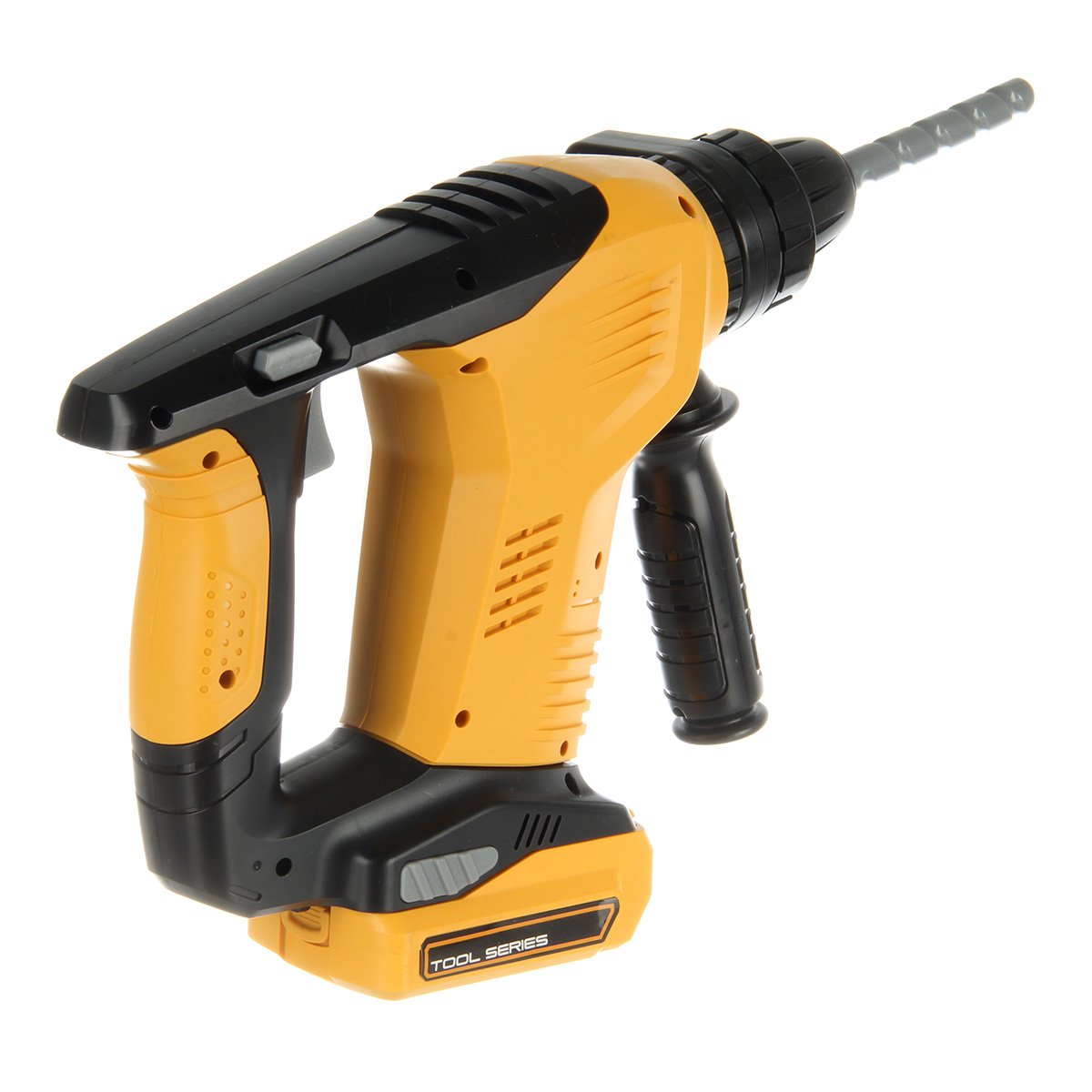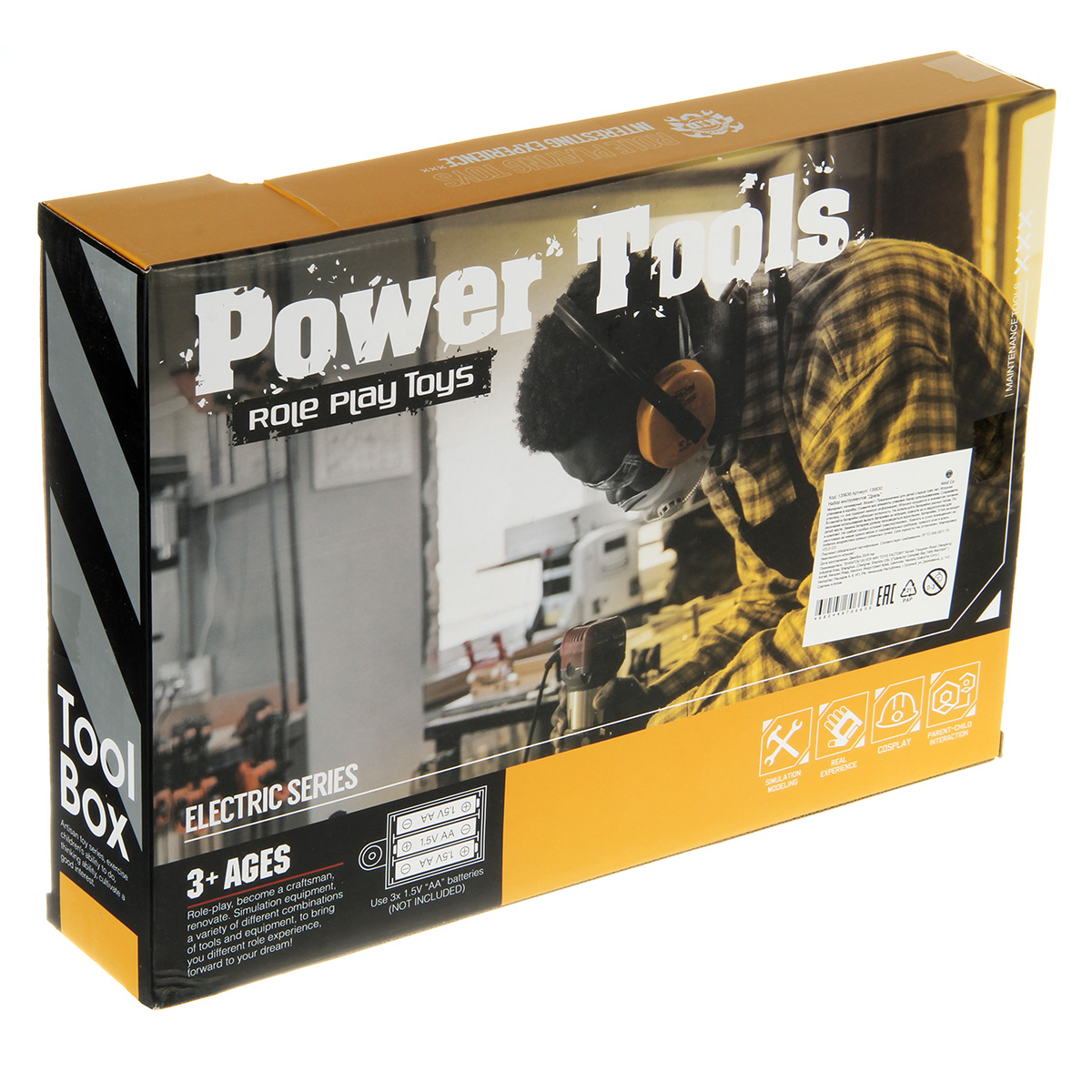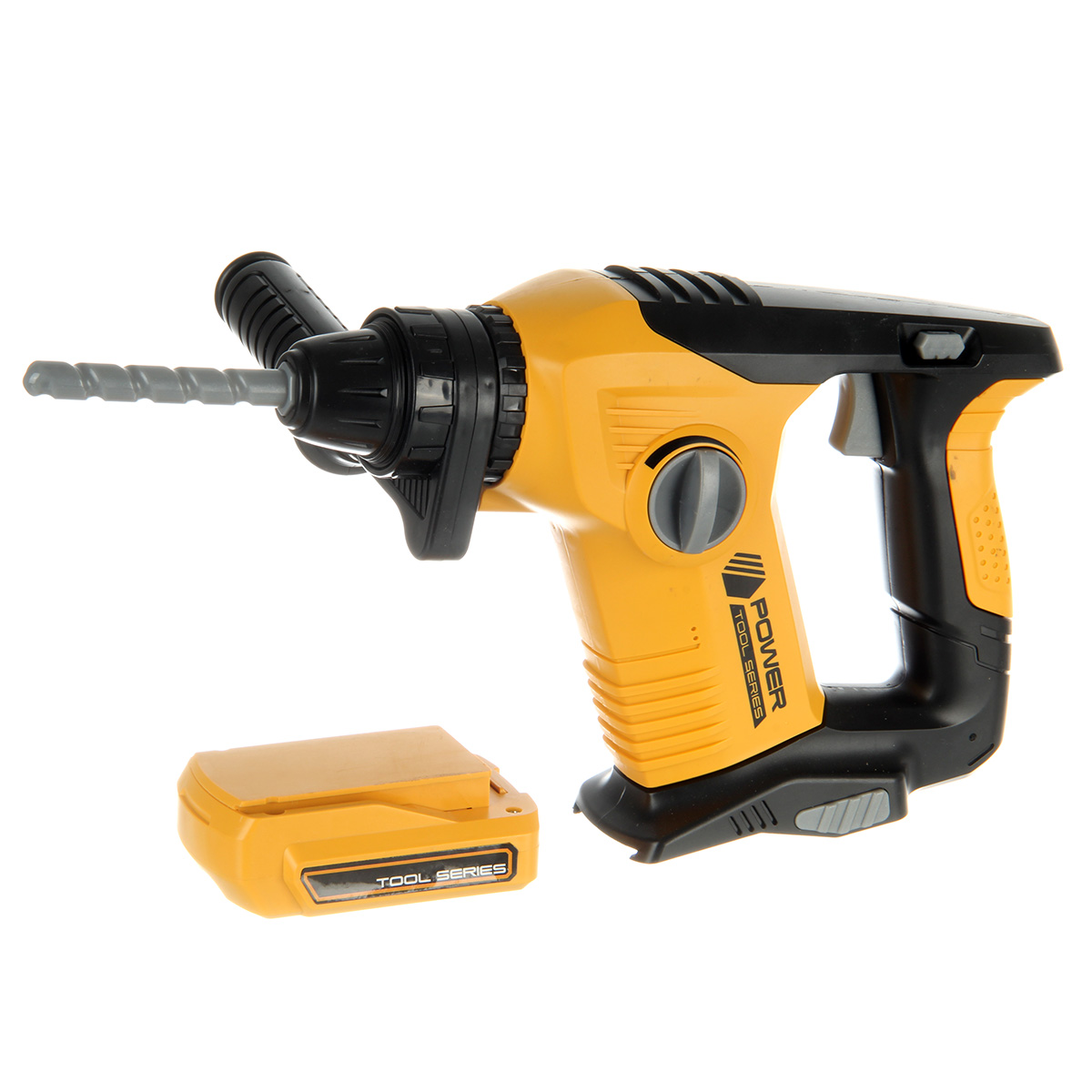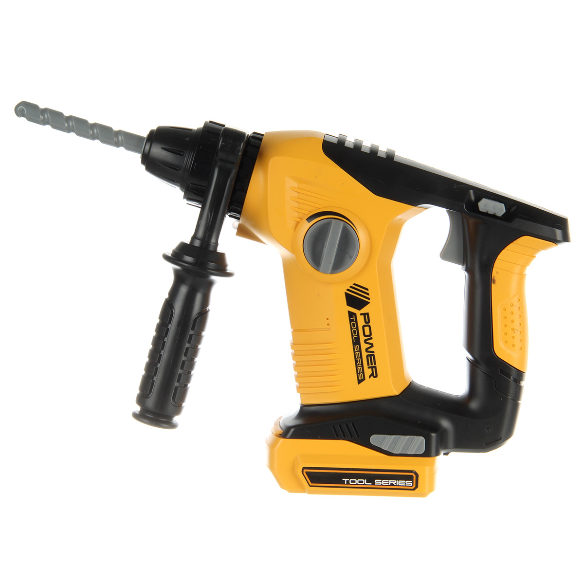 Набор инструментов в реалистичном дизайне. Дрель с вращением патрона по часовой и против часовой стрелки, 2 скорости вращения, более быстрая и более медленная, съемный аккумулятор, красивая подсветка, сменные насадки, рукоять удобная для хвата, очки на резинке. Прочные и долговечные материалы, качественное исполнение, внимание к деталям, привлекательная расцветка. Ребёнок будет учиться обращаться с домашним инструментом.