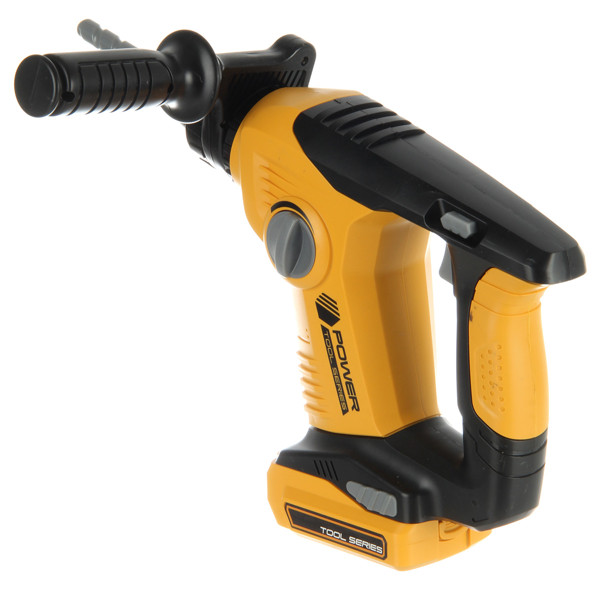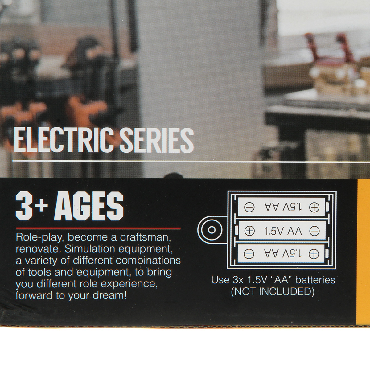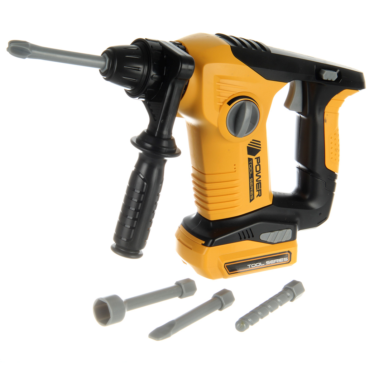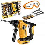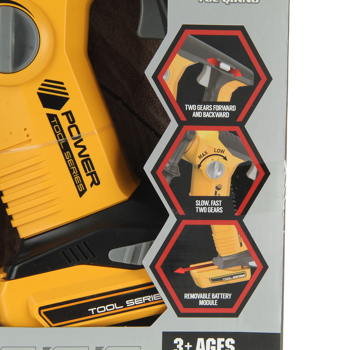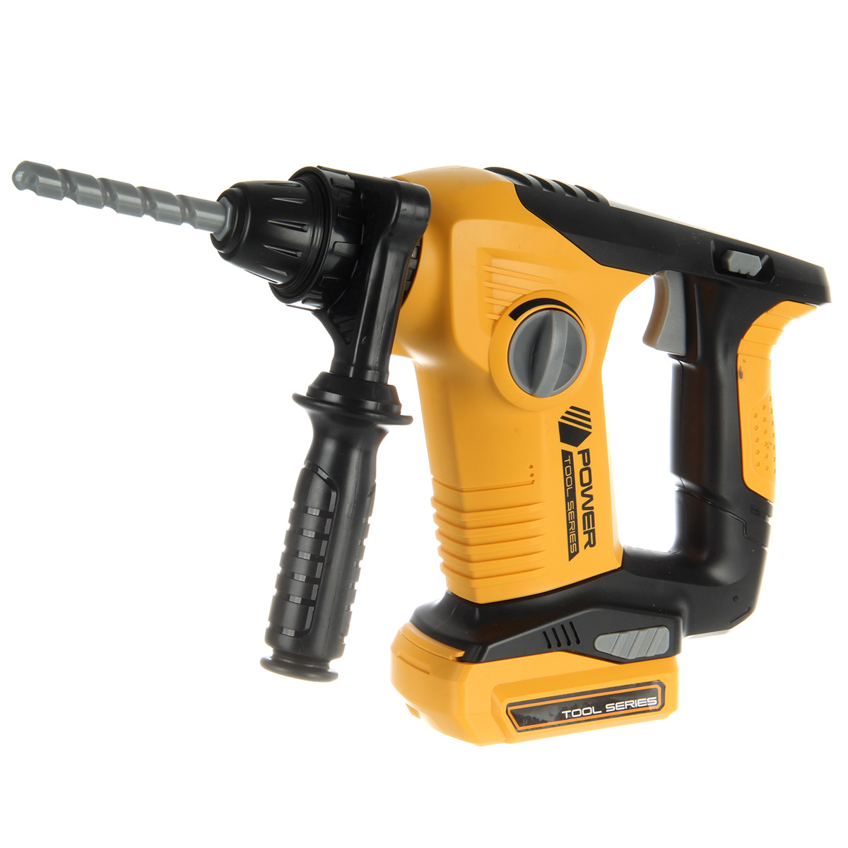 Набор инструментов в реалистичном дизайне. Дрель с вращением патрона по часовой и против часовой стрелки, 2 скорости вращения, более быстрая и более медленная, съемный аккумулятор, красивая подсветка, сменные насадки, рукоять удобная для хвата, очки на резинке. Прочные и долговечные материалы, качественное исполнение, внимание к деталям, привлекательная расцветка. Ребёнок будет учиться обращаться с домашним инструментом.
