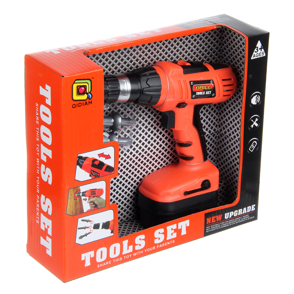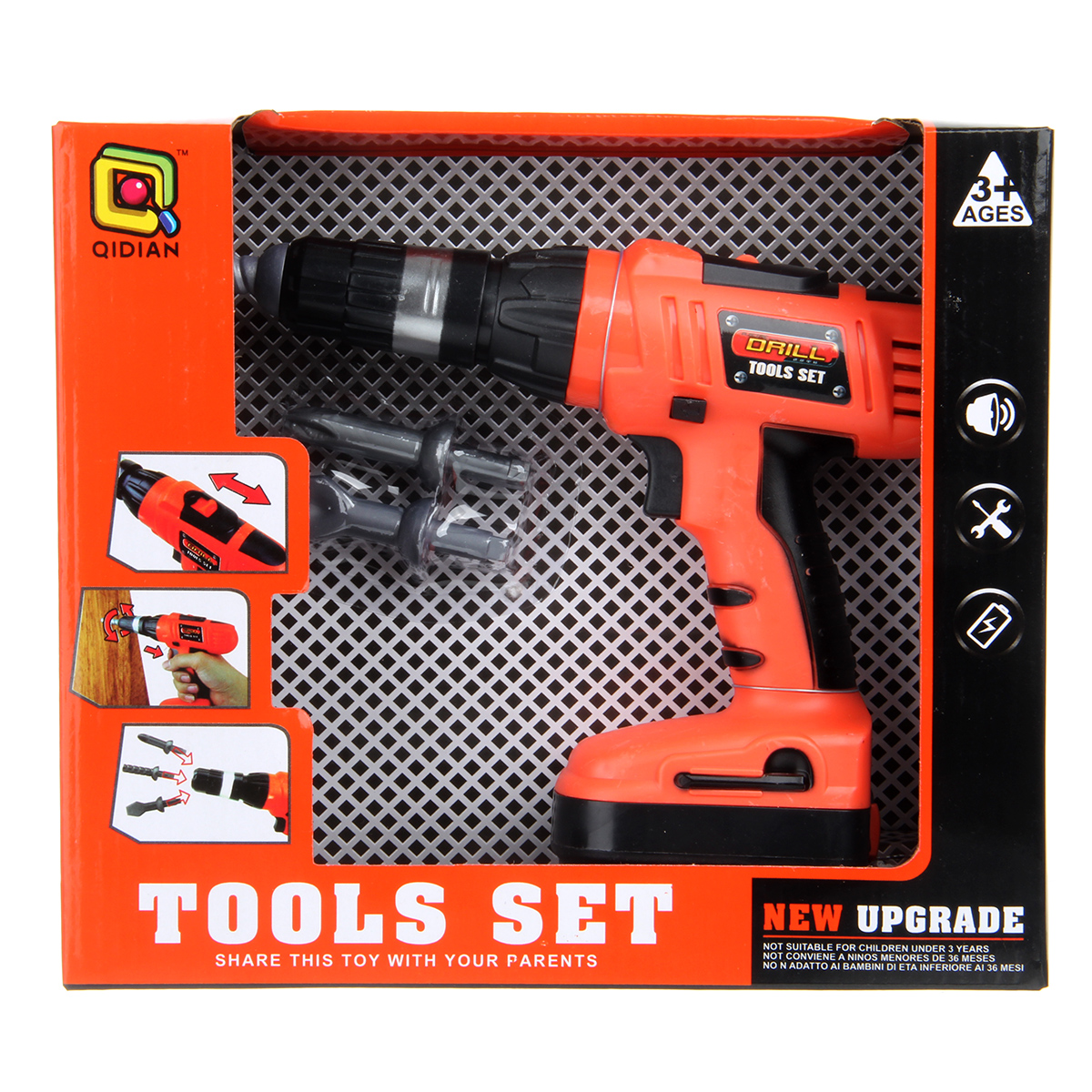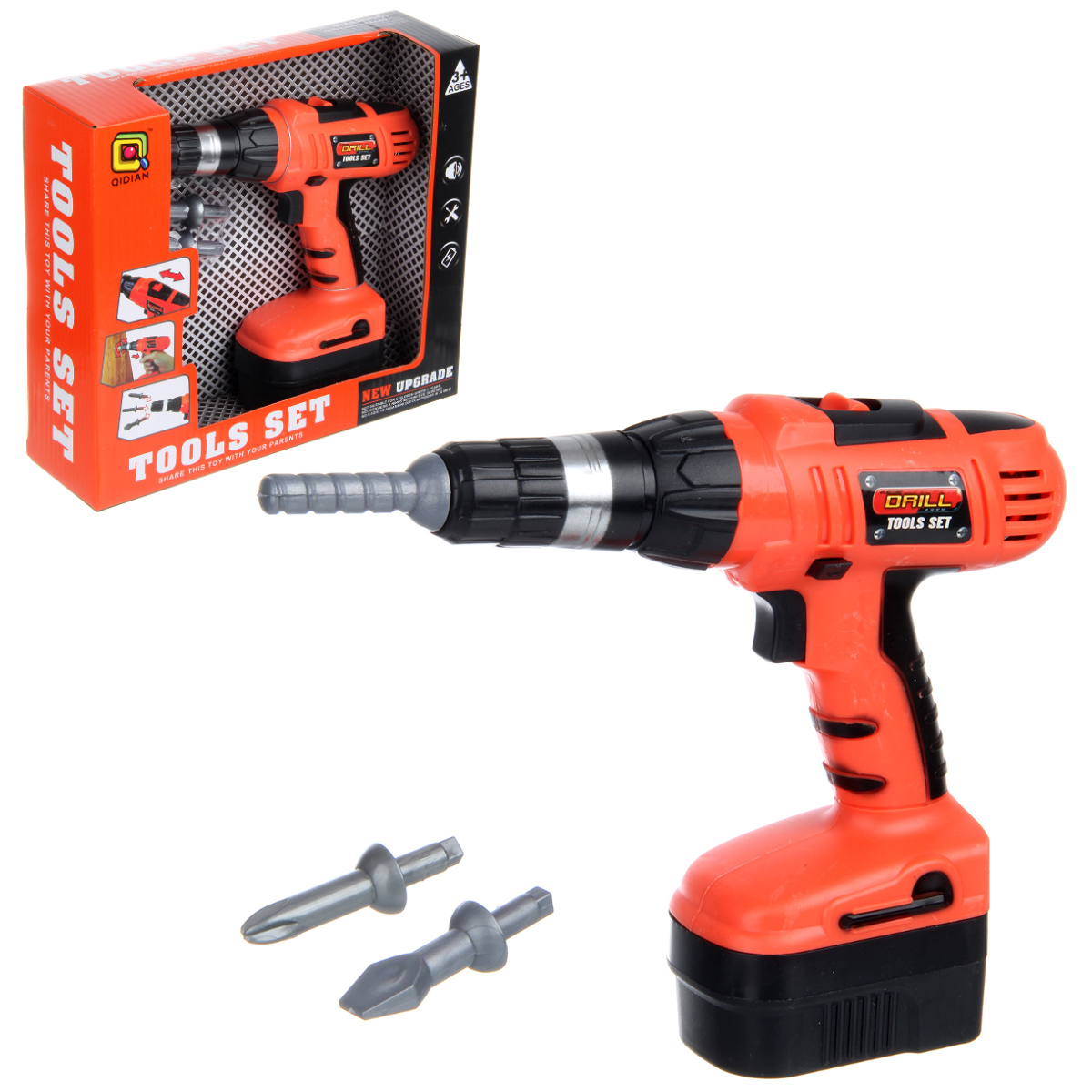 Игрушка шуруповерт работает от 2 батареек АА, не входят в комплект.