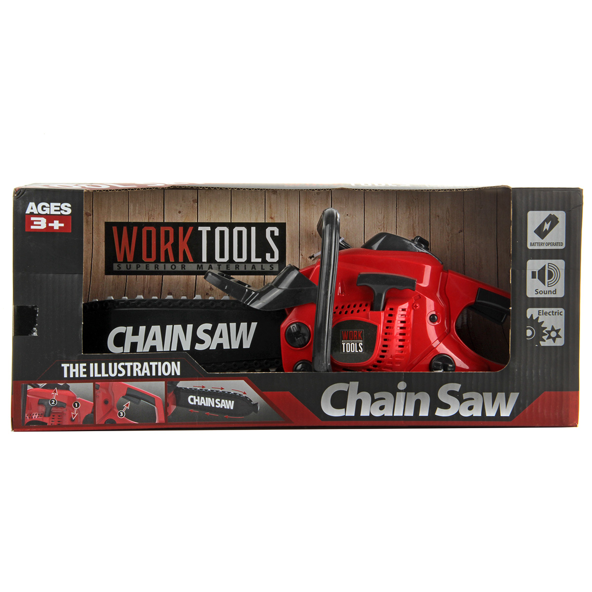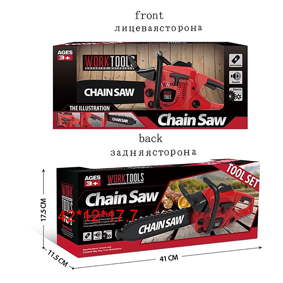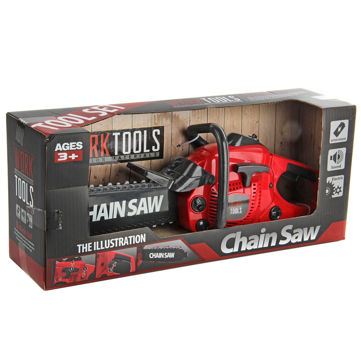 Игрушечная бензопила - предмет, благодаря которому ребенок узнает все о рубке деревьев и подготовке их к транспортировке.