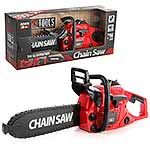 При нажатии кнопки на рукоятке игрушка издает звук работающей бензопилы, цепь прокручивается. Дергая за деталь в форме буквы Т (она же пусковое устройство), можно выбирать звуковые режимы, имеется беззвучный режим. Рычажки на корпусе пилы не крутятся. Рукоятка тормоза опускается.