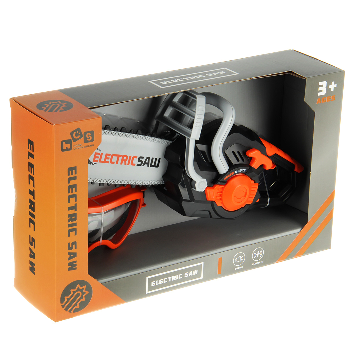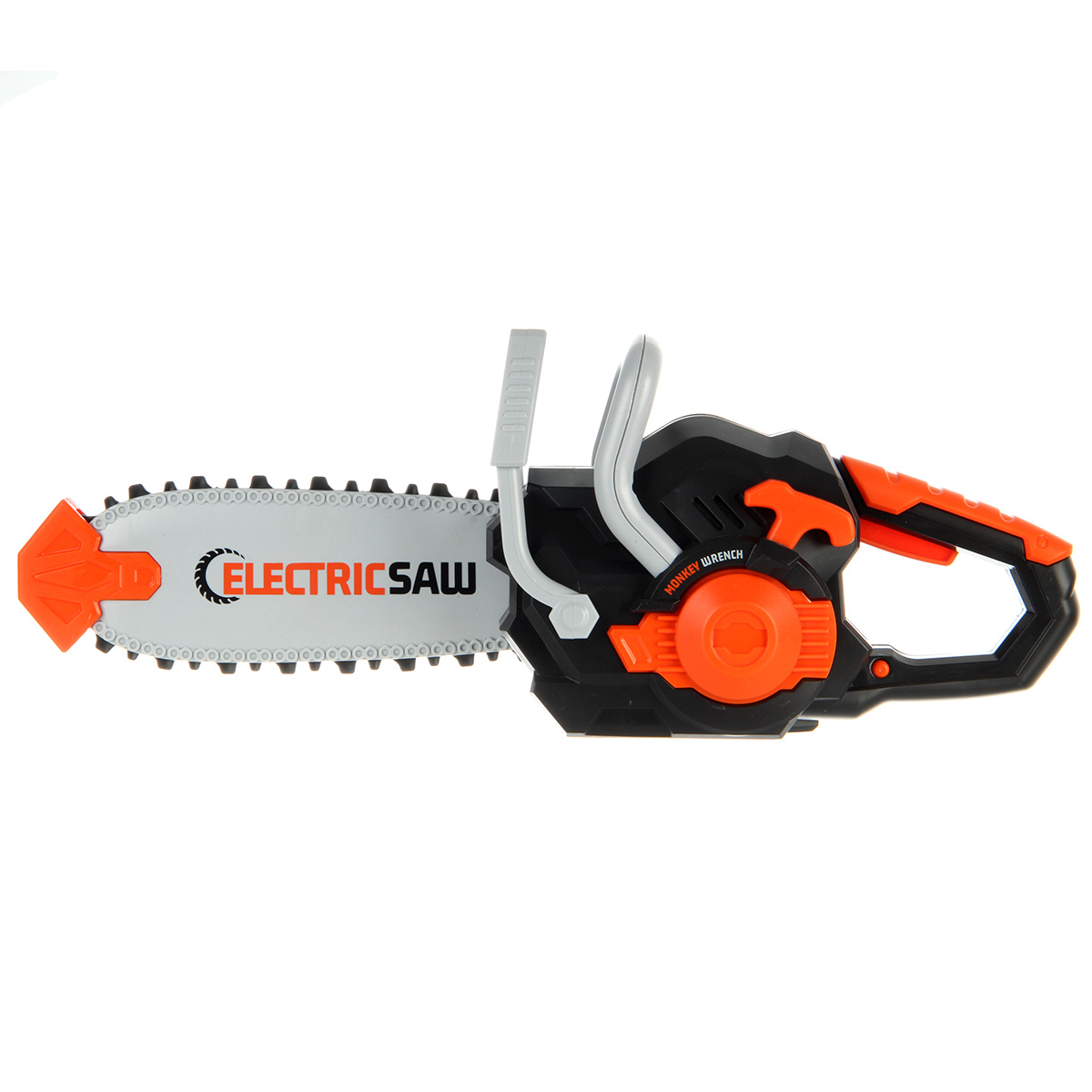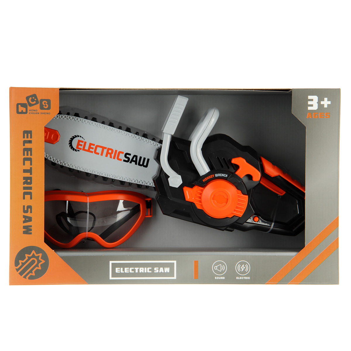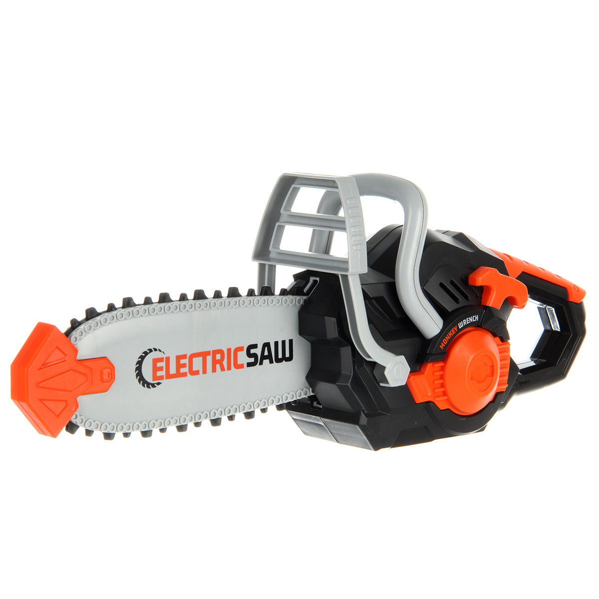 Игрушечная бензопила с подвижной цепью и звуковыми эффектами. Цепь прорезиненная, безопасные закругленные зубцы. Очки с линзой имитацией стекла, резинка растягивается, подойдут для любого размера головы. Игрушка изготовлена из прочных и долговечных материалов в качественном исполнении, оформлена в реалистичном дизайне и приятной расцветке.