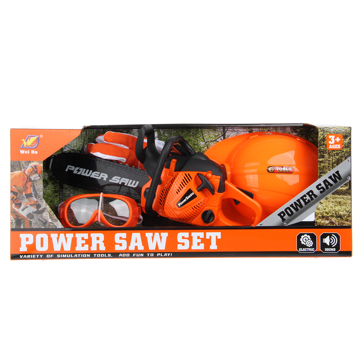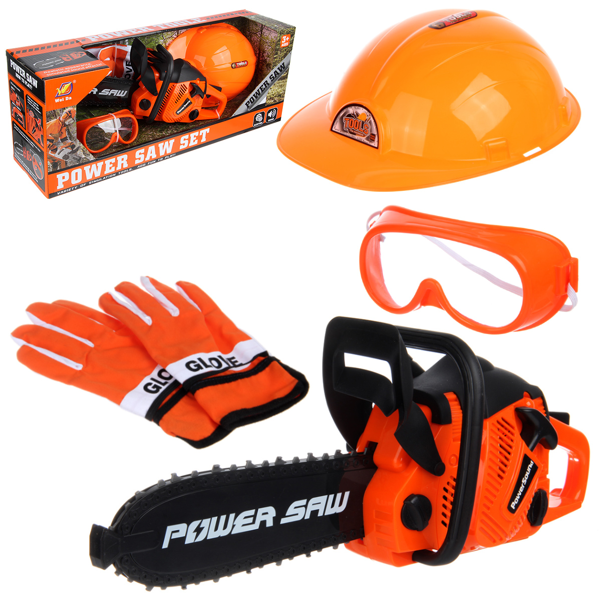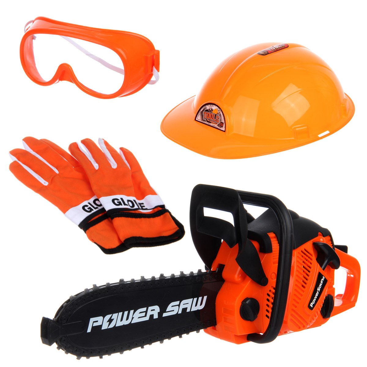 Детский игрушечный инструмент бензопила с двигающейся цепью и звуковыми эффектами. В наборе аксессуары, очки на резинке, каска и пара перчаток. Игрушечная бензопила проста в обращении, имеет удобную для хвата рукоять. Игрушка на батарейках изготовлена из прочных и долговечных материалов, поставляется в красивой упаковке. Набор детская пила с аксессуарами станет шикарным подарком детям на Новый год и День рождения. Ребенок примерит на себя новую социальную роль, познакомится с работой инструмента и его назначением.