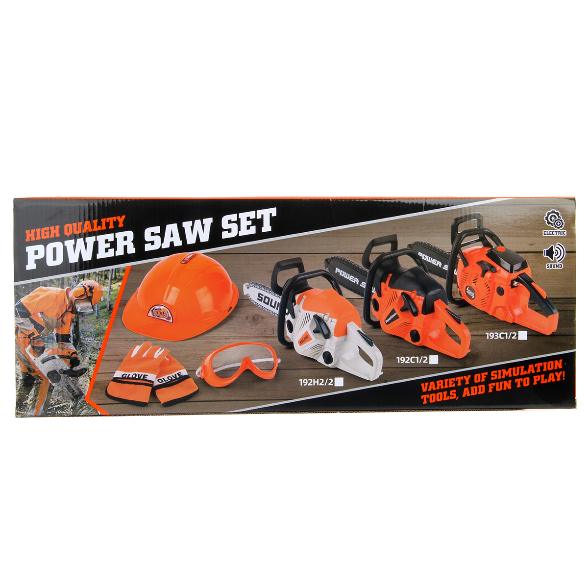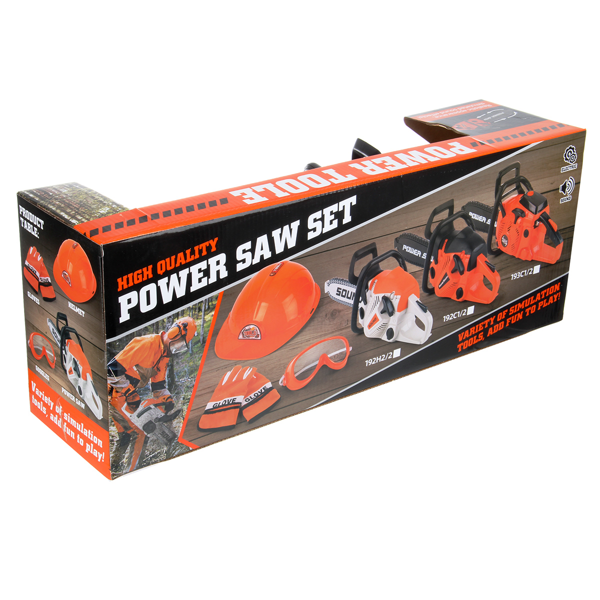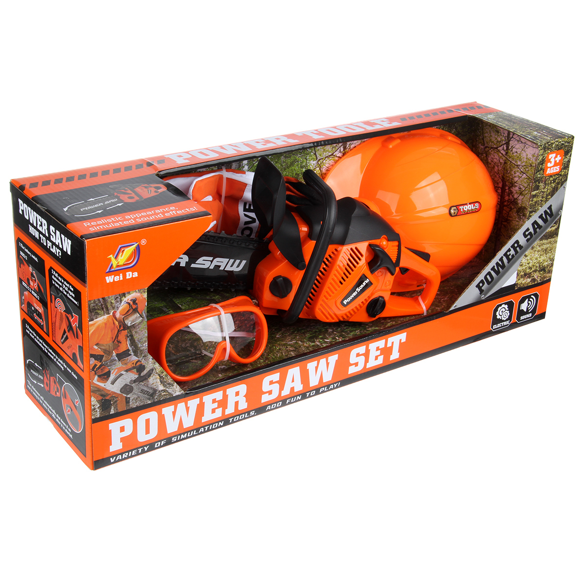 Детский игрушечный инструмент бензопила с двигающейся цепью и звуковыми эффектами. В наборе аксессуары, очки на резинке, каска и пара перчаток. Игрушечная бензопила проста в обращении, имеет удобную для хвата рукоять. Игрушка на батарейках изготовлена из прочных и долговечных материалов, поставляется в красивой упаковке. Набор детская пила с аксессуарами станет шикарным подарком детям на Новый год и День рождения. Ребенок примерит на себя новую социальную роль, познакомится с работой инструмента и его назначением.