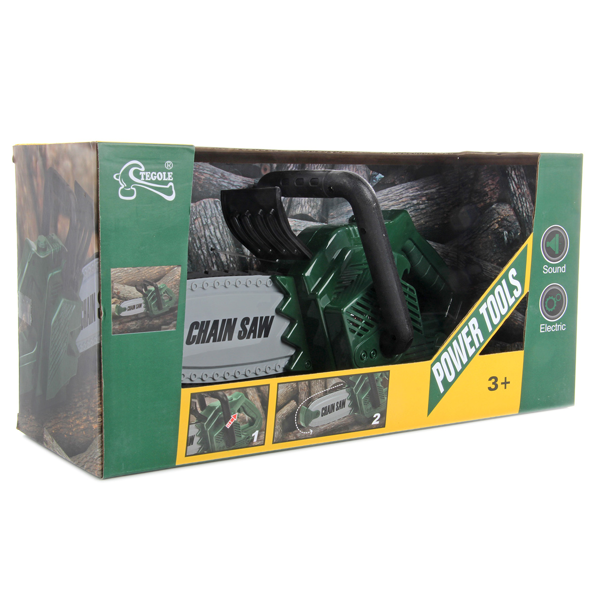 Дети учатся у взрослых, подражая им, смотрят, запоминают и повторяют их действия. Наблюдая за папой, ребенок замечает, как тот обращается с инструментами в гараже или дома. И каждый из этих инструментов знакомит малыша с каким-либо видом деятельности. Игрушечная бензопила - предмет, который расскажет ребенку о рубке деревьев и подготовке их к транспортировке. При нажатии на кнопку на рукояти пилы пила станет издавать звук работы настоящего инструмента, пильная цепь будет вращаться. Игрушка отлично развивает мелкую моторику рук, звуковое восприятие, тренирует тактильное осязание. Добавьте эту игрушку в коллекцию домашних детских инструментов, чтобы ребенок тренировал новые навыки и знакомился с окружающим миром. Пила работает от 3 батареек АА, не входят в комплект, вставляются в днище инструмента. Игрушка изготовлена из высококачественного и безопасного полимерного материала. Размеры пилы: 30*10*15,5 см. Размеры коробки: 33*12*17 см.