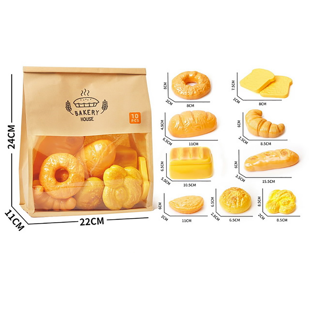 В наборе 10 фигурок имитаций хлеба.