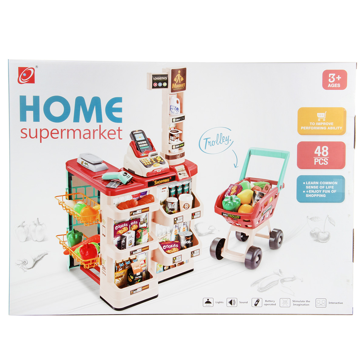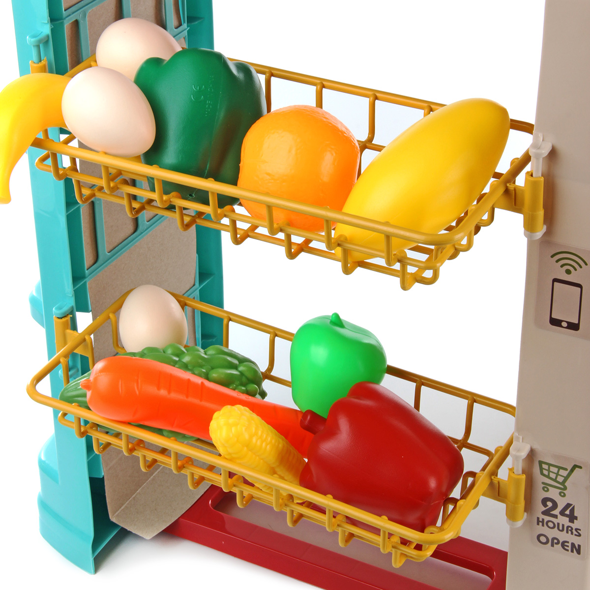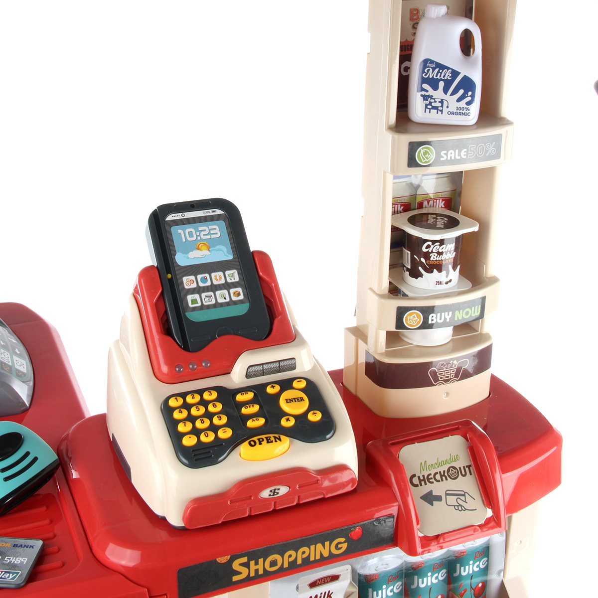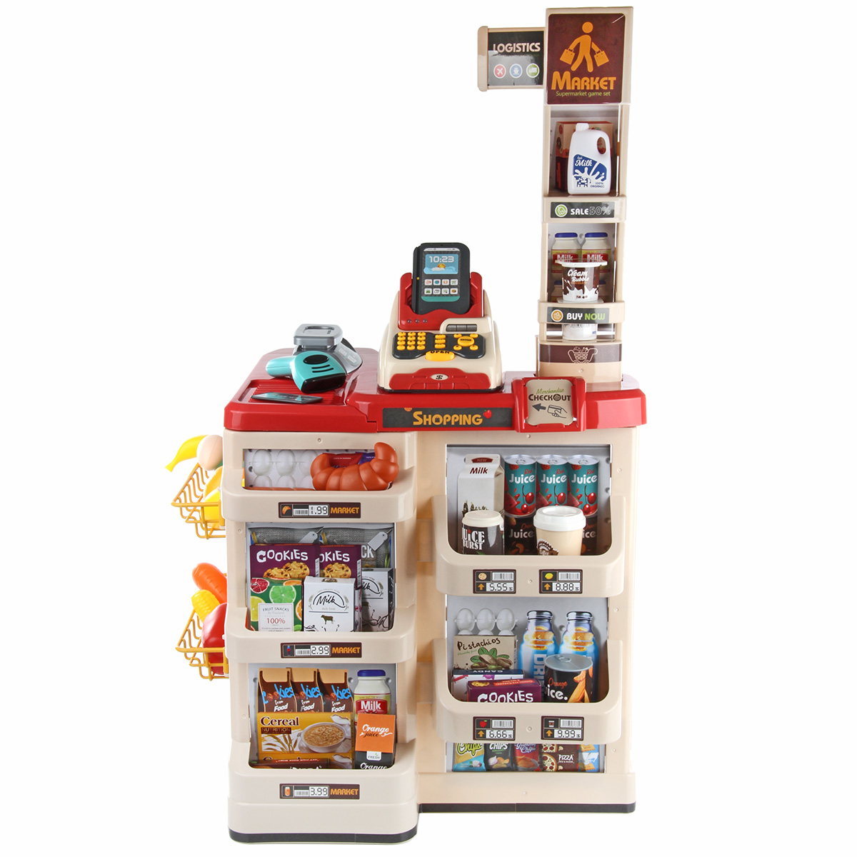 Такой детский супермаркет с кассой станет замечательным подарком детям, мальчику, девочке, на новый год, день рождения и на любой другой повод. Отлично дополнит сюжетно ролевые игры, способствует развитию мелкой и крупной моторике, координации движений, воображения, коммуникативные навыки.