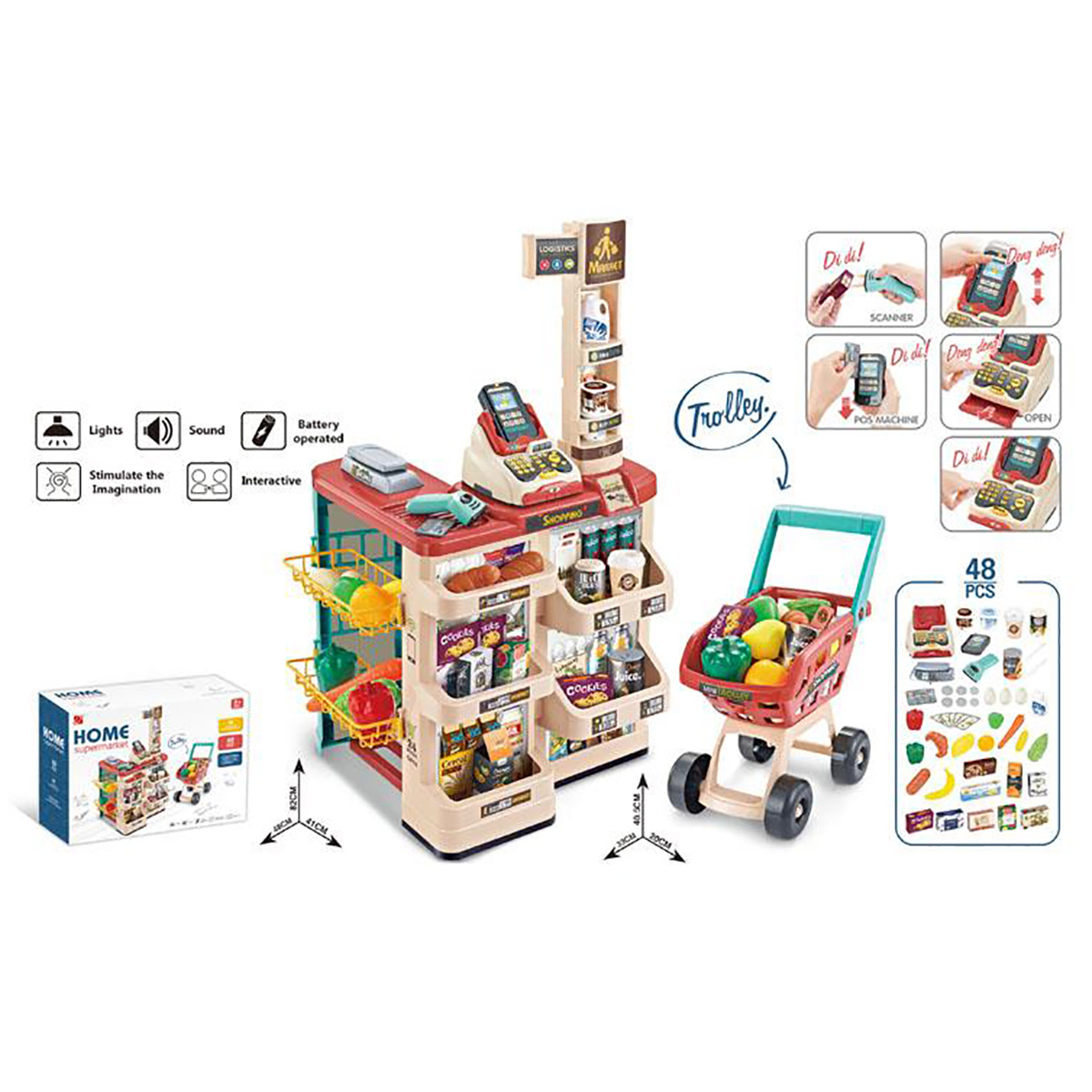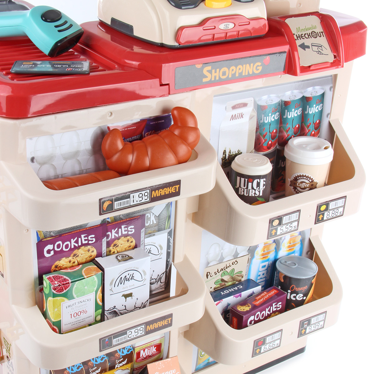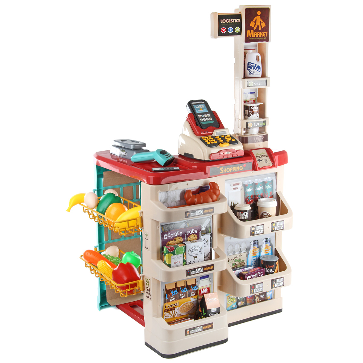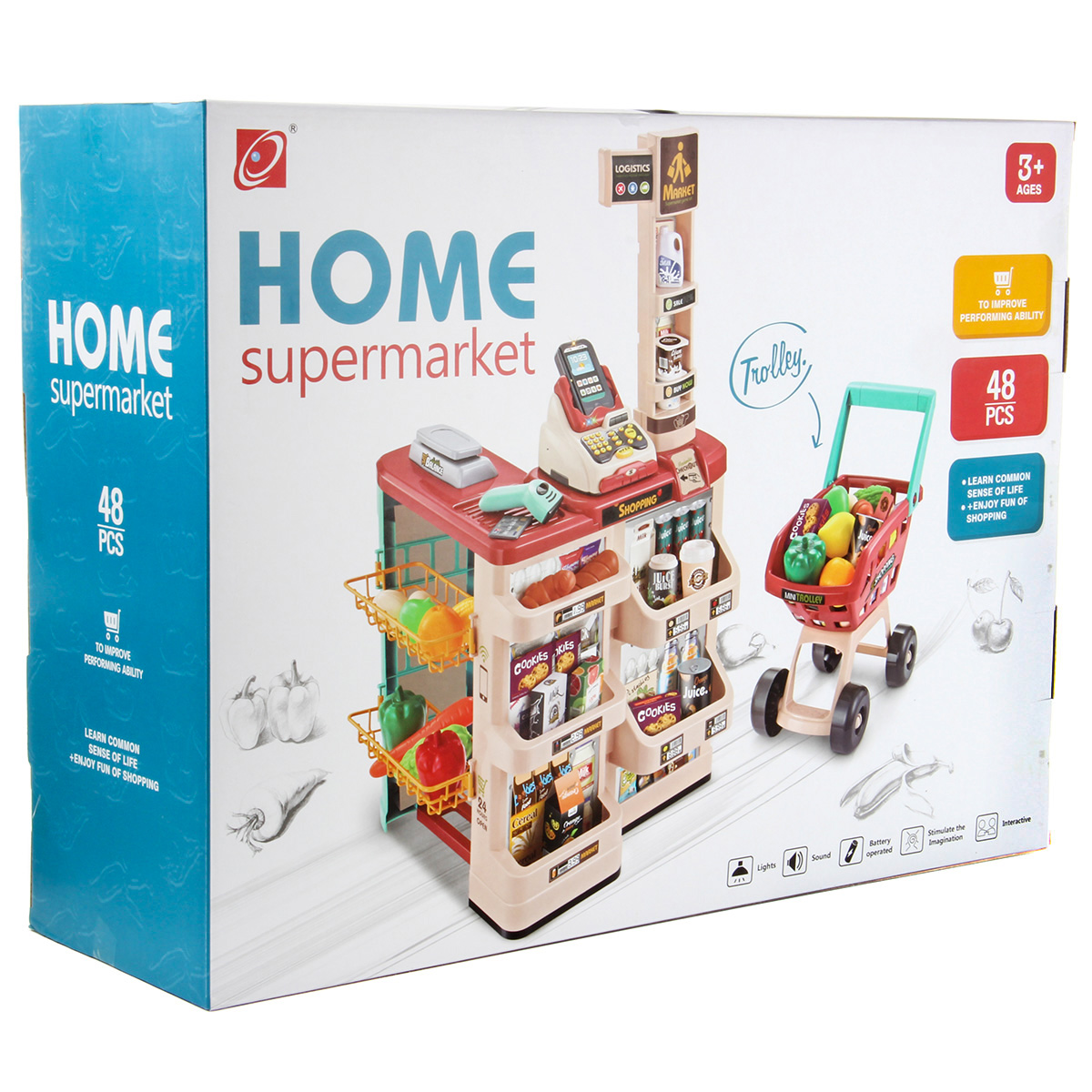 Такой детский супермаркет с кассой станет замечательным подарком детям, мальчику, девочке, на новый год, день рождения и на любой другой повод. Отлично дополнит сюжетно ролевые игры, способствует развитию мелкой и крупной моторике, координации движений, воображения, коммуникативные навыки.