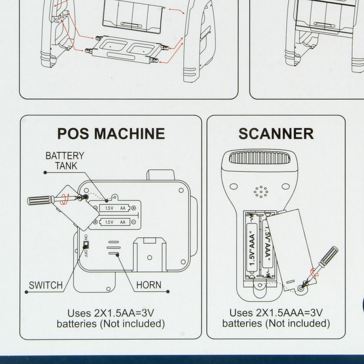 Кассовый аппарат работает от 2 батареек АА, не входят в комплект.