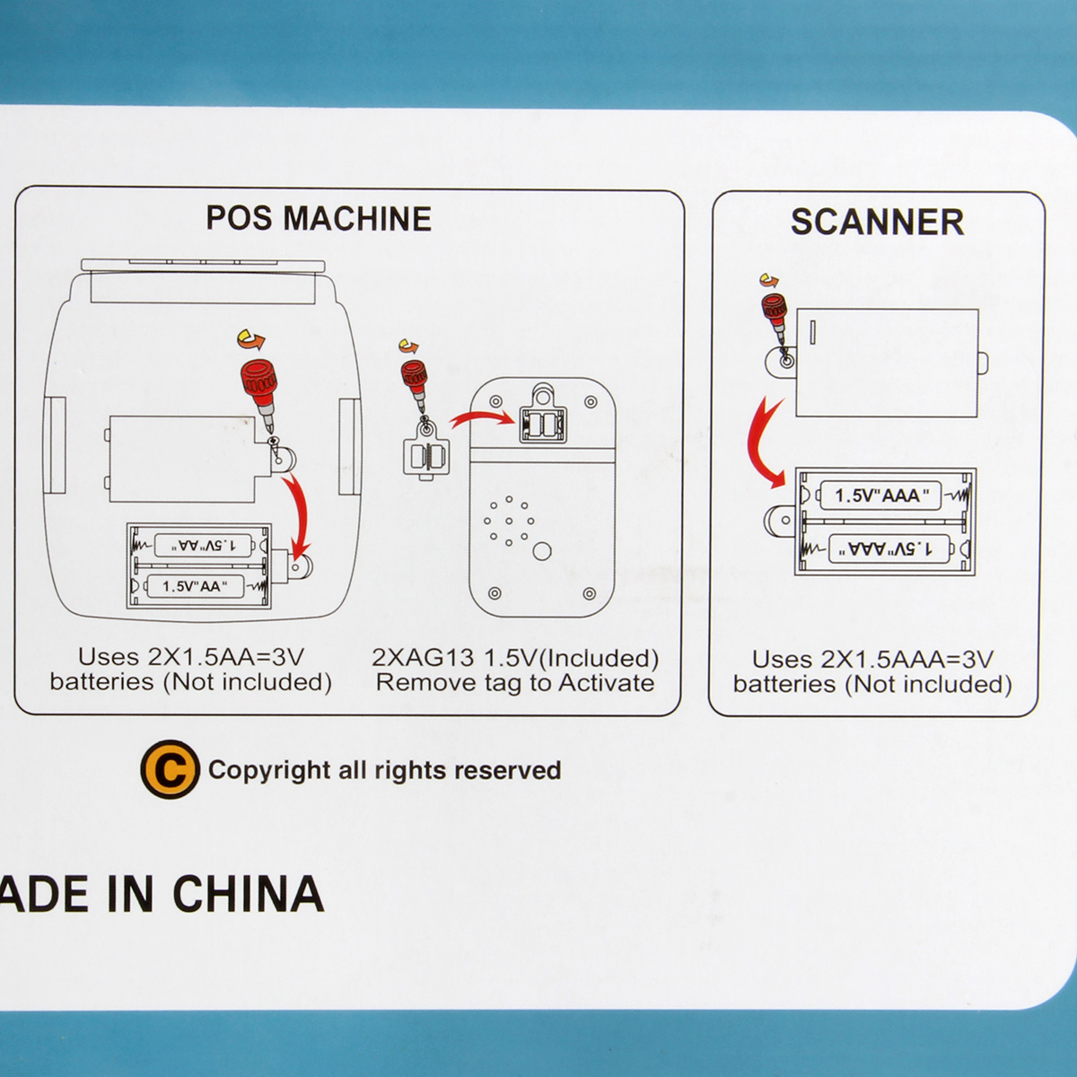 Кассовый аппарат работает от 2 батареек АА, не входят в комплект.