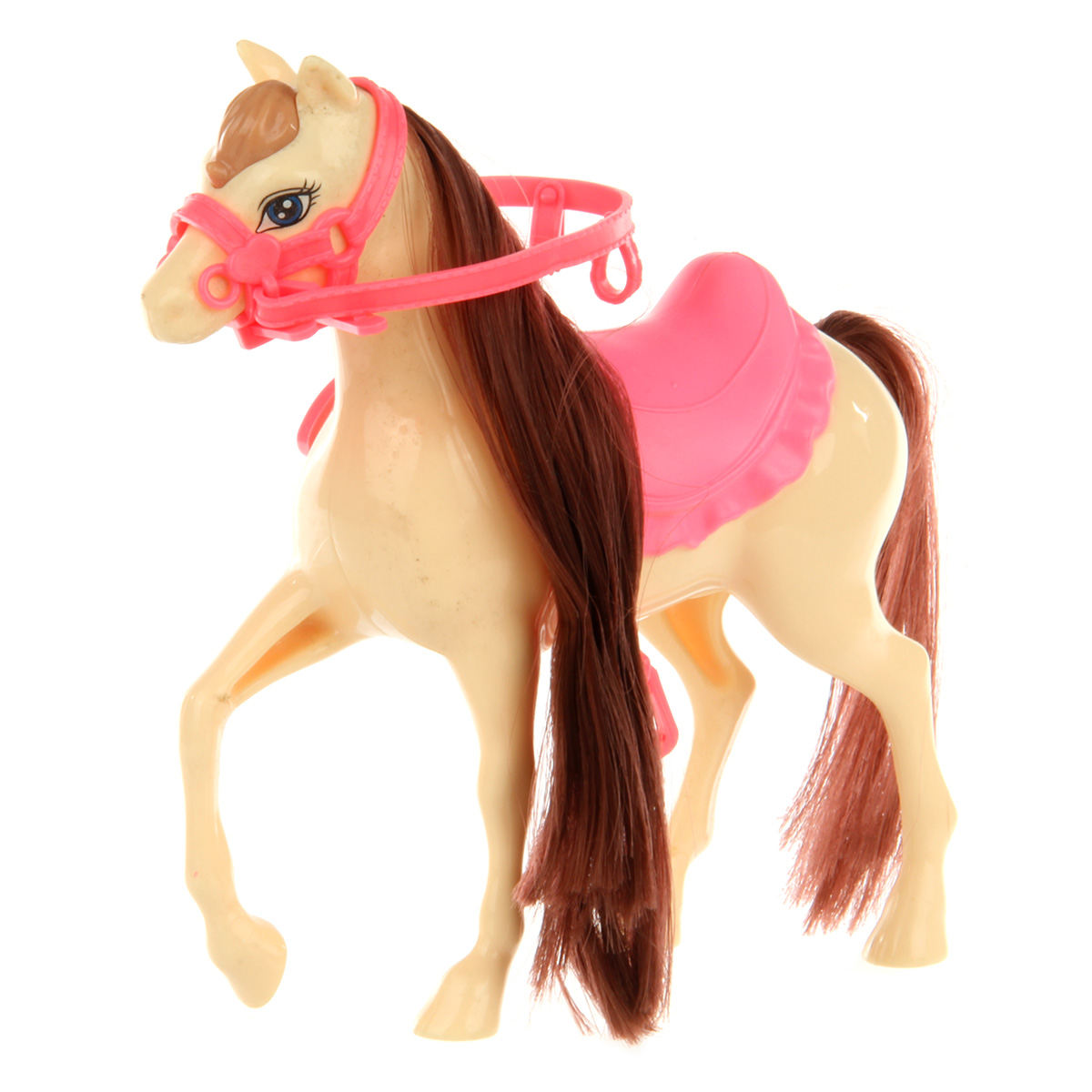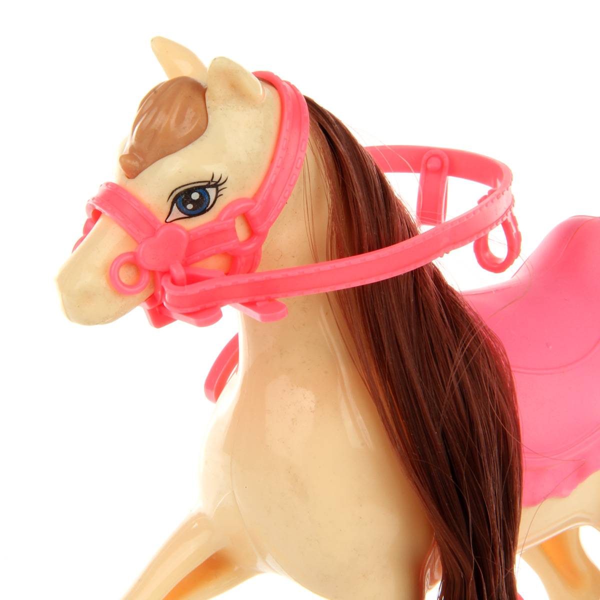 Тело лошадки жесткое, уздечку можно снять.