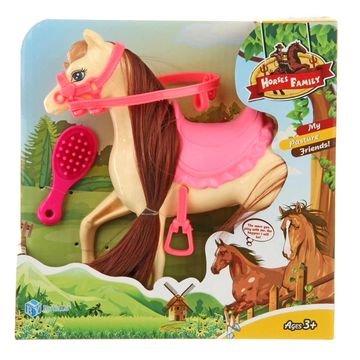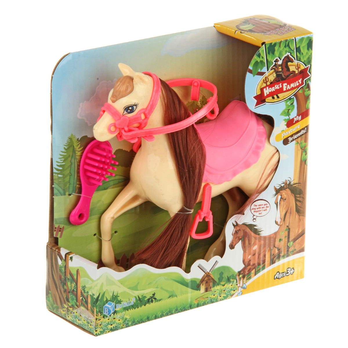 В комплекте игрушка лошадка с расческой.