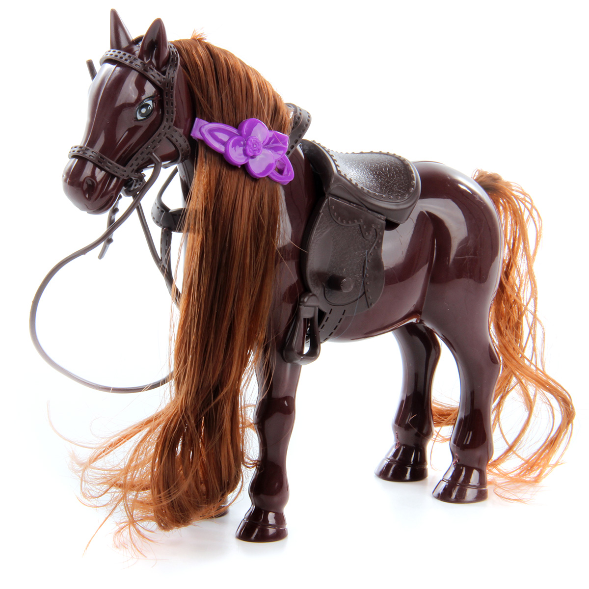 Игрушечная лошадка с подвижными элементами, съемным седлом, уздечкой и аксессуаром расческой замечательно дополнит коллекцию игрушек маленькой принцессы. У игрушки лошади шикарные грива и хвостик, можно расчесывать и заплетать в косички. Изготовлена из качественного и безопасного материала с вниманием к деталям. Игрушка для девочки оформлена в реалистичном дизайне, большие выразительные глаза, приятная расцветка.
