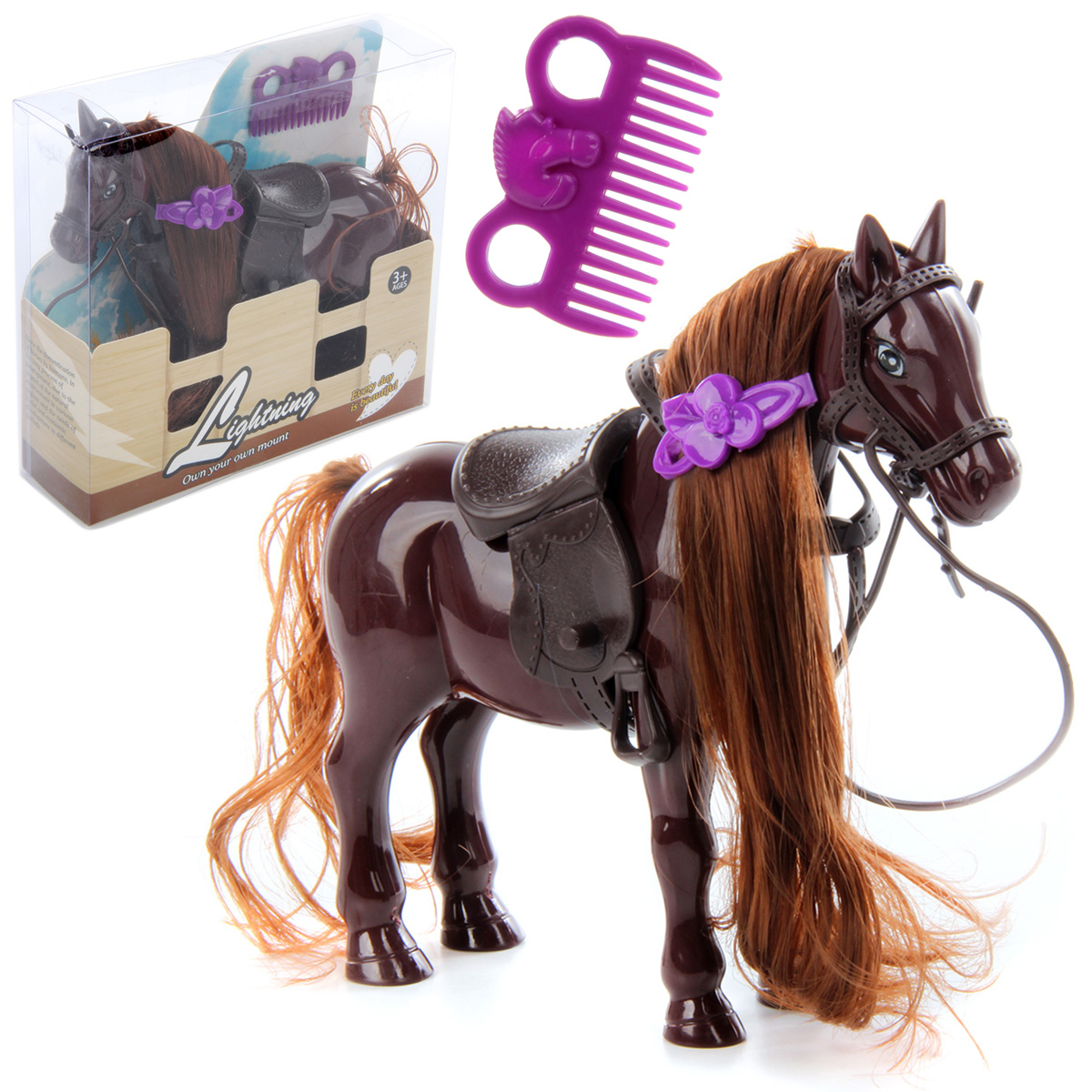В игровом наборе игрушечная лошадь и расческа.