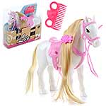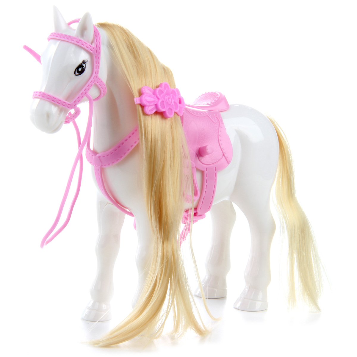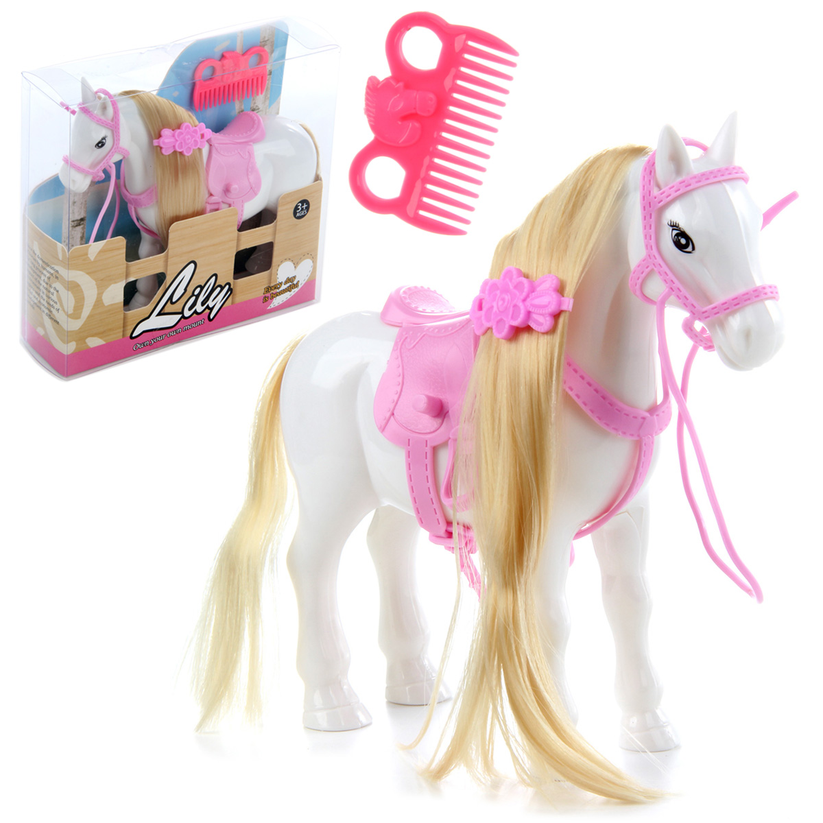 Игрушечная лошадка с подвижными элементами, съемным седлом, уздечкой и аксессуаром расческой замечательно дополнит коллекцию игрушек маленькой принцессы. У игрушки лошади шикарные грива и хвостик, можно расчесывать и заплетать в косички. Изготовлена из качественного и безопасного материала с вниманием к деталям. Игрушка для девочки оформлена в реалистичном дизайне, большие выразительные глаза, приятная расцветка.