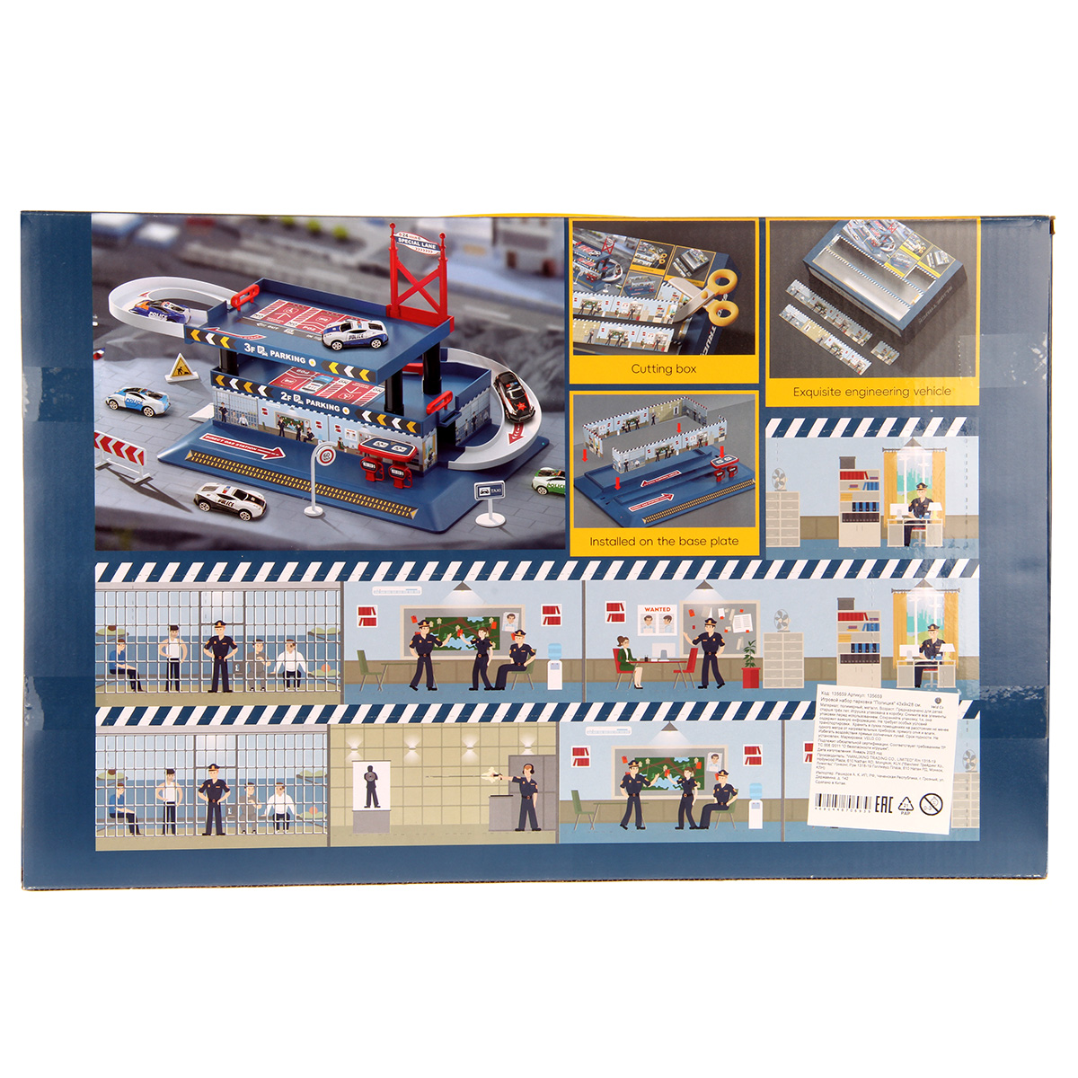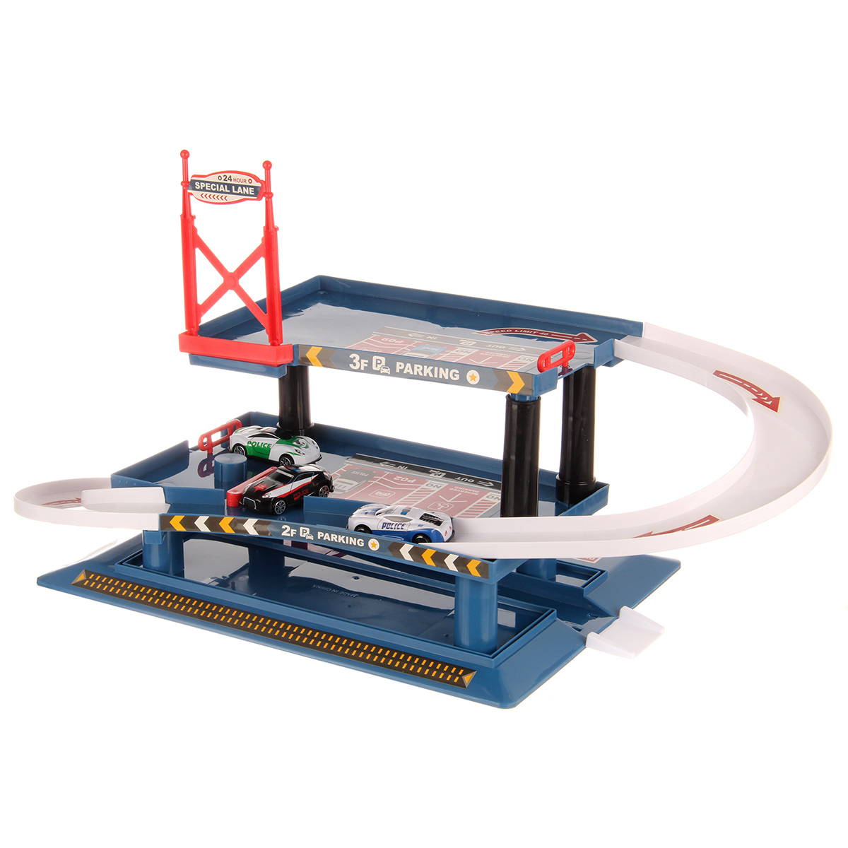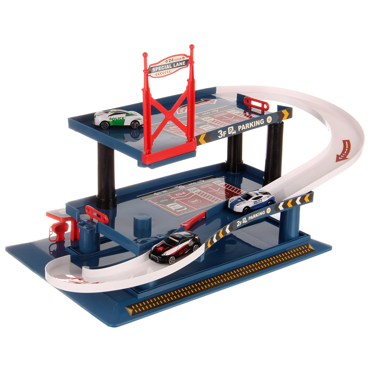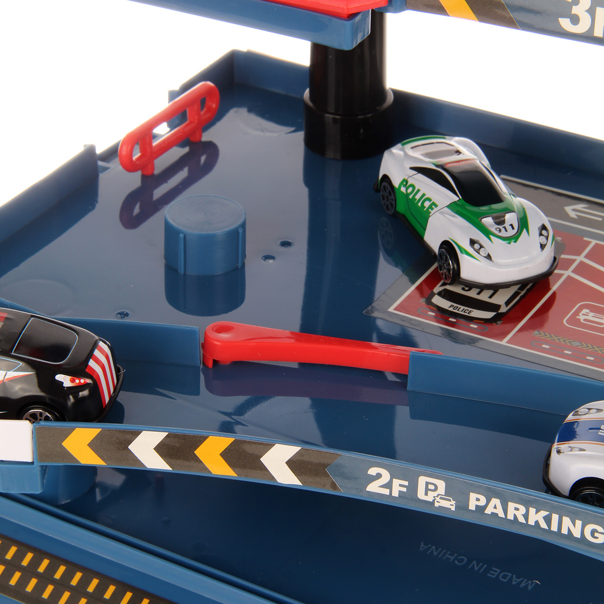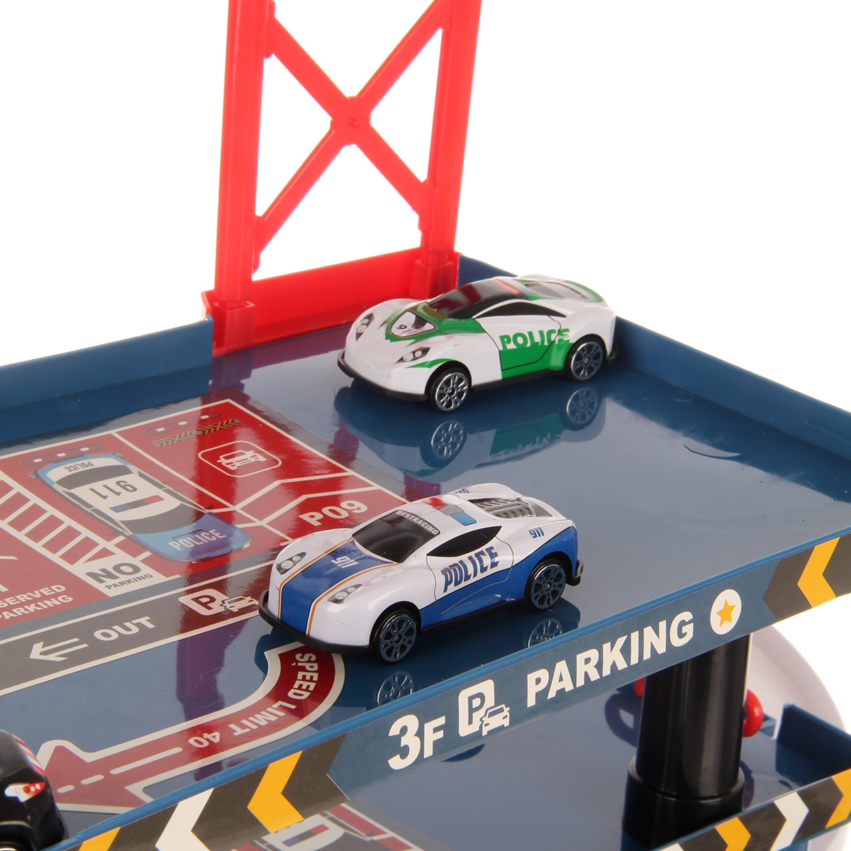 Многоуровневая игрушка парковка для увлекательных игр с машинками. Парковка полиция изготовлена из качественных безопасных материалов, имеет закругленные углы. Металлические машинки оформлены в оригинальном дизайне и яркой расцветке. Машинки спускаются с верхних уровней вниз, катаясь по направлению стрелок. Автопарковка подойдёт для ролевых игр в полицию. Такая парковка для машинок станет замечательным подарком мальчику, на новый год, день рождения, 23 февраля и на любой другой повод.
