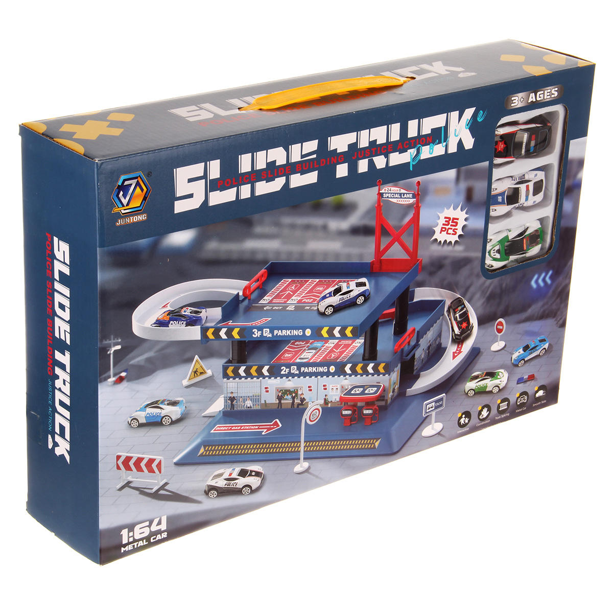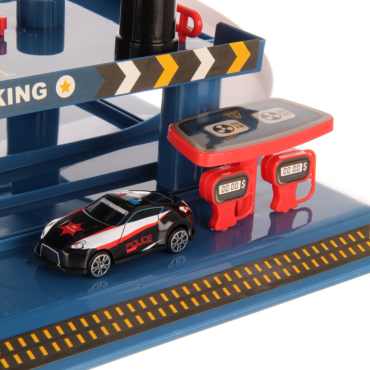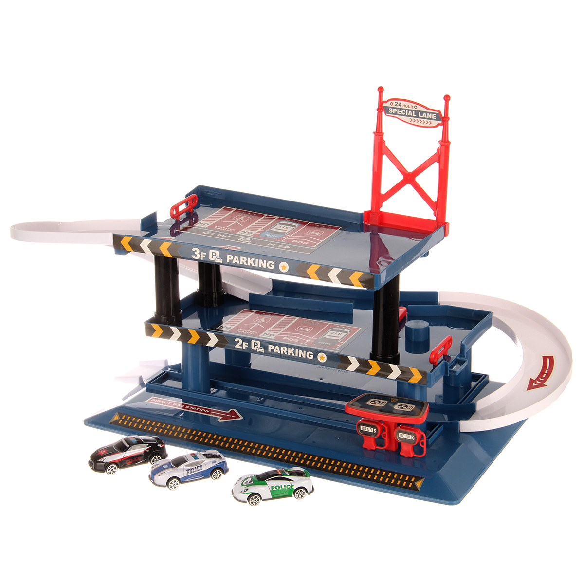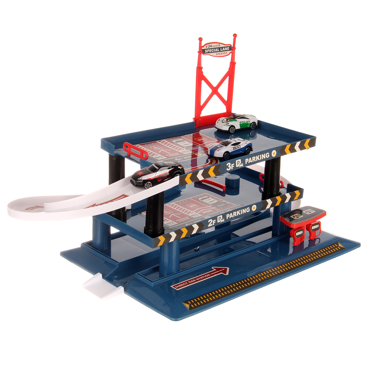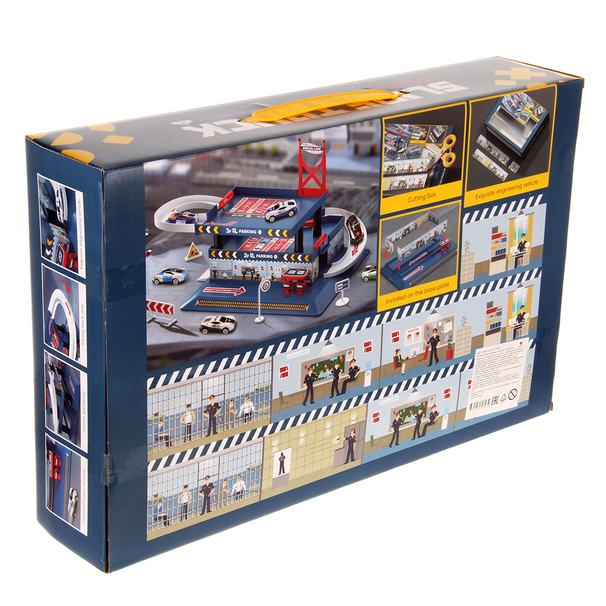 Многоуровневая игрушка парковка для увлекательных игр с машинками. Парковка полиция изготовлена из качественных безопасных материалов, имеет закругленные углы. Металлические машинки оформлены в оригинальном дизайне и яркой расцветке. Машинки спускаются с верхних уровней вниз, катаясь по направлению стрелок. Автопарковка подойдёт для ролевых игр в полицию. Такая парковка для машинок станет замечательным подарком мальчику, на новый год, день рождения, 23 февраля и на любой другой повод.