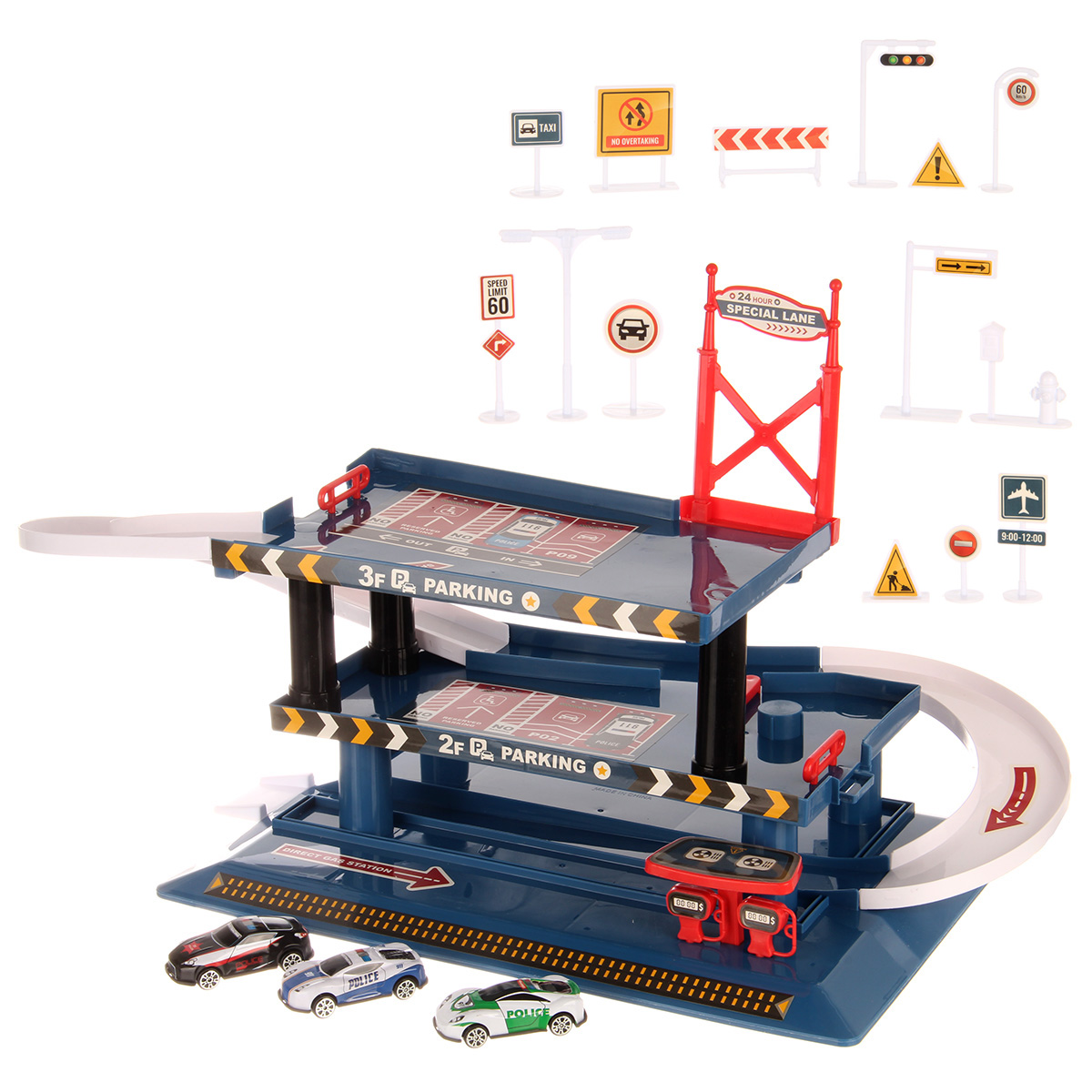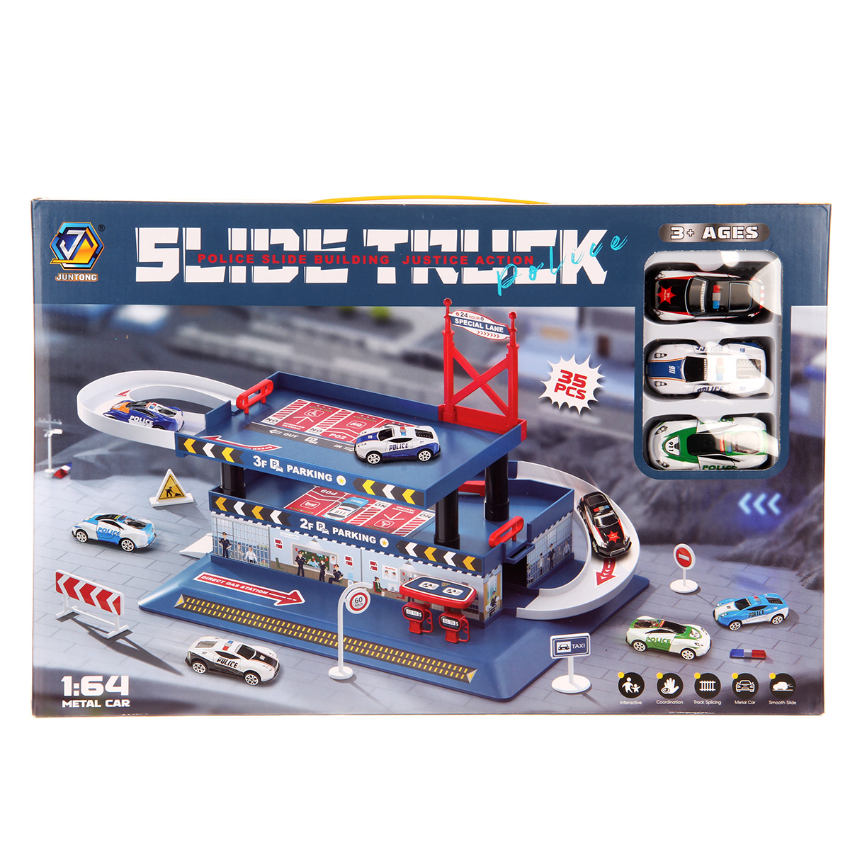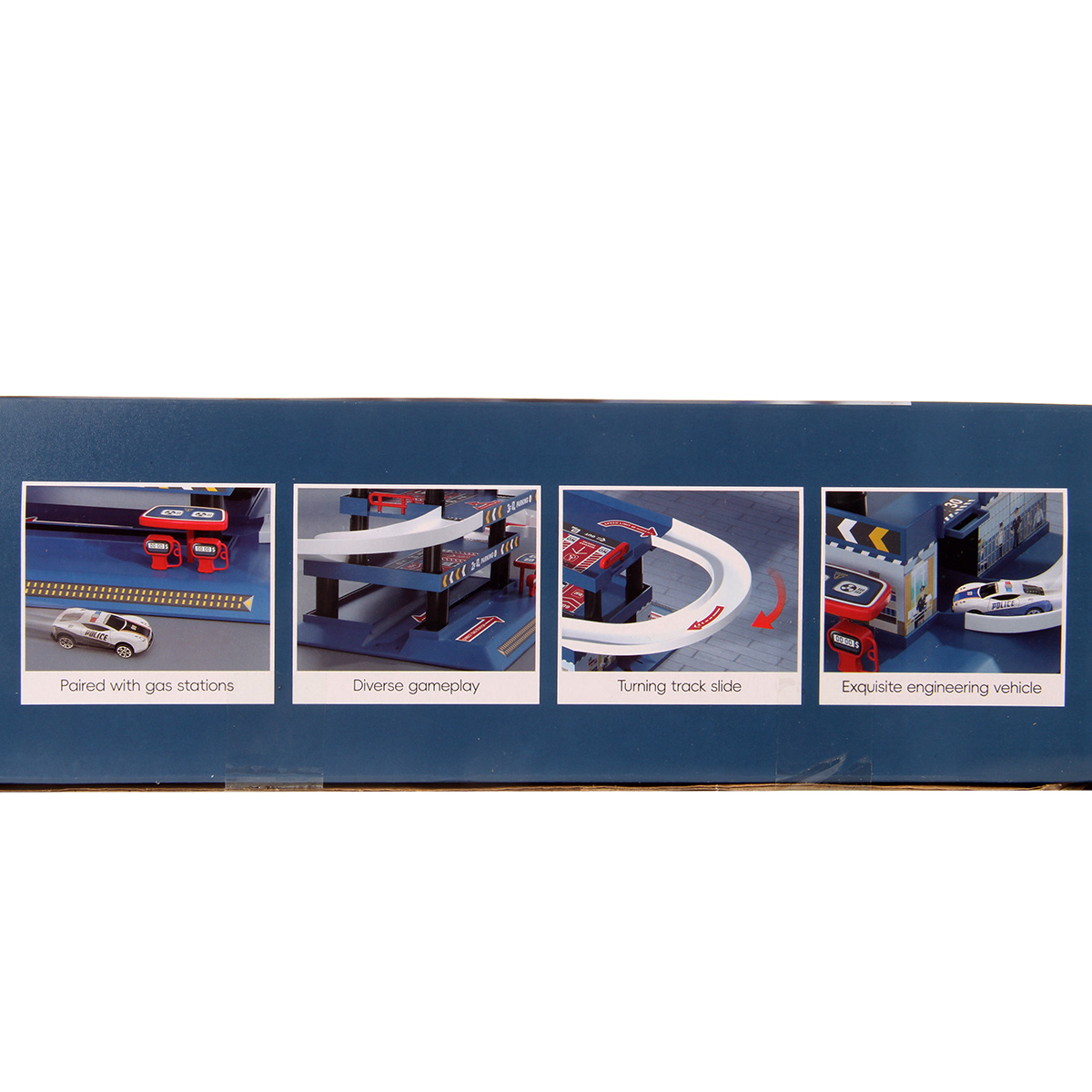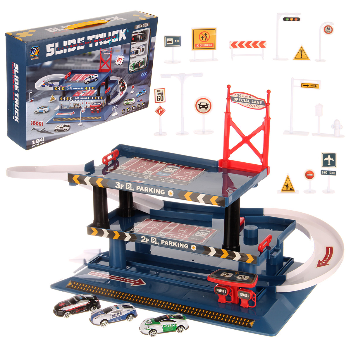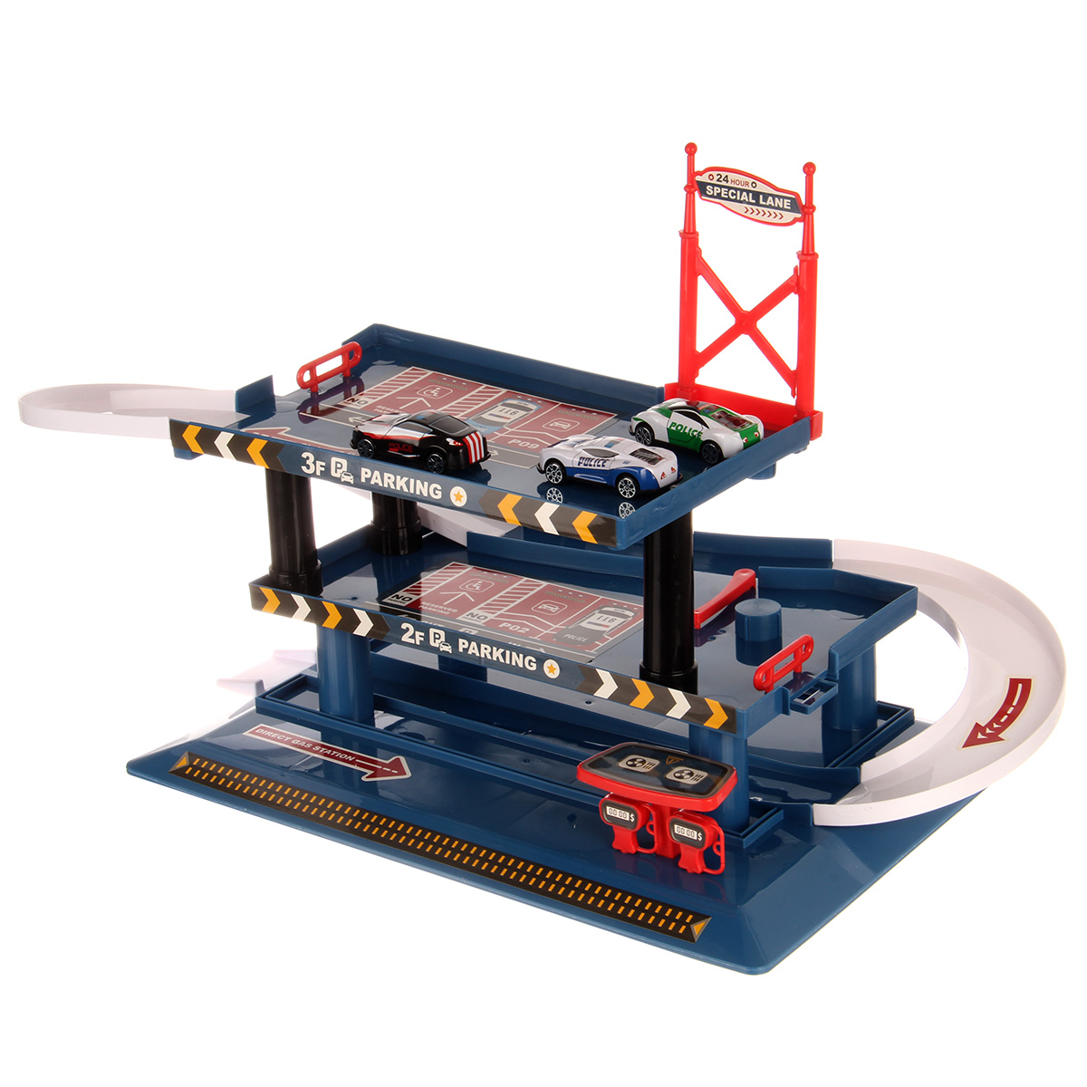 Многоуровневая игрушка парковка для увлекательных игр с машинками. Парковка полиция изготовлена из качественных безопасных материалов, имеет закругленные углы. Металлические машинки оформлены в оригинальном дизайне и яркой расцветке. Машинки спускаются с верхних уровней вниз, катаясь по направлению стрелок. Автопарковка подойдёт для ролевых игр в полицию. Такая парковка для машинок станет замечательным подарком мальчику, на новый год, день рождения, 23 февраля и на любой другой повод.