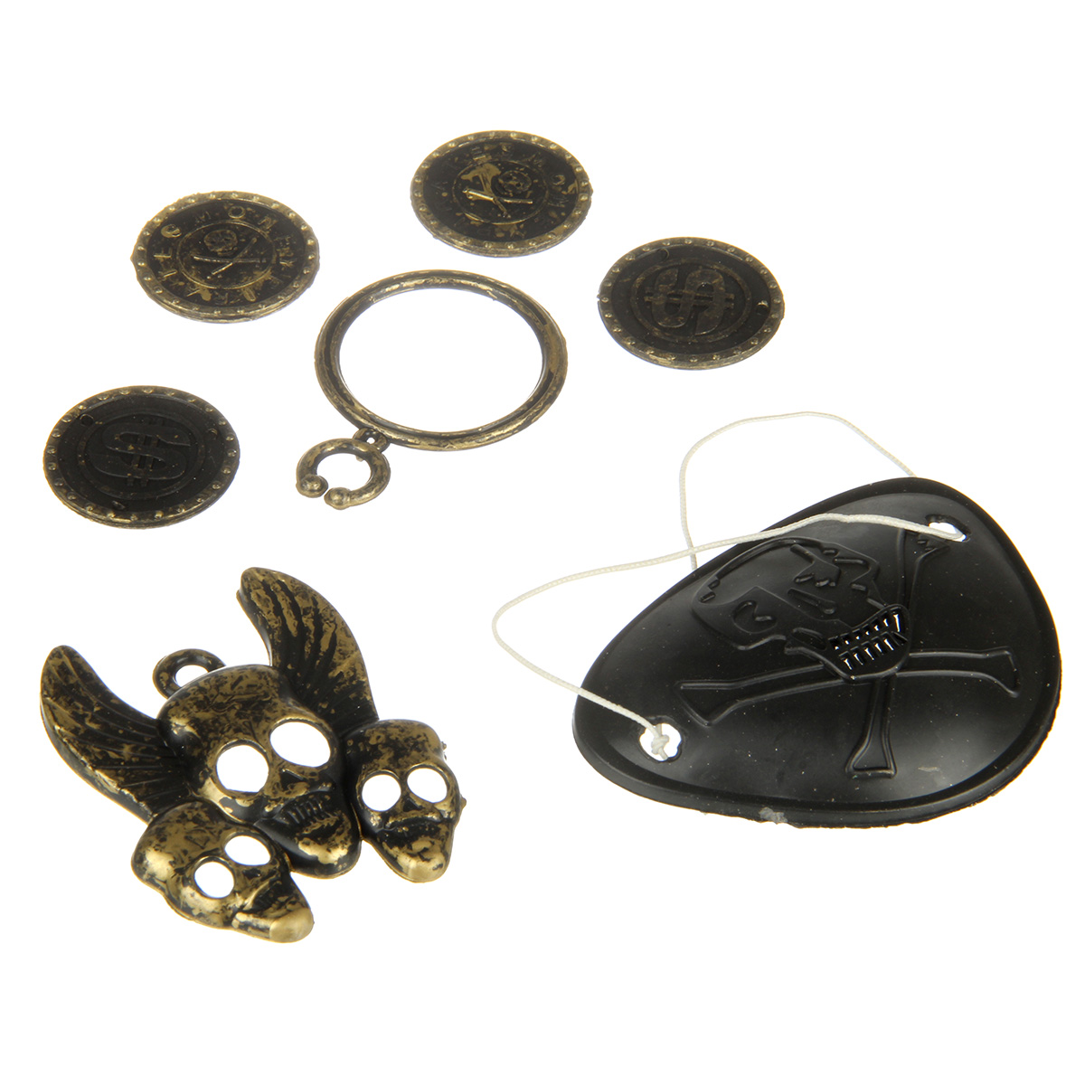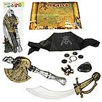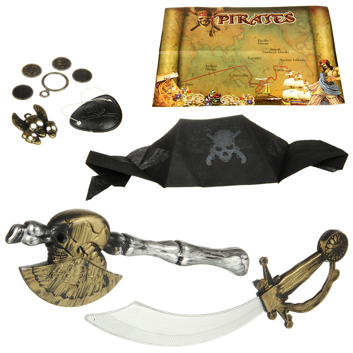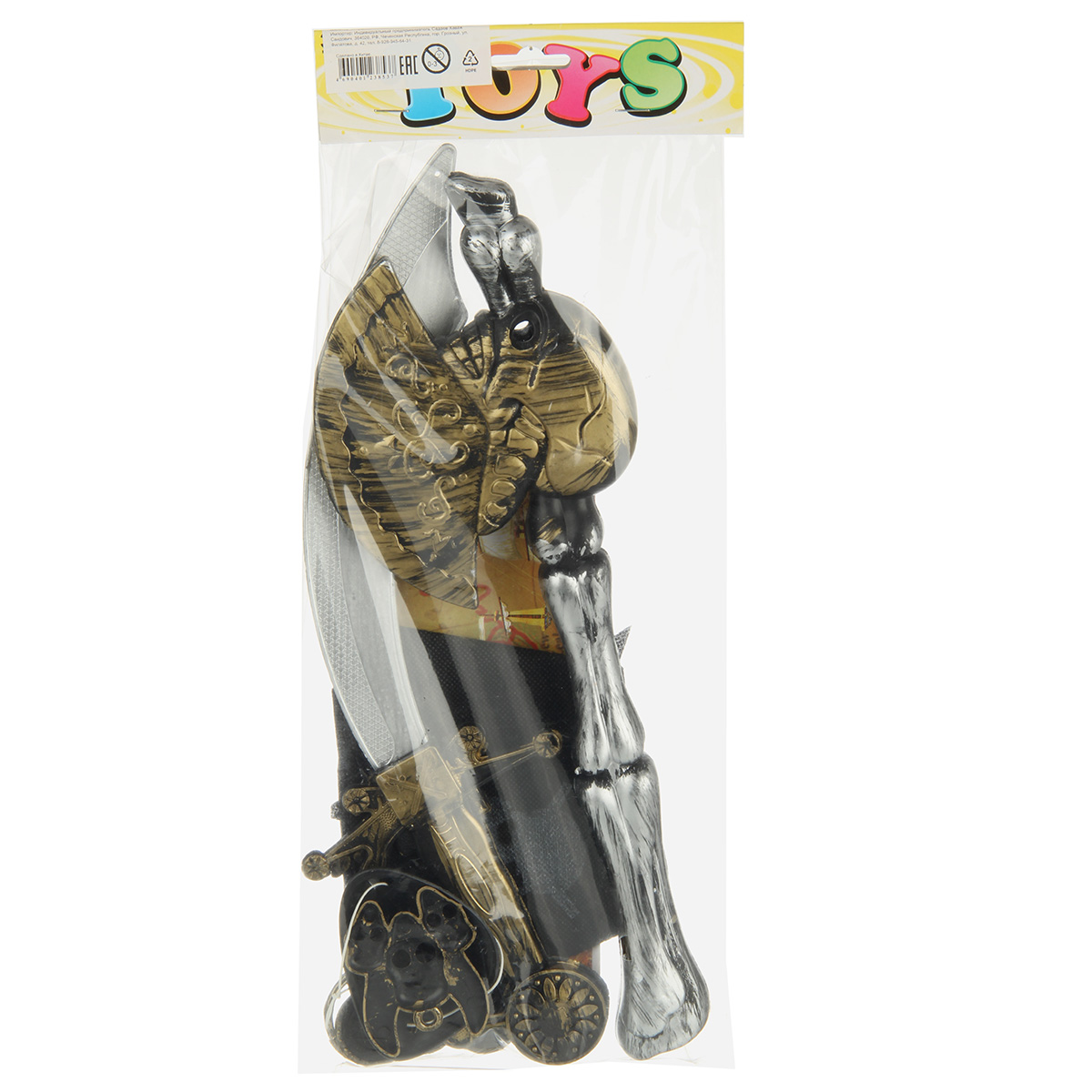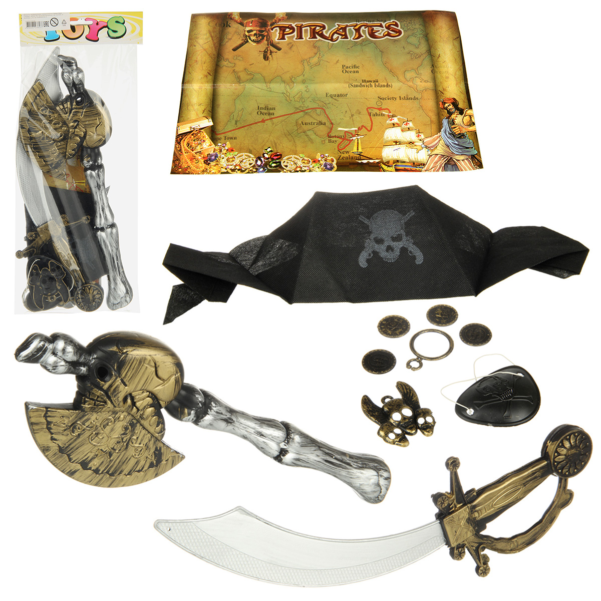 Йохохо, в этом наборе есть все, чтобы почувствовать себя пиратом и отправиться в увлекательное путешествие за сокровищами. В комплект входят топорик, шляпа, сабля, кулон, серьга и фигурки-имитации монеток. Благодаря набору можно придумать огромное количество интересных и захватывающих сюжетно-ролевых игр. Ребенок будет с удовольствием развивать мелкую и крупную моторику, воображение, зрительное восприятие. Игрушка изготовлена из качественного и безопасного полимерного материала, есть текстильный элемент, упакована в пакет с картонным хедером. Размеры игрушки в упаковке: 39*5*18 см.