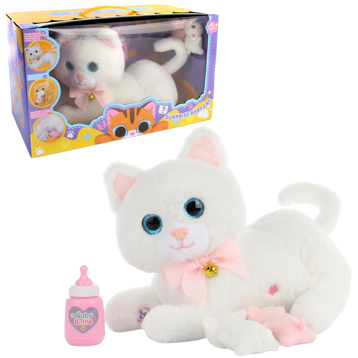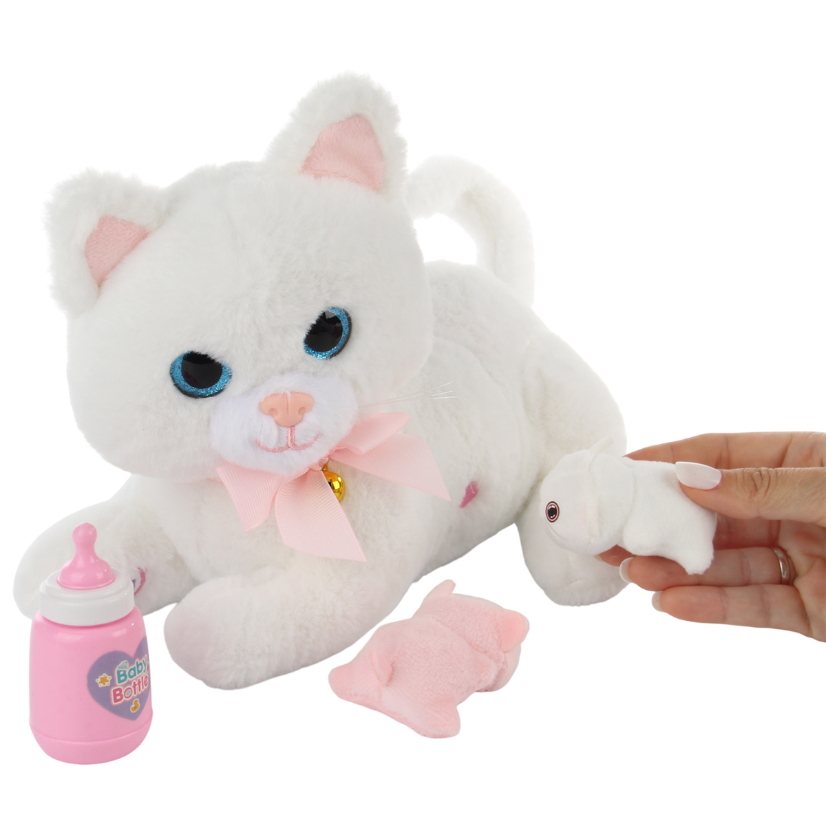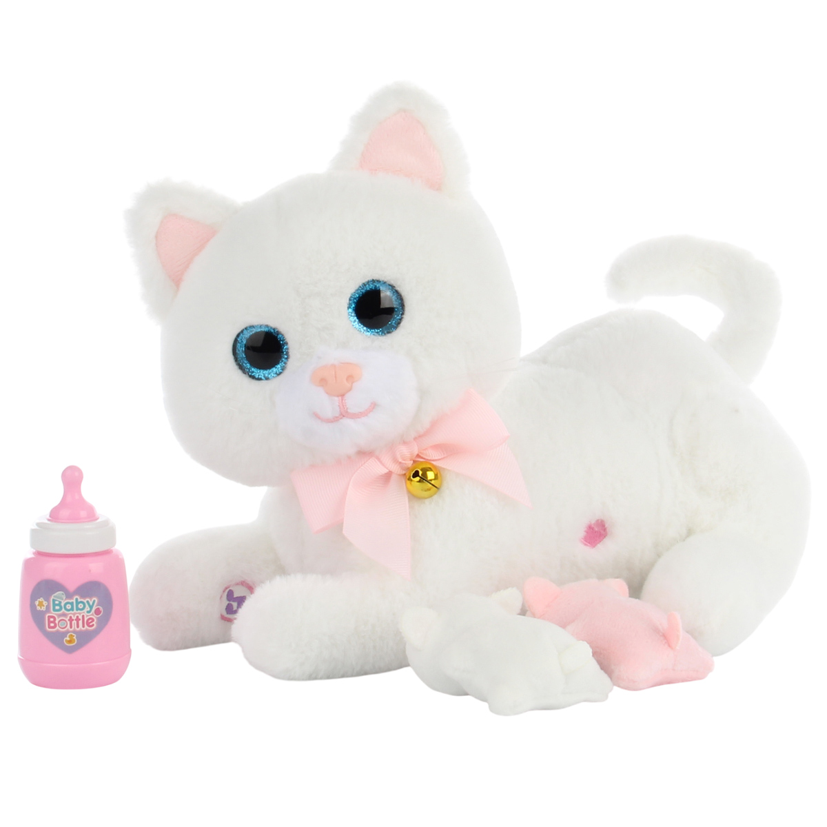 В наборе кошечка, 2 котенка и бутылочка.