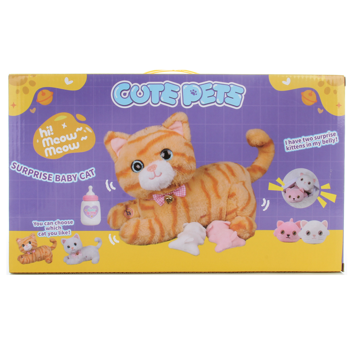 Игровой набор кошка с котятами со звуковыми эффектами и функцией записи голоса. Интерактивная кошка реагирует на прикосновения к спинке, проигрывает 2 песни, мяукает и мурчит, имеет мягкую, приятную на ощупь шерстку. Плюшевая говорящая игрушка отличается качественным исполнением, вниманием к деталям. Интерактивная детская игрушка с мягким наполнителем, глазки бусинки с глиттером, аксессуары в наборе. Игрушка станет замечательным подарком детям на Новый год и День рождения.