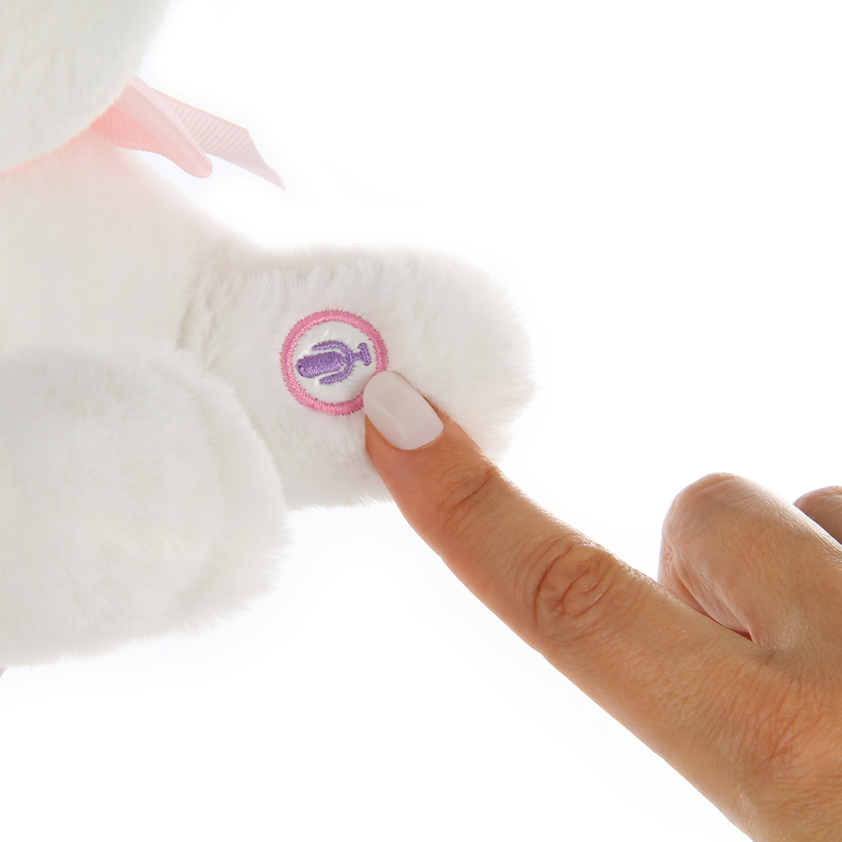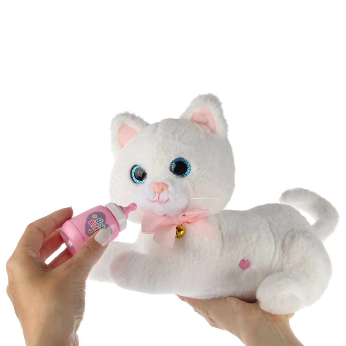 2. Поднесите бутылочку к ротику кошки, последует звук поглощения пищи. Такой же звуковой эффект последует, если поднести бутылочку к бочку кошки, где вышито сердечко.