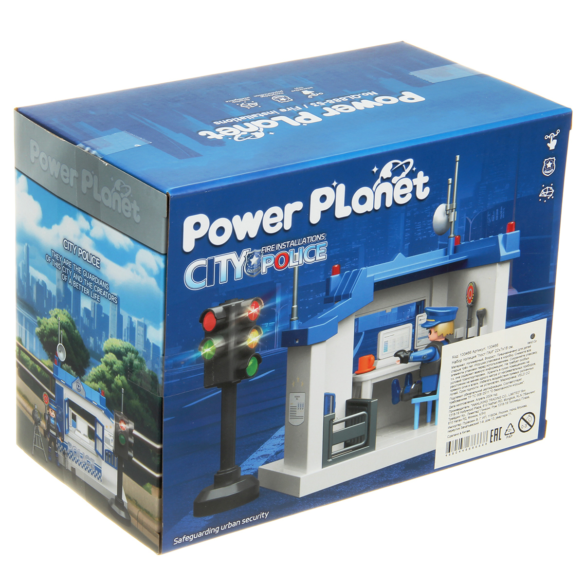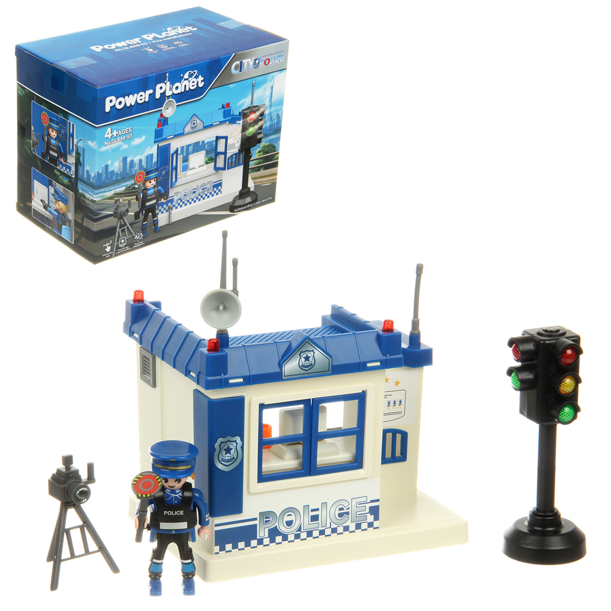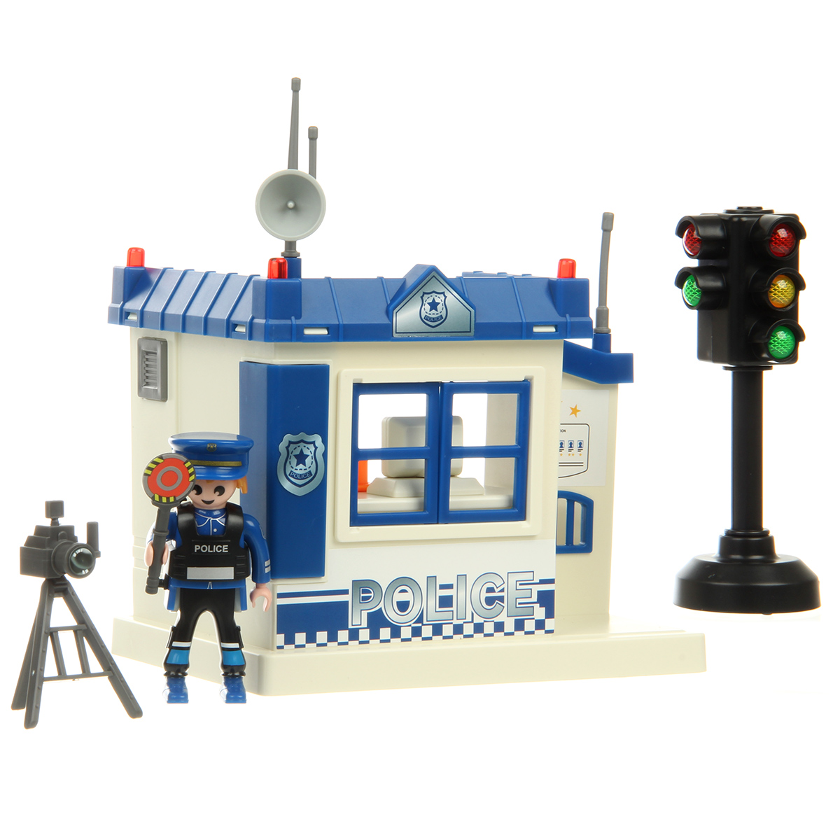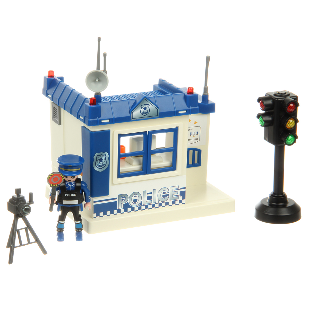 Роскошная игрушка конструктор с полицейским участком и фигуркой полицейского, это отличный набор для тематических игр. Полицейский с подвижными руками и ногами, игрушечный светофор со звуком и красивой подсветкой.