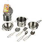 Благодаря металлическому набору посуды ребенок узнает назначение кухонных приборов, научится ими пользоваться.