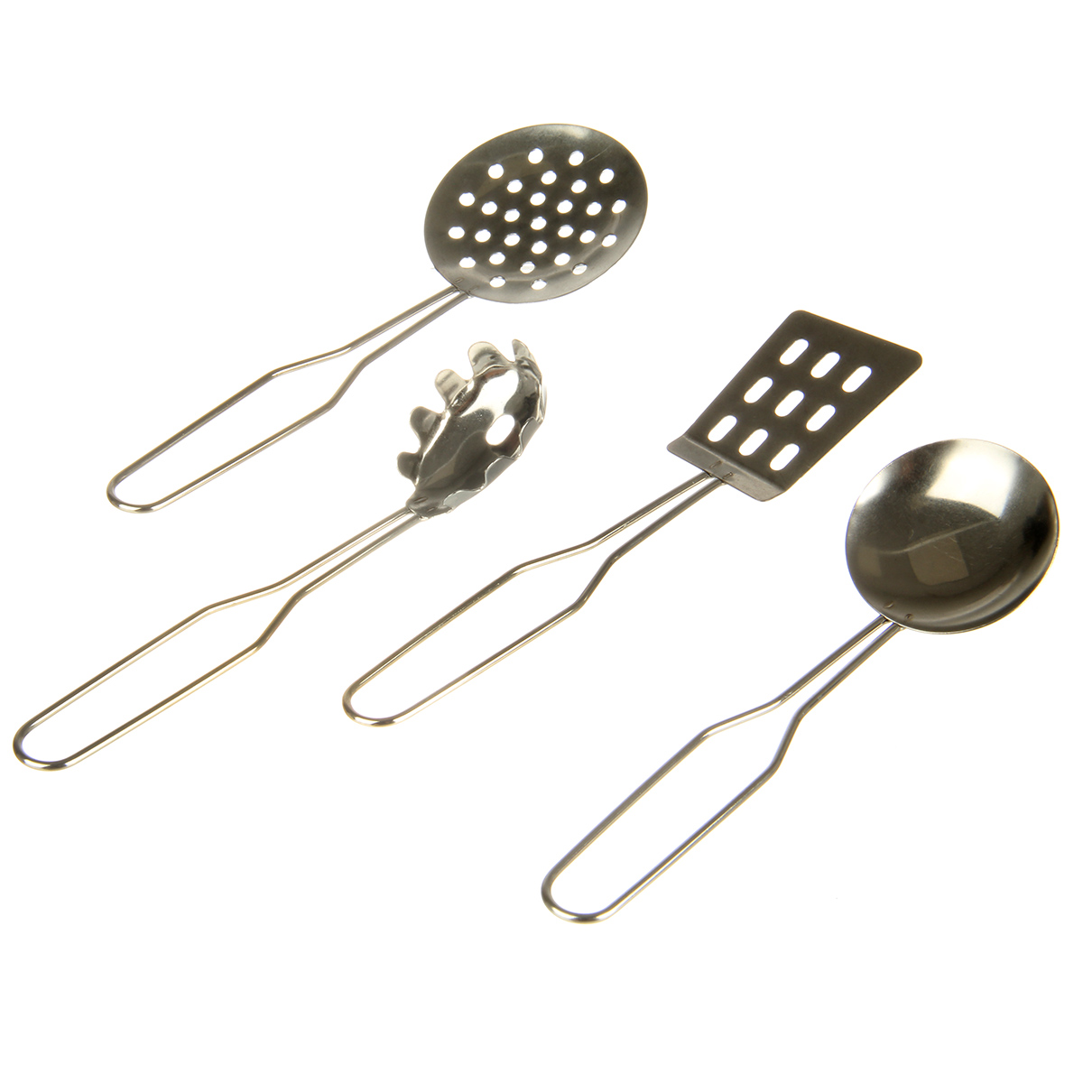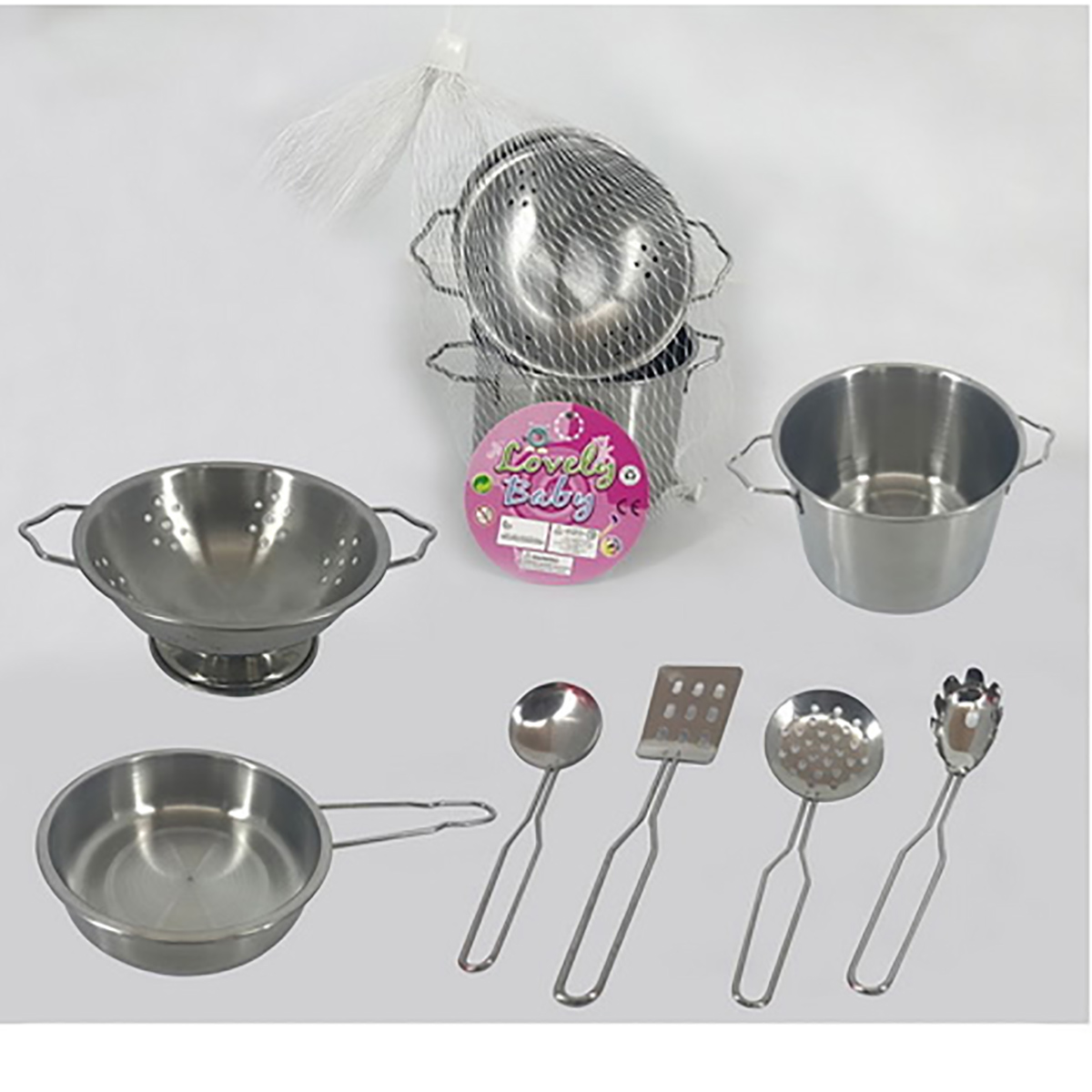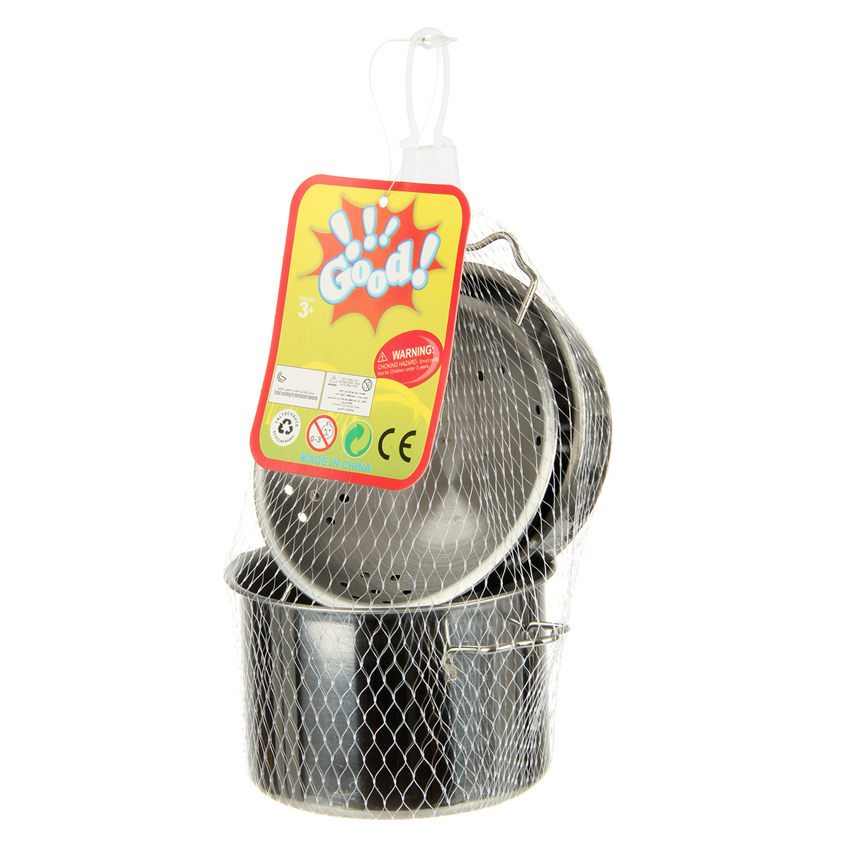 Металлическая посуда в реалистичном дизайне и компактном размере дополнит игрушечную кухню.
