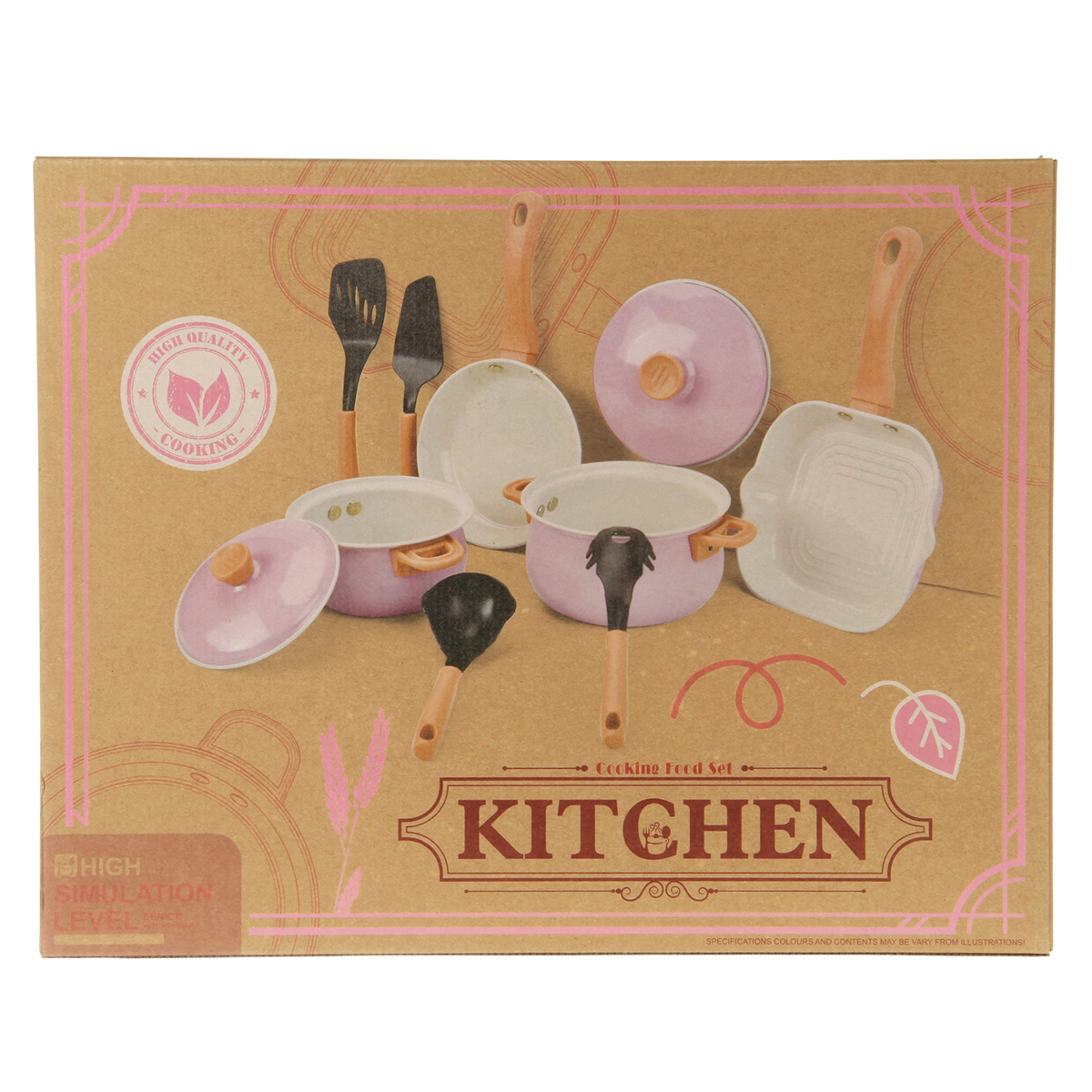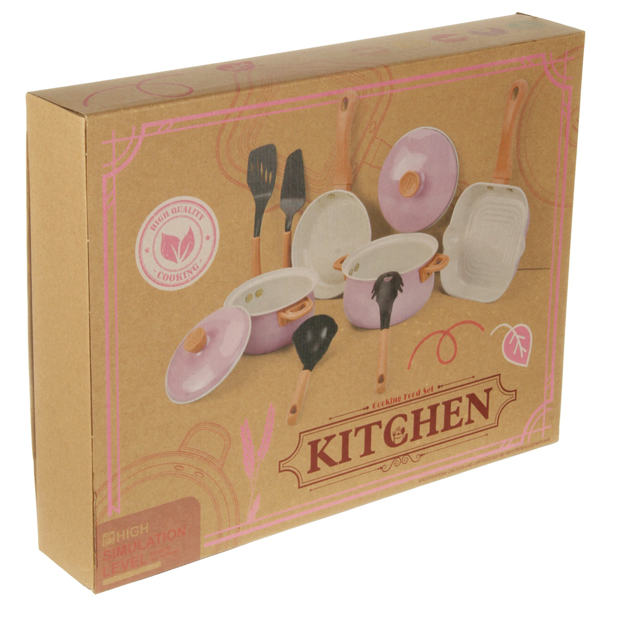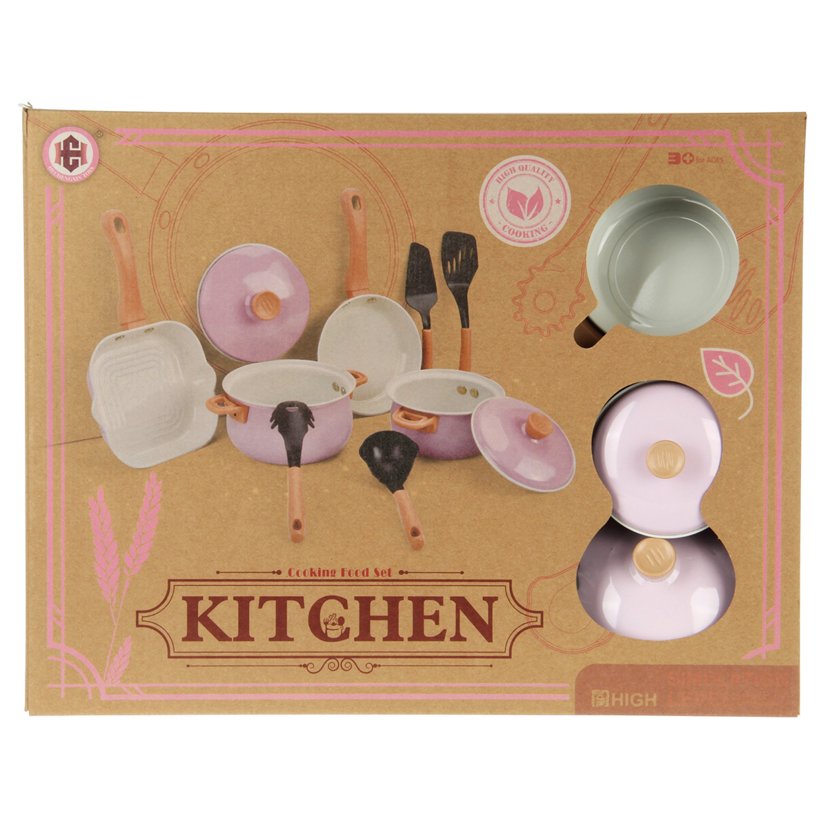 Игровой набор металлической посуды для тематических игр. Компактный, оптимальный для детских ручек размер, большое количество предметов, детская посуда с удобными ручками. Долговечный материал металл, приятная расцветка и красивый дизайн. Игрушечная посудка, это отличный подарок девочке, набор поставляется в лаконичной и элегантной крафтовой упаковке.