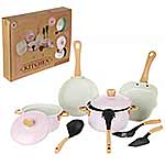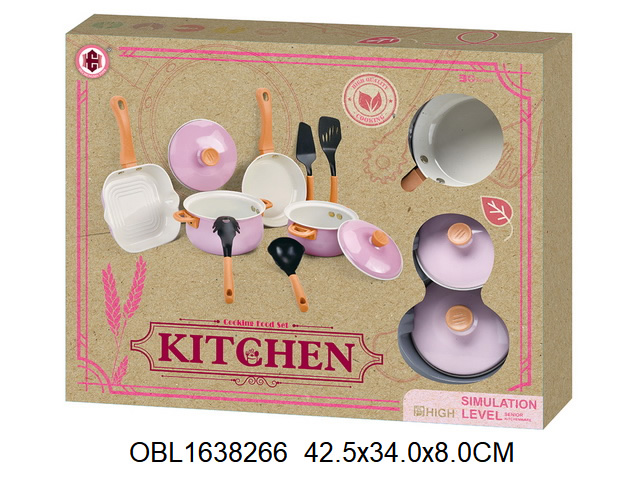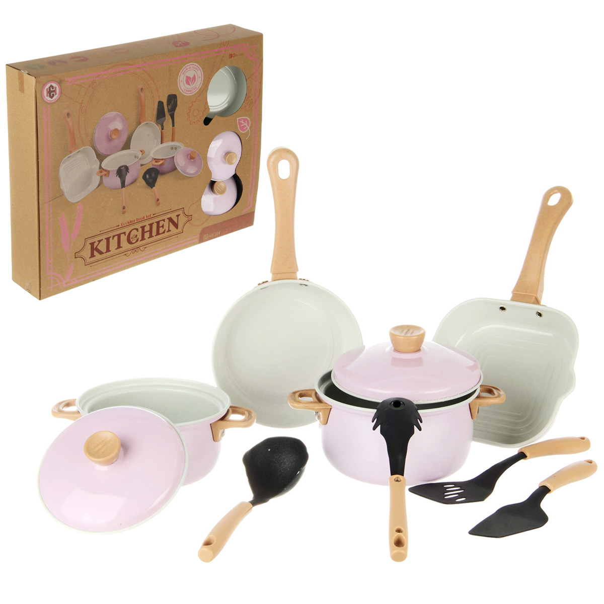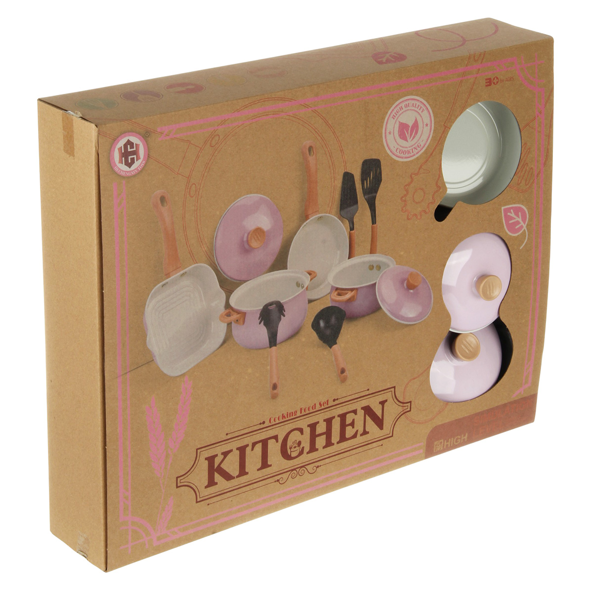 Игровой набор металлической посуды для тематических игр. Компактный, оптимальный для детских ручек размер, большое количество предметов, детская посуда с удобными ручками. Долговечный материал металл, приятная расцветка и красивый дизайн. Игрушечная посудка, это отличный подарок девочке, набор поставляется в лаконичной и элегантной крафтовой упаковке.