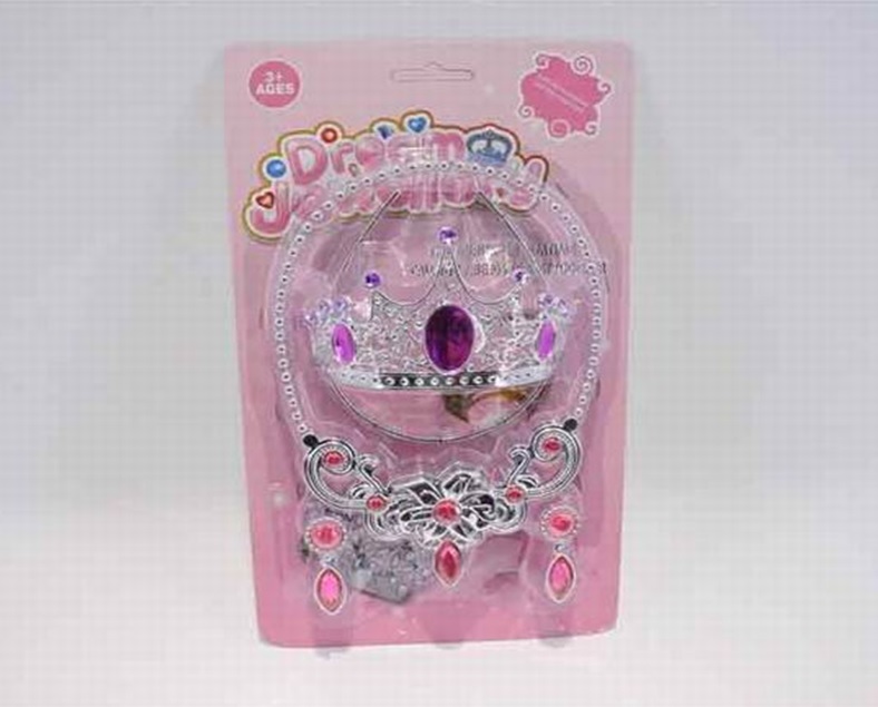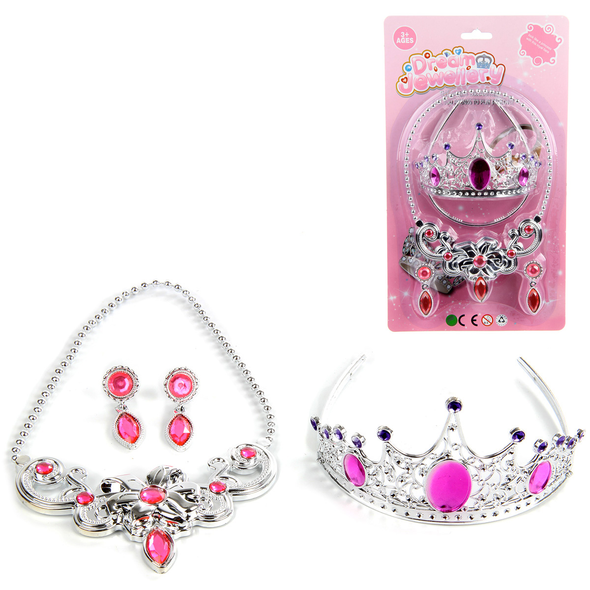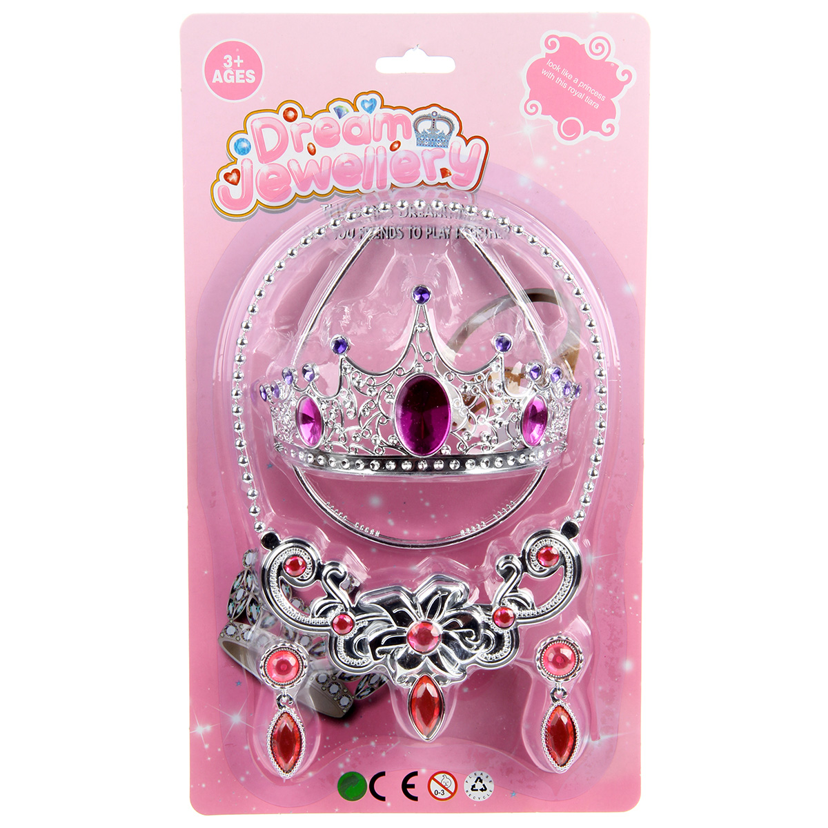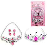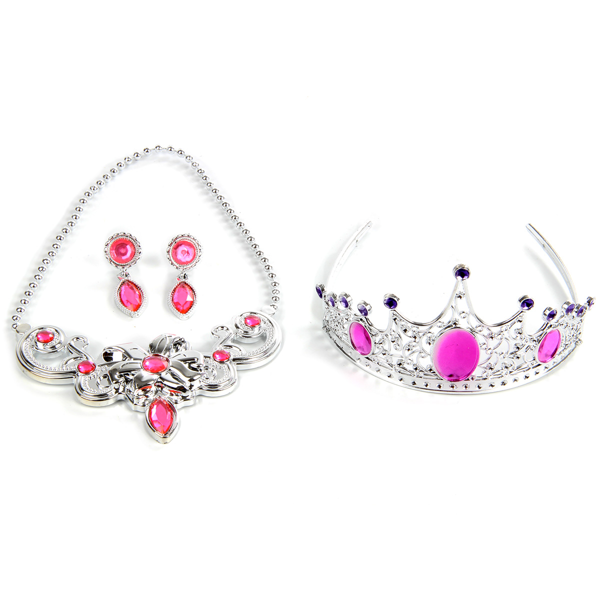 Роскошный набор украшений приведет в восторг маленькую принцессу. В комплект входят колье, корона и серьги. Дужки короны растягиваются, подойдут практически для любого размера головы, декорированная часть снимается, оставляя в руках ободок с зубчиками. У колье вынимается цепочка, серьги крепятся на клипсу, у каждой серьги можно вытащить деталь-листик, получив новый дизайн серег. Серьги и колье украшены стразами. С таким комплектом украшений малышка станет выглядеть еще прекраснее. Набор отлично развивает воображение, помогая придумать множество сюжетно-ролевых игр, тренирует мелкую моторику ручек и координацию движений, станет хорошим подарком. Игрушка изготовлена из качественного и безопасного полимерного материала, упакована в блистер с отверстием. Размеры короны: 13*13*7 см. Размеры колье в собранном виде с цепочкой: 23*12,5*1 см. Длина серьги: 5 см. Размеры игрушки в упаковке: 18*5,5*31,5 см.