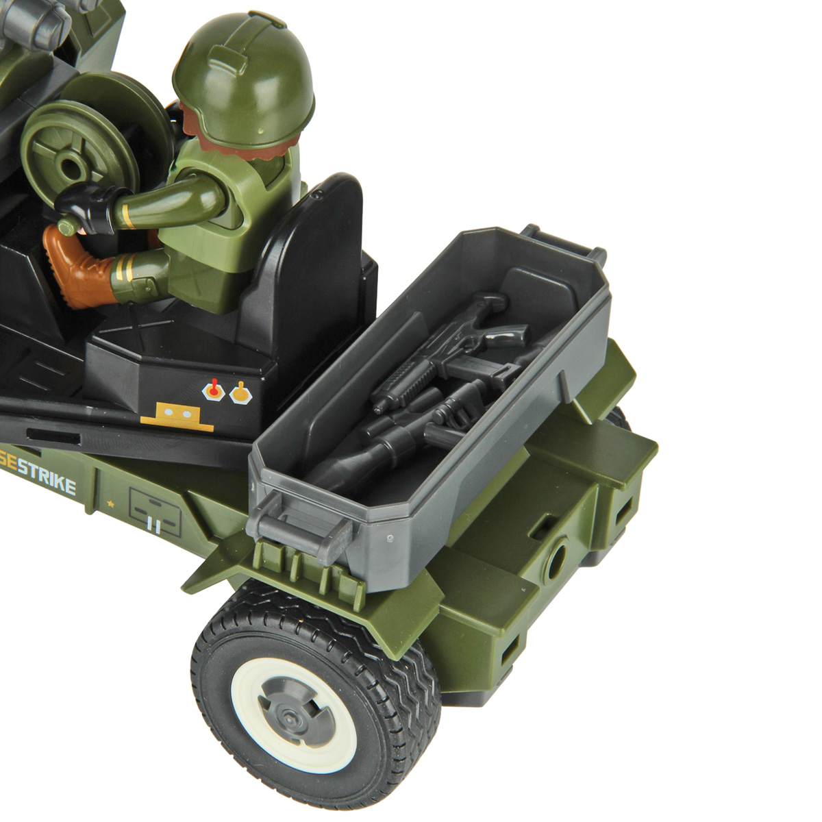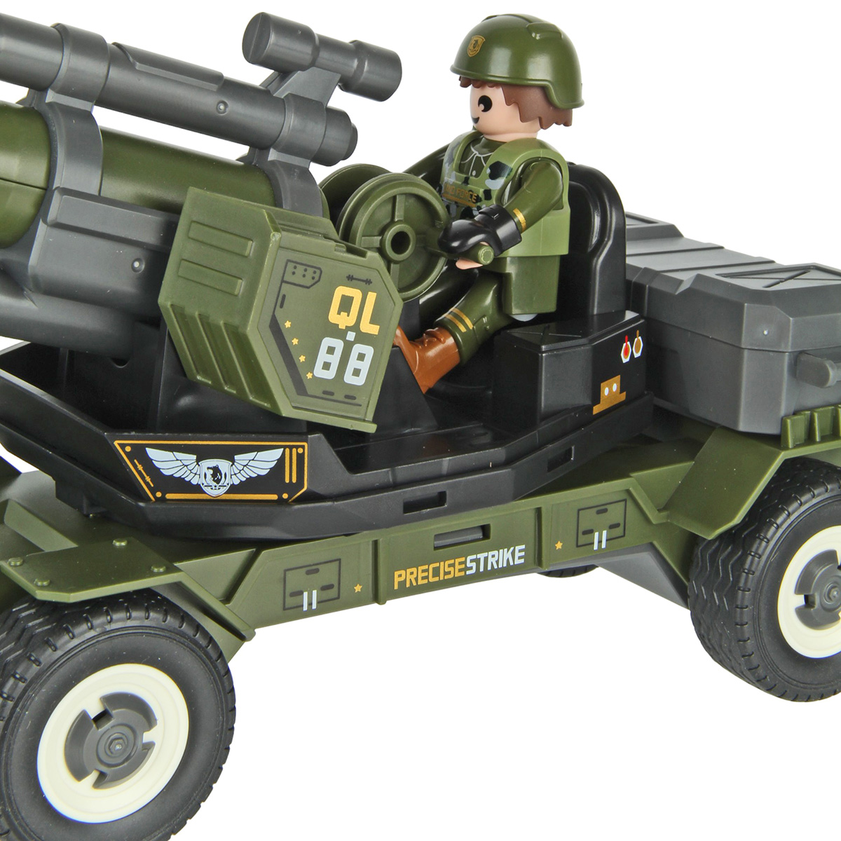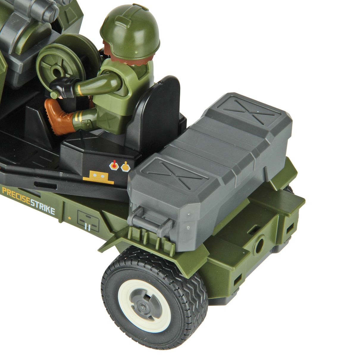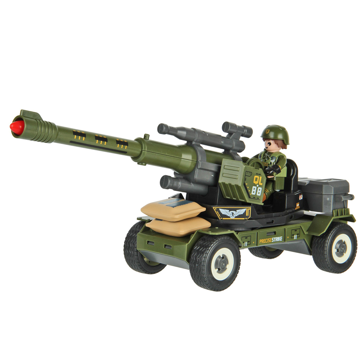 3. Руки и ноги у фигурки солдата двигаются, голова крутится на 180 градусов в обе стороны. В руки можно вложить оружие. Солдата можно посадить на сиденье пушки.