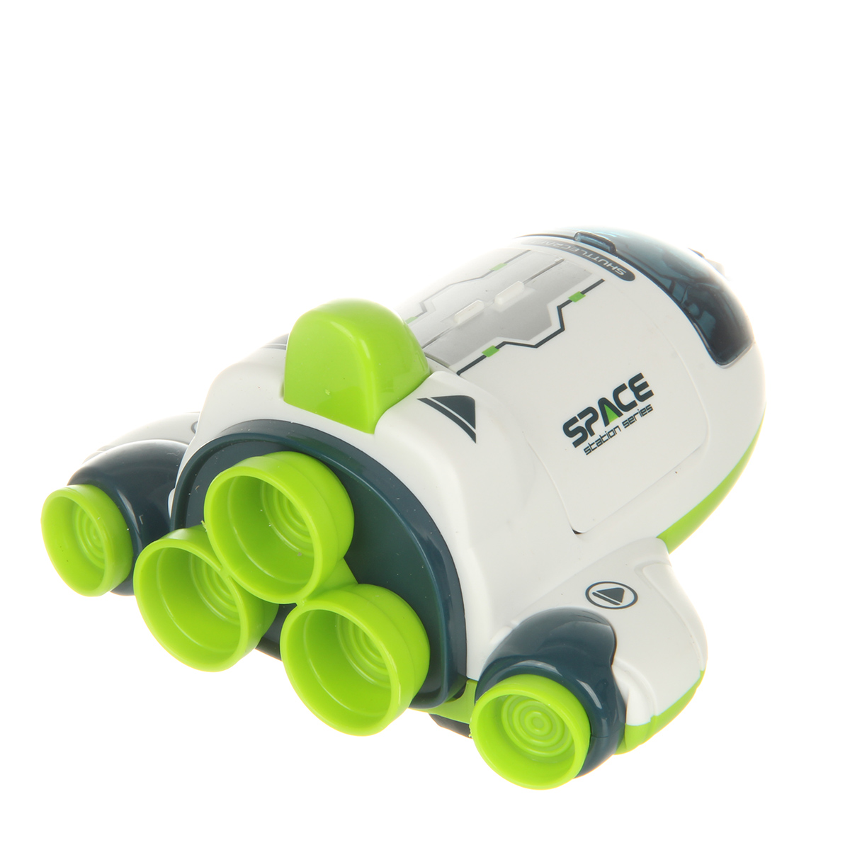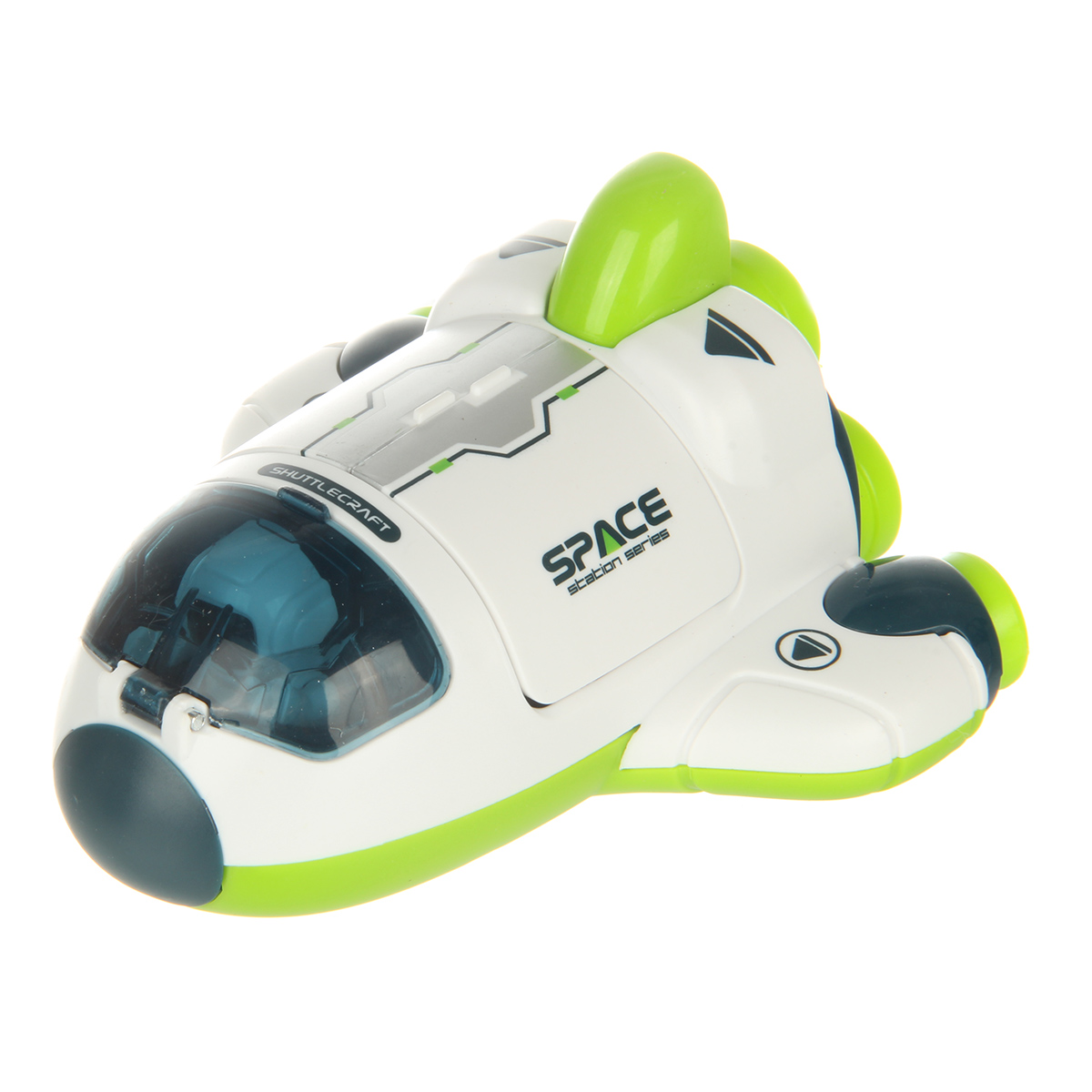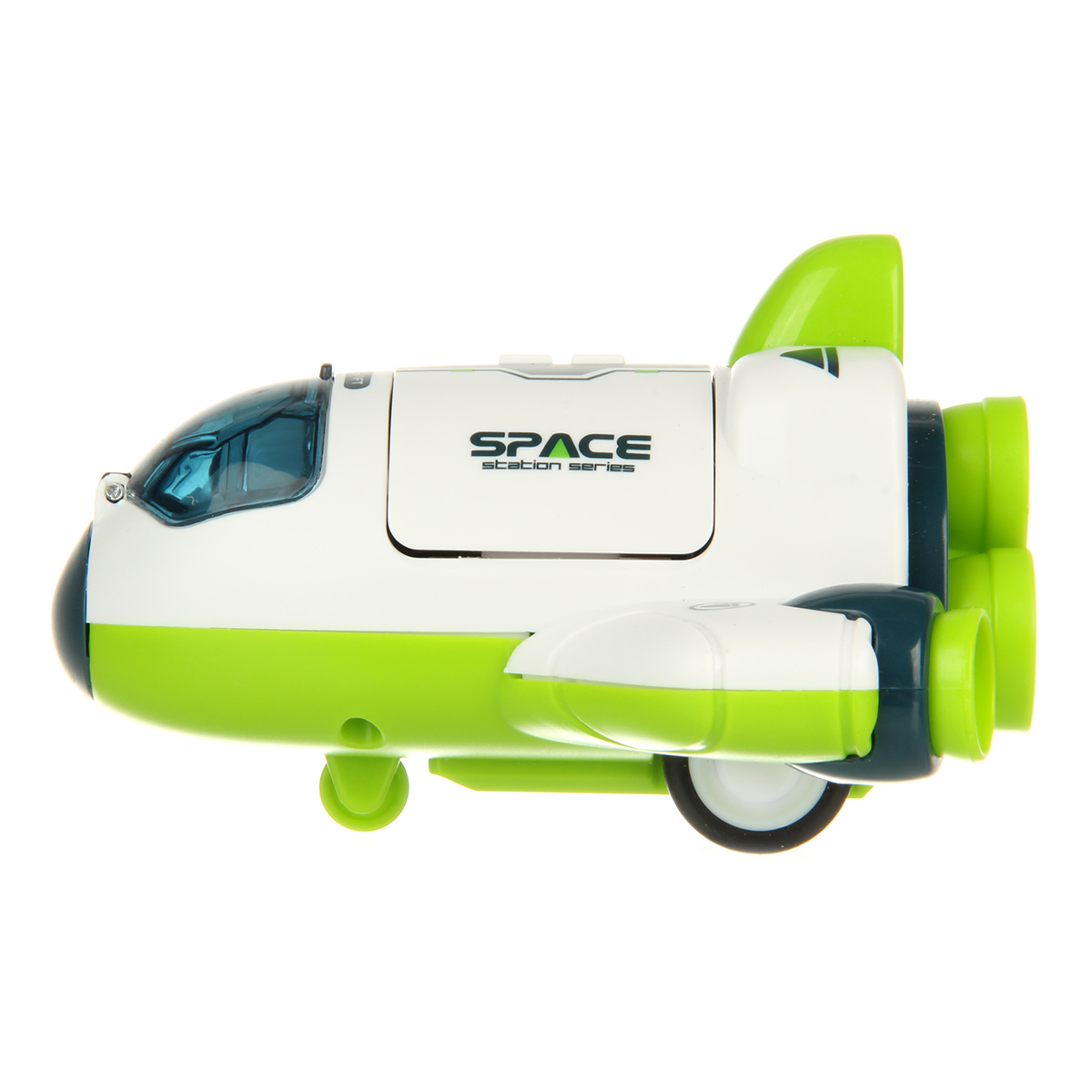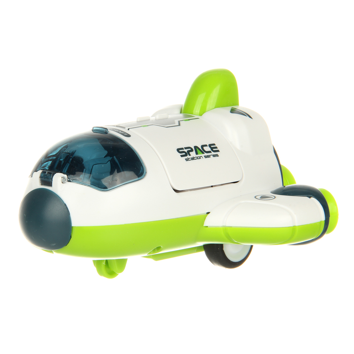 Космический корабль в качественном исполнении и с прорезиненными колесами. Игрушка изготовлена из безопасных и долговечных материалов, прослужит много лет. Корабль катается вперед и назад, оснащен фрикционным механизмом. Кабина открывается, космонавта можно вынуть. Шаттл открывается с помощью створок.