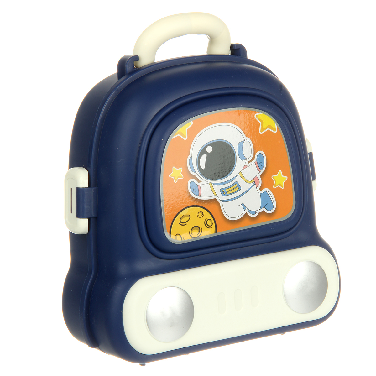 Посадочный модуль катается вперед и назад, имеет инерционный механизм, колеса прорезинены, дверка открывается. Туда поместится маленький космонавт.