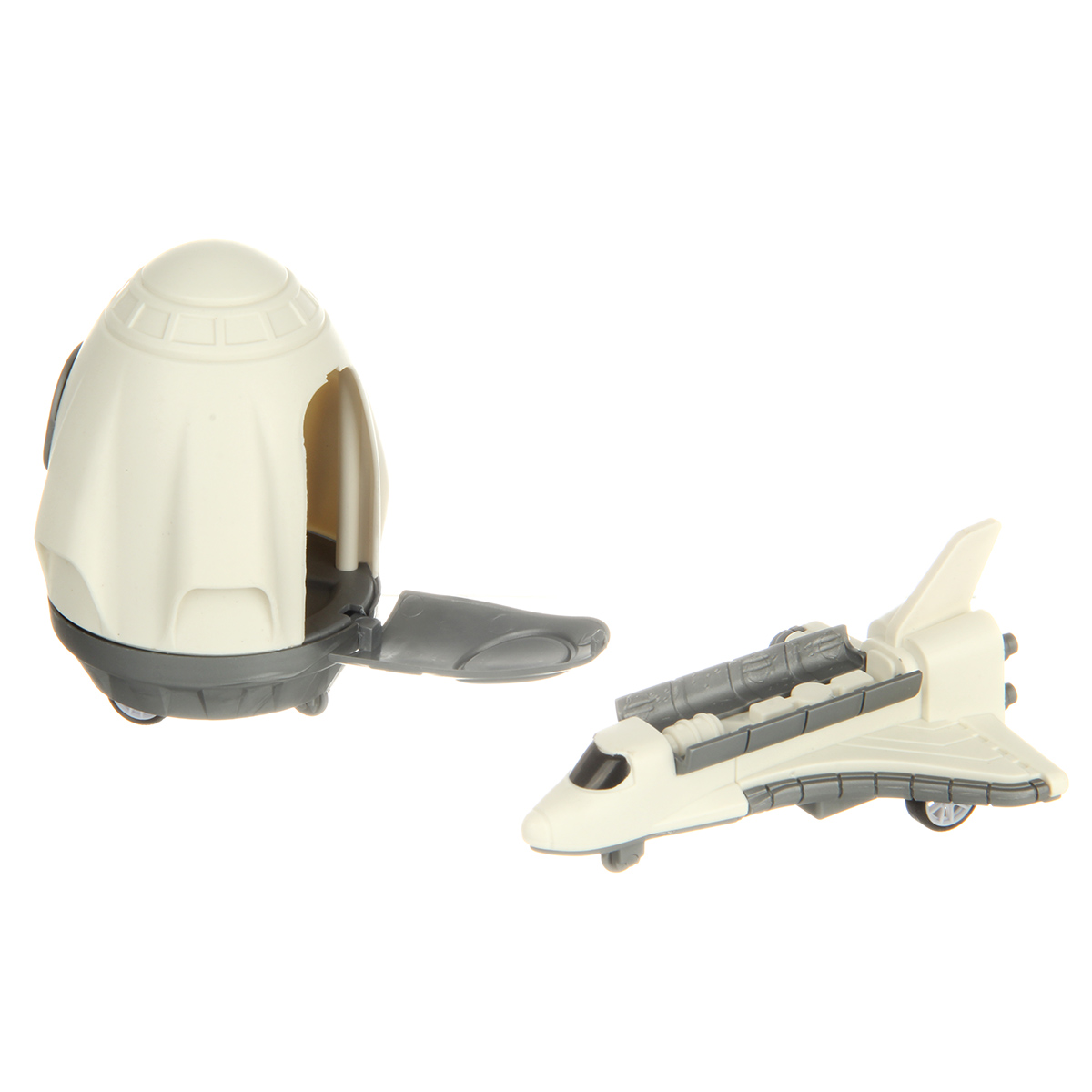 Орбитальный самолет катается вперед и назад, имеет инерционный механизм, колеса прорезинены, серые дверки на корпусе открываются и закрываются.