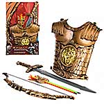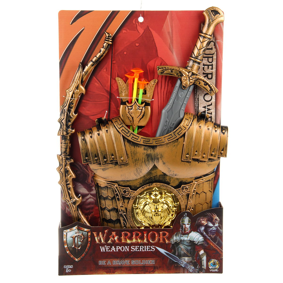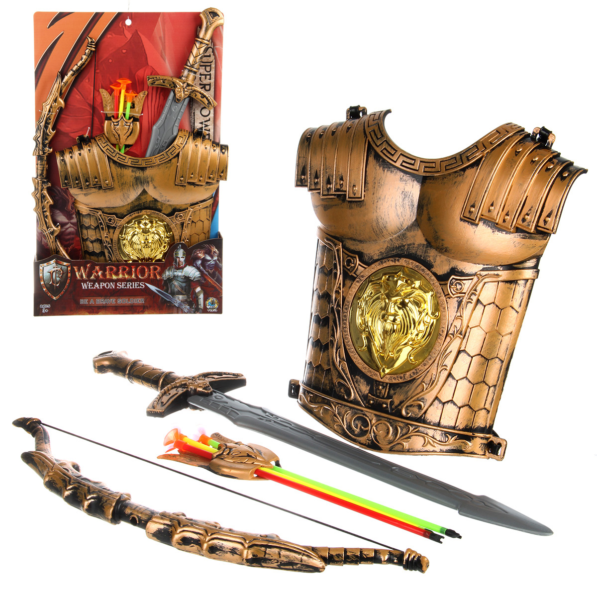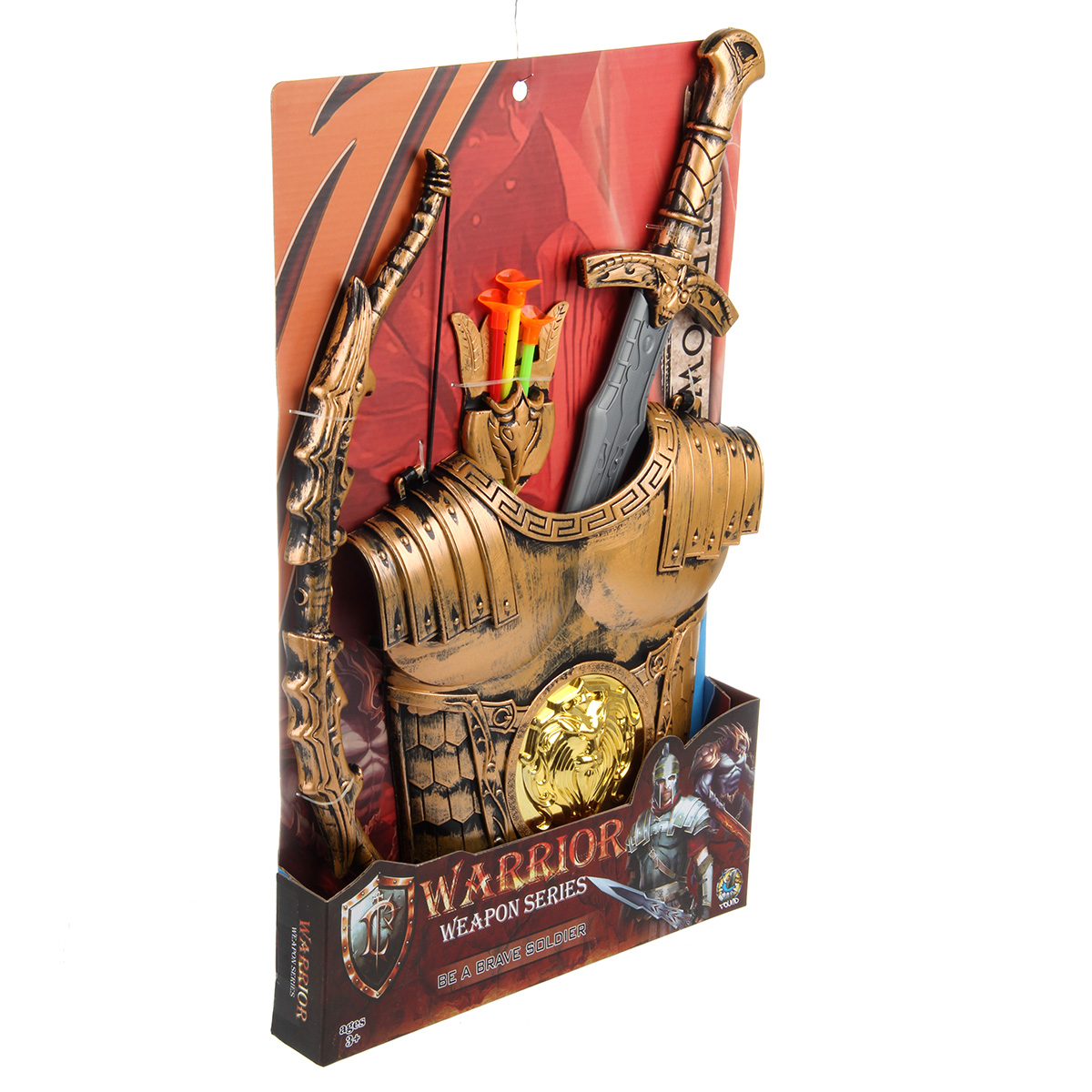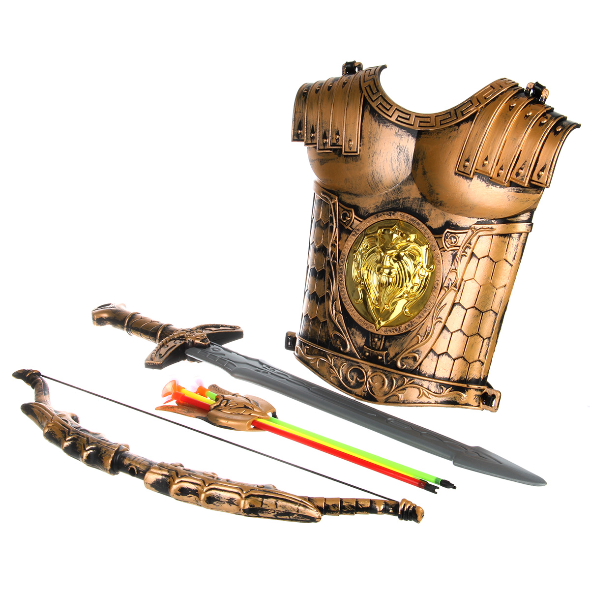 Набор оружия в стилизованном дизайне и качественном исполнении. Лук с безопасными стрелами, простой принцип работы, доспех с 2 перекрестными лямками для фиксации доспеха на груди. Игровой набор изготовлен из прочных и долговечных материалов. Игрушечное оружие для тематических игр и в качестве дополнения к карнавальному костюму, для создания различных образов в театральных постановках и костюмированных вечеринках. Игрушка оружие станет замечательным подарком детям на Новый год и День рождения.