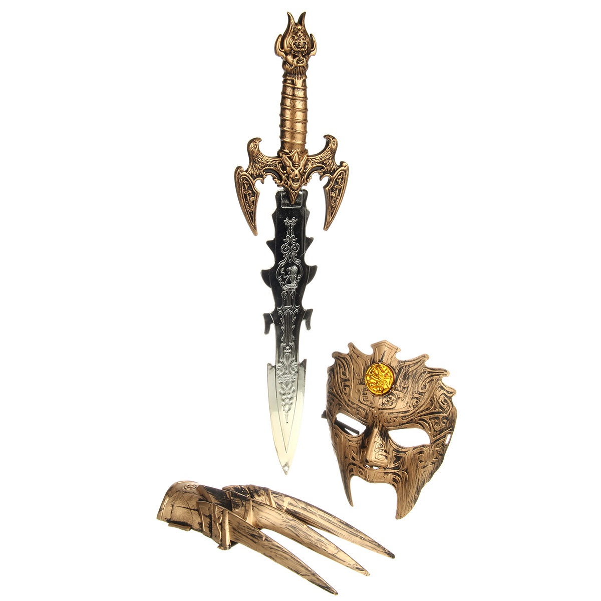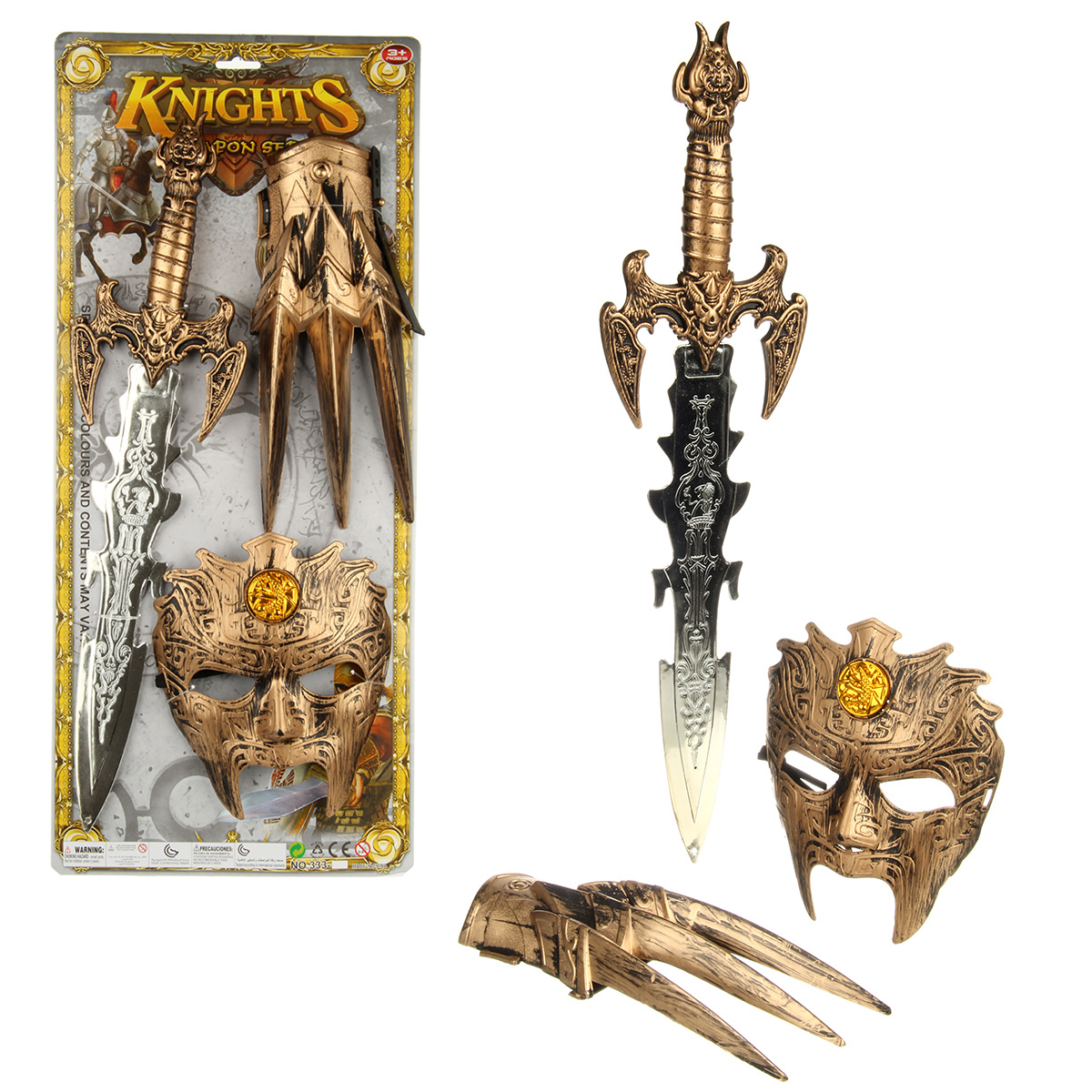 В комплекте игрушечный меч, маска, перчатка.
