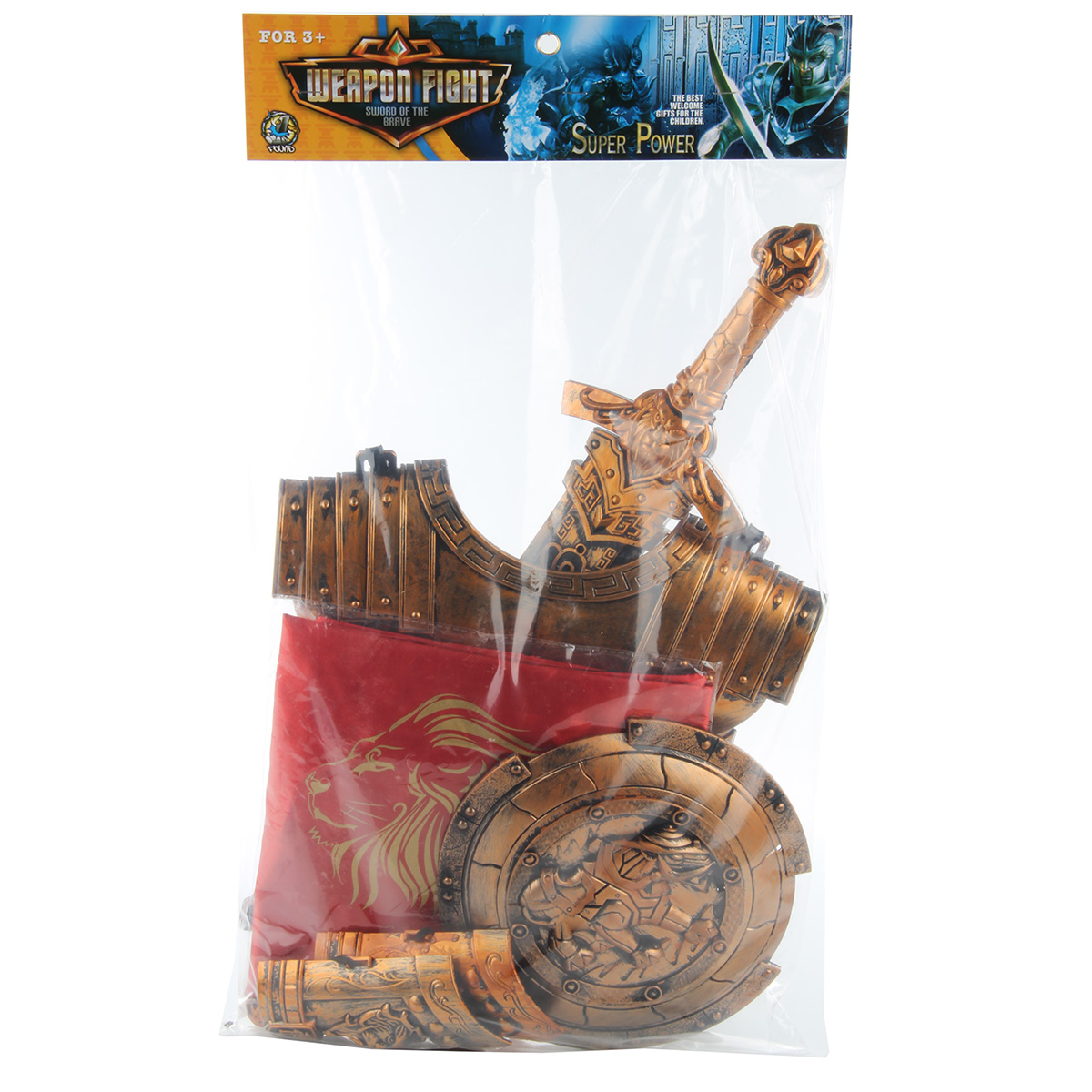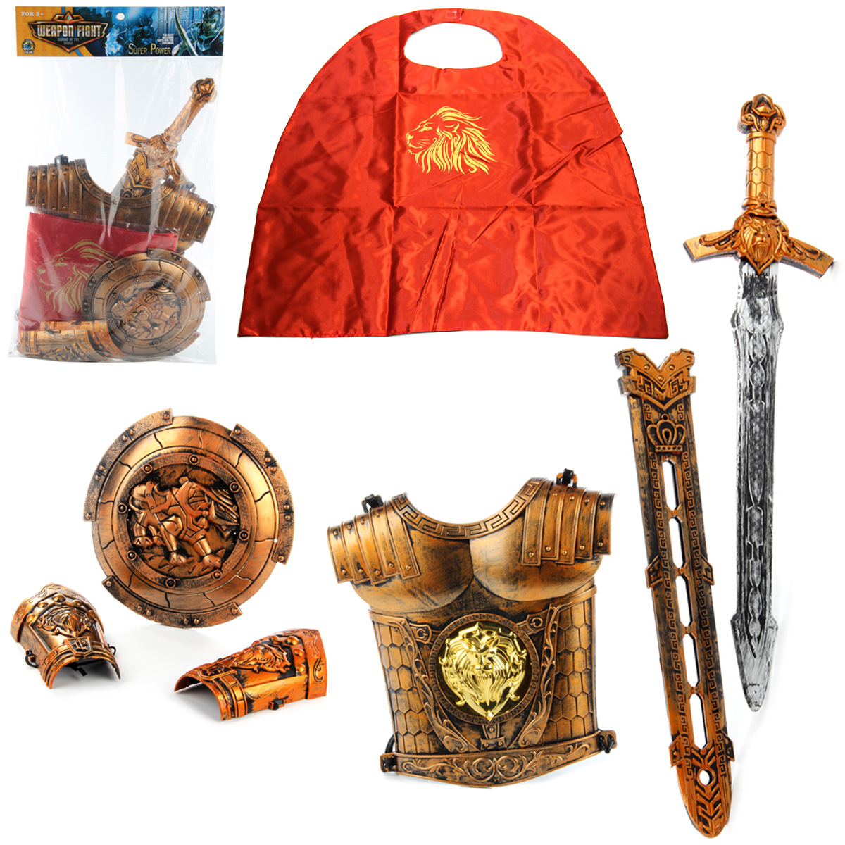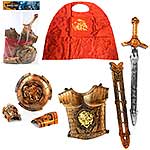 Юный герой будет в восторге от такого игрового набора. Очень красивый дизайн, тщательная проработка деталей, высокое качество исполнения - с этим набором маленький воитель сразит дракона и победит всех неприятелей. В комплект входят нагрудный доспех, щит, наручи, меч с ножнами, плащ.