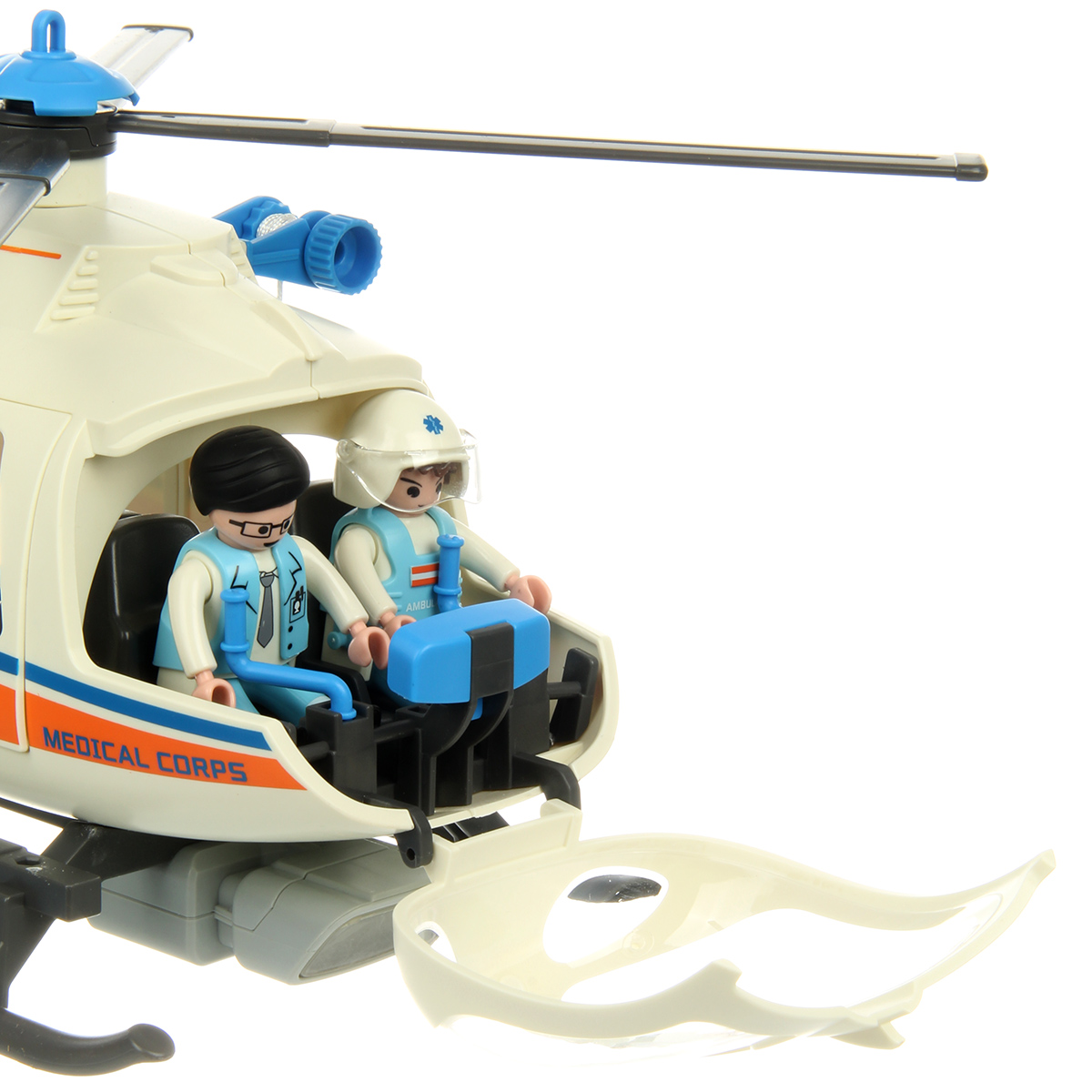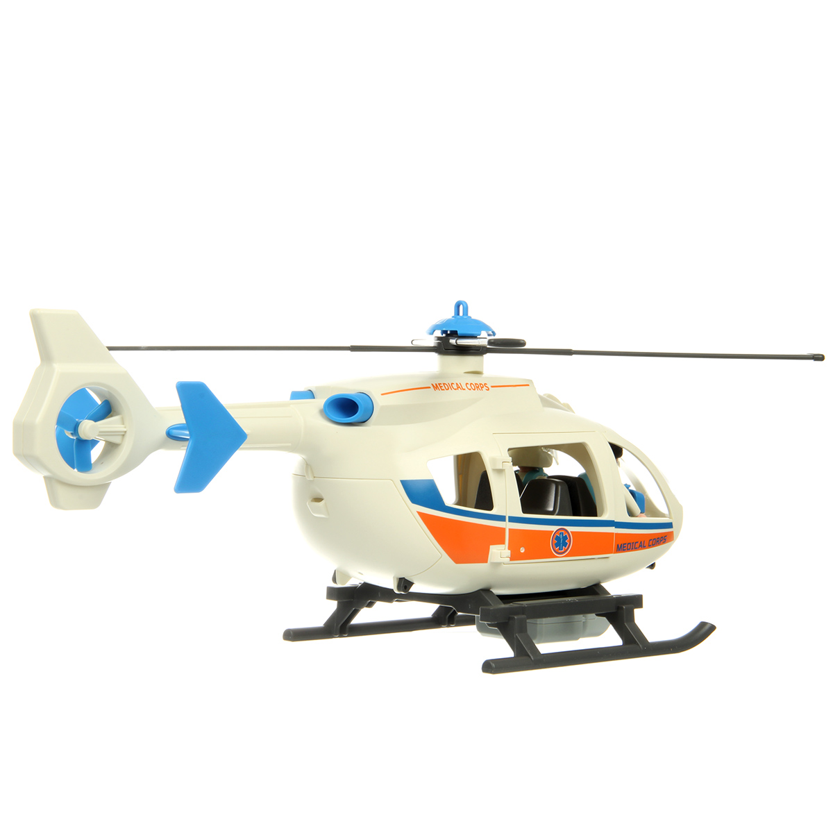 Роскошная игрушка конструктор с вертолетом и фигурками медиков, это отличный набор для тематических игр. Человечки врачи с подвижными руками и ногами, игрушечный вертолет на батарейках с вращающимися лопастями, открывающимися дверками салона и эффектной подсветкой фонаря.